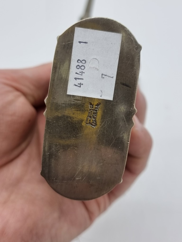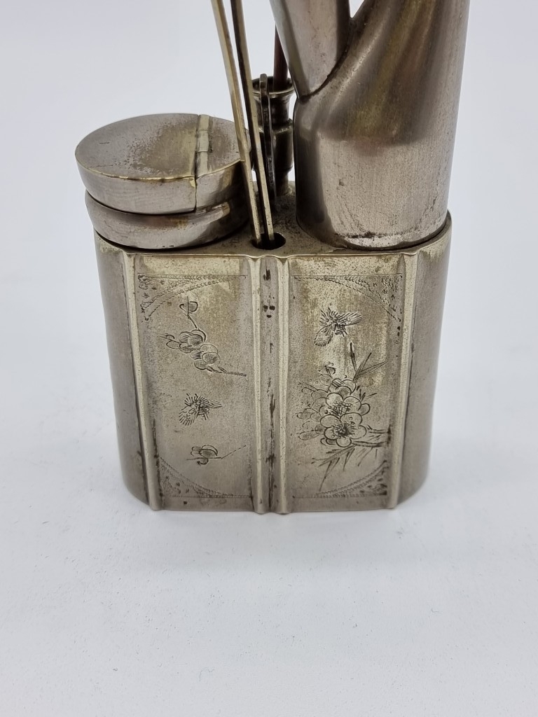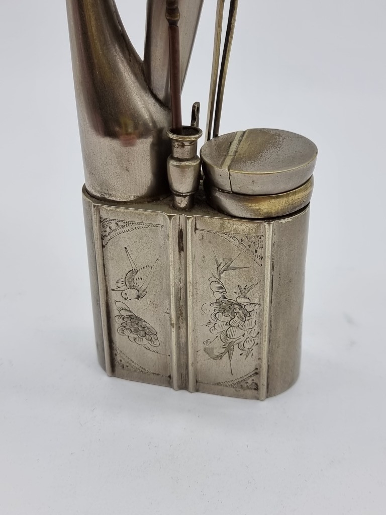 A Chinese nickel plated opium pipe, 25.5cm high.