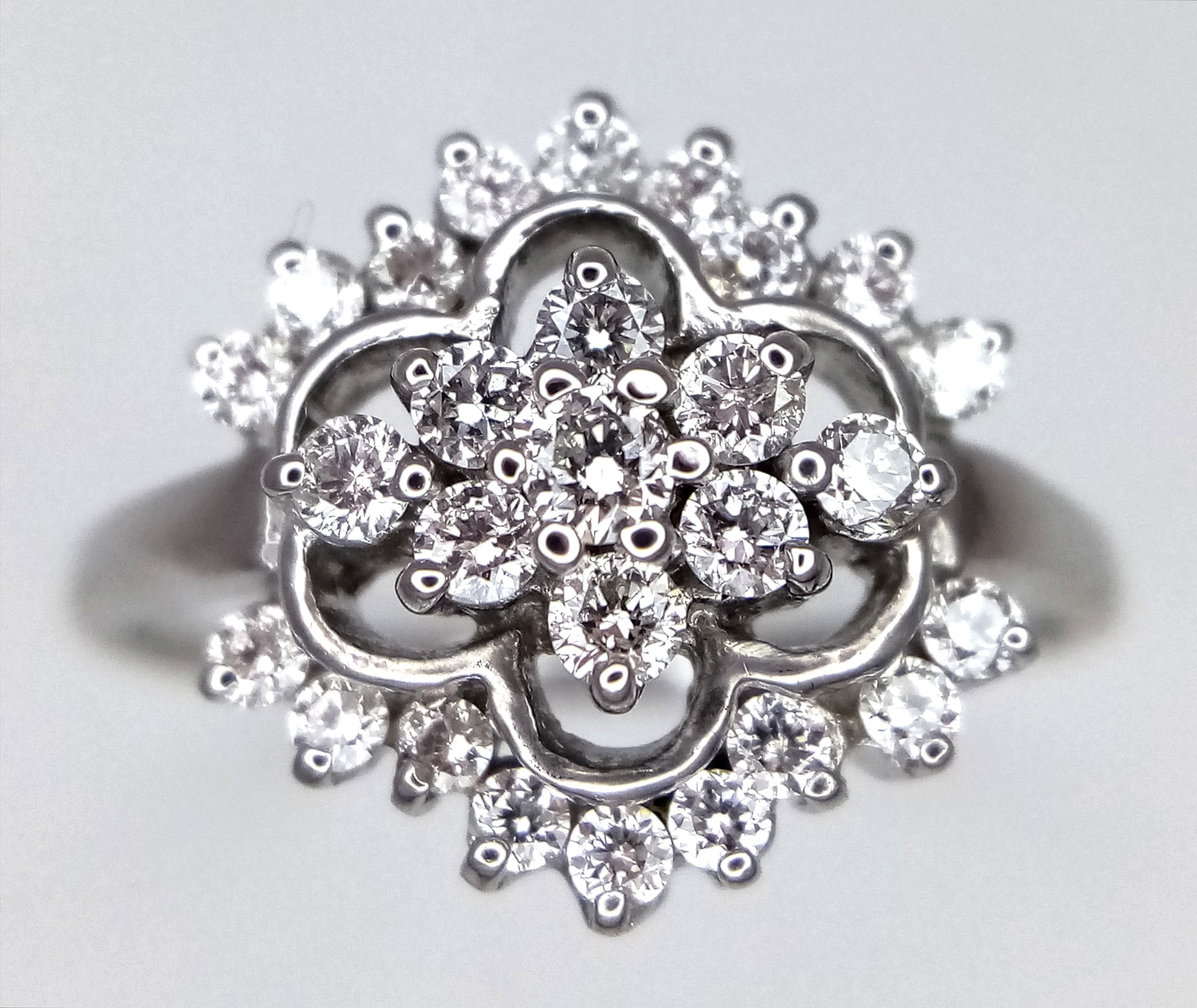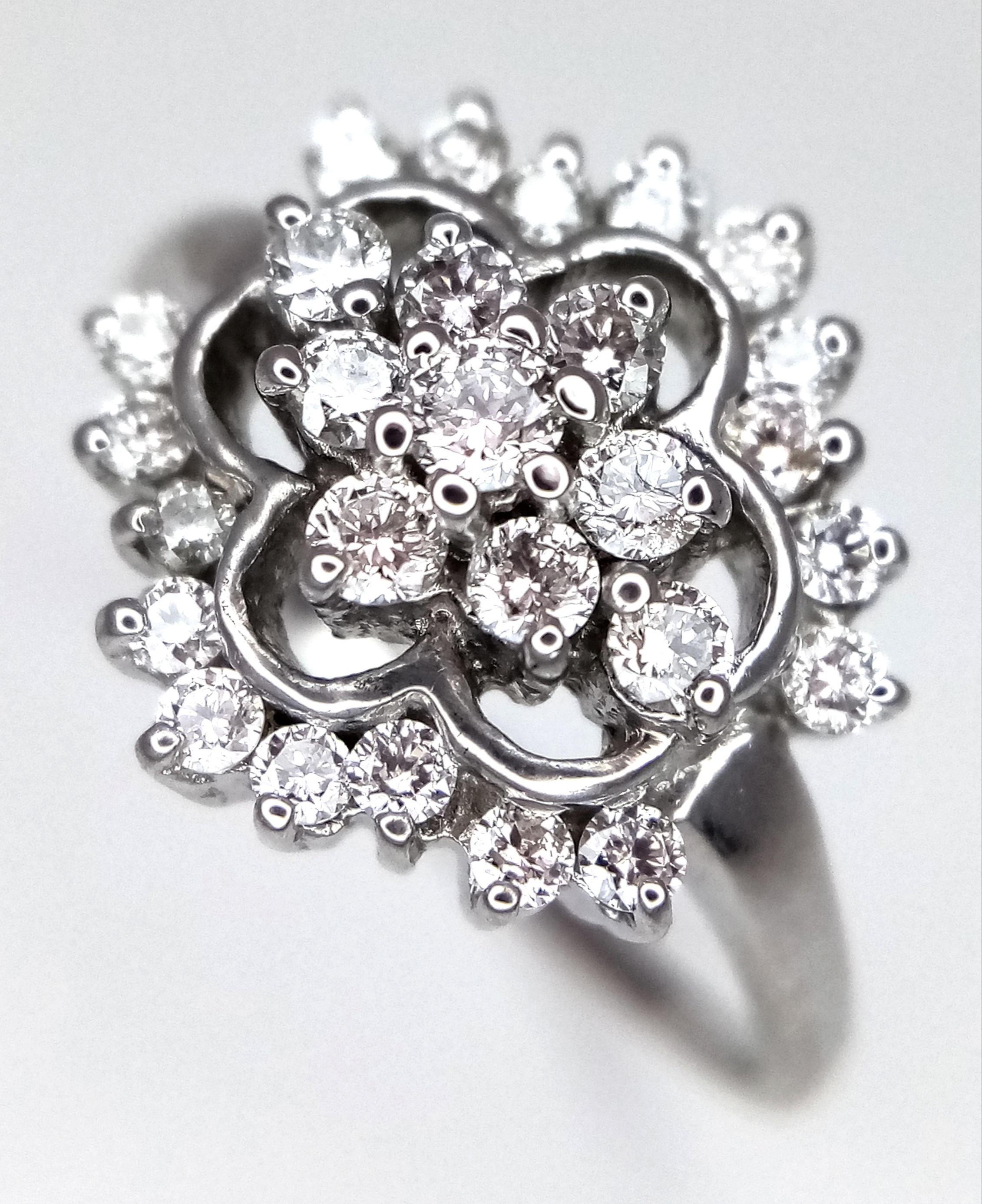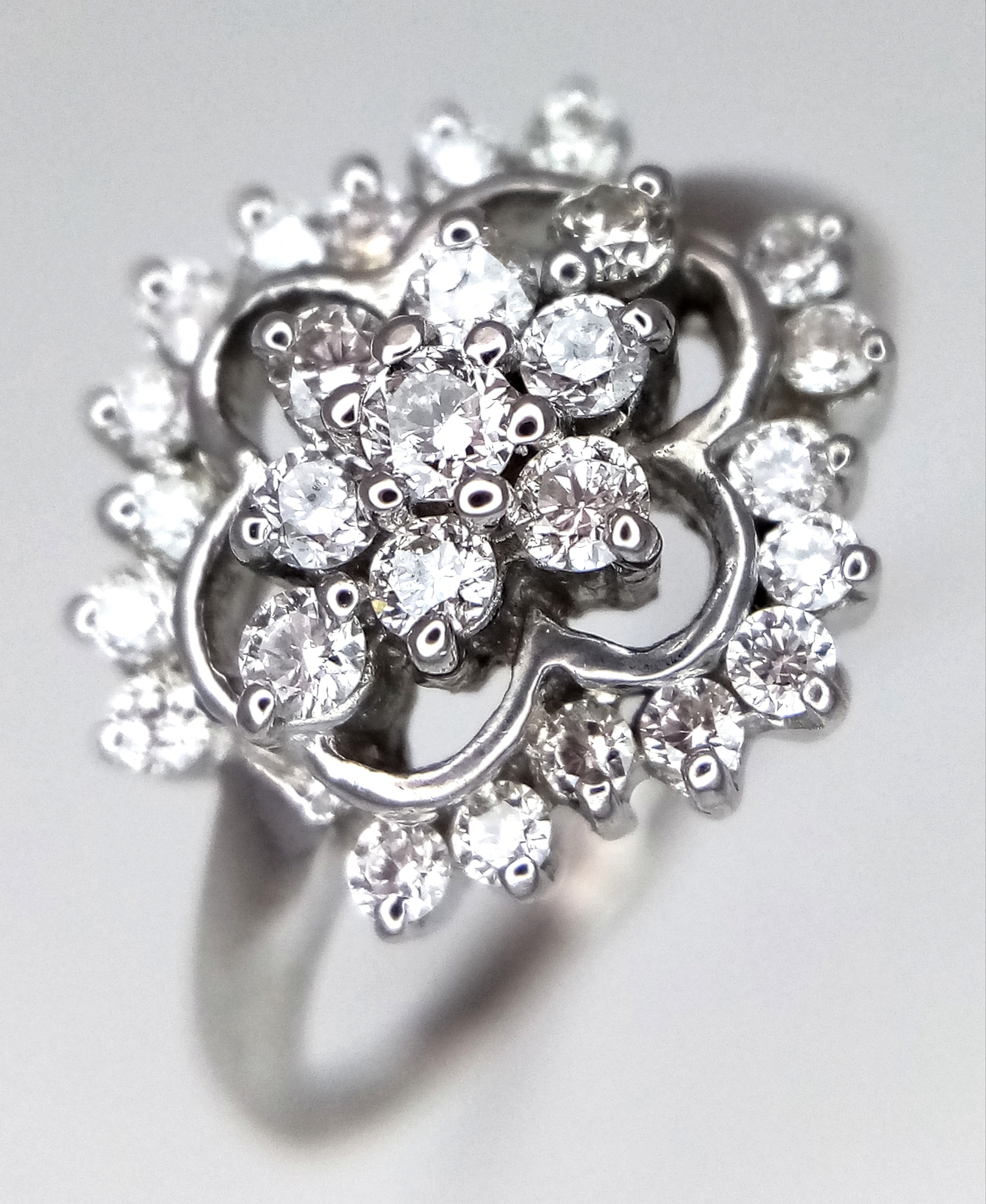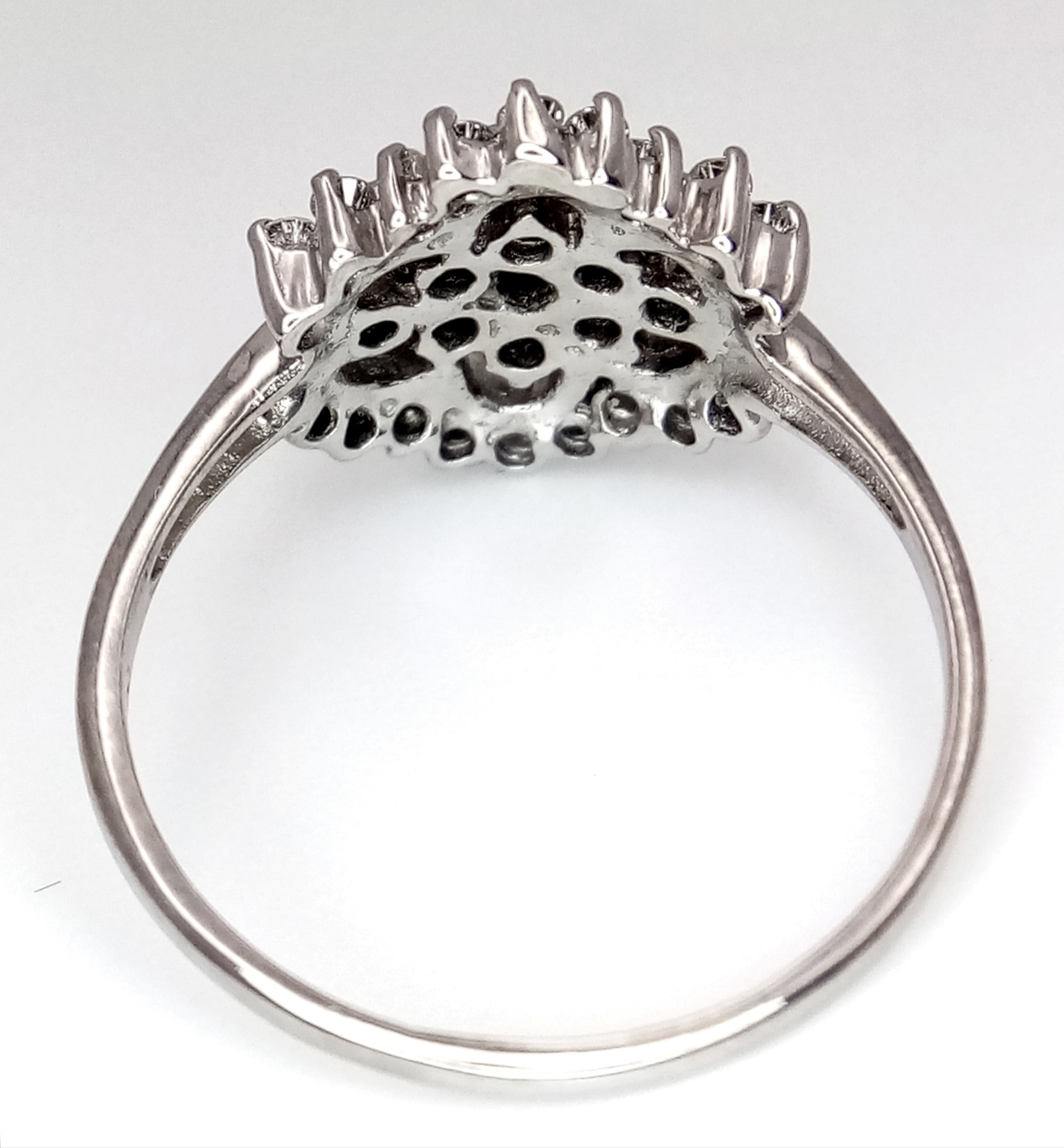 AN 18K WHITE GOLD DIAMOND CLUSTER RING. 0.20CTW. 3.4G. SIZE N. REF-9808.