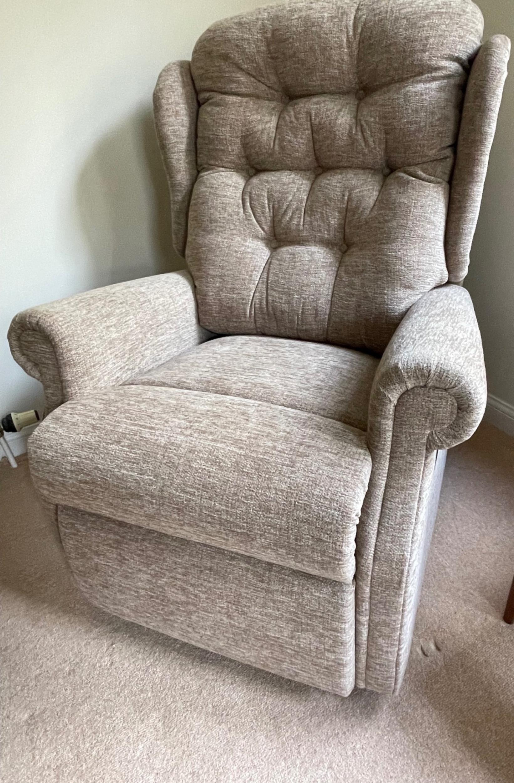 A nearly new reclining fabric covered chair (non-electric), came from Castle Warehouse