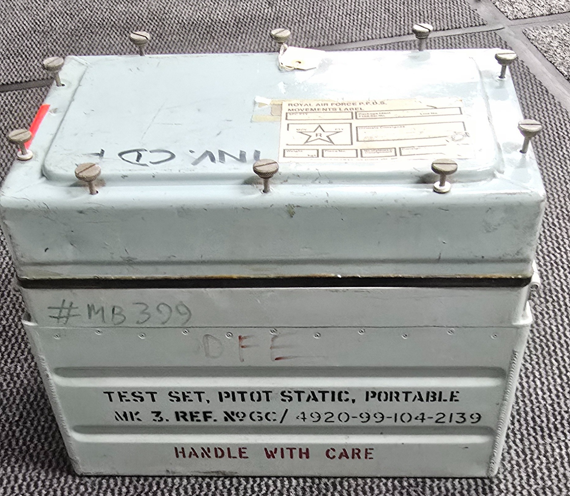 Smiths portable pilot-static test set for calibrating and testing airspeed, indicators and altimeters inspection date of 1987.