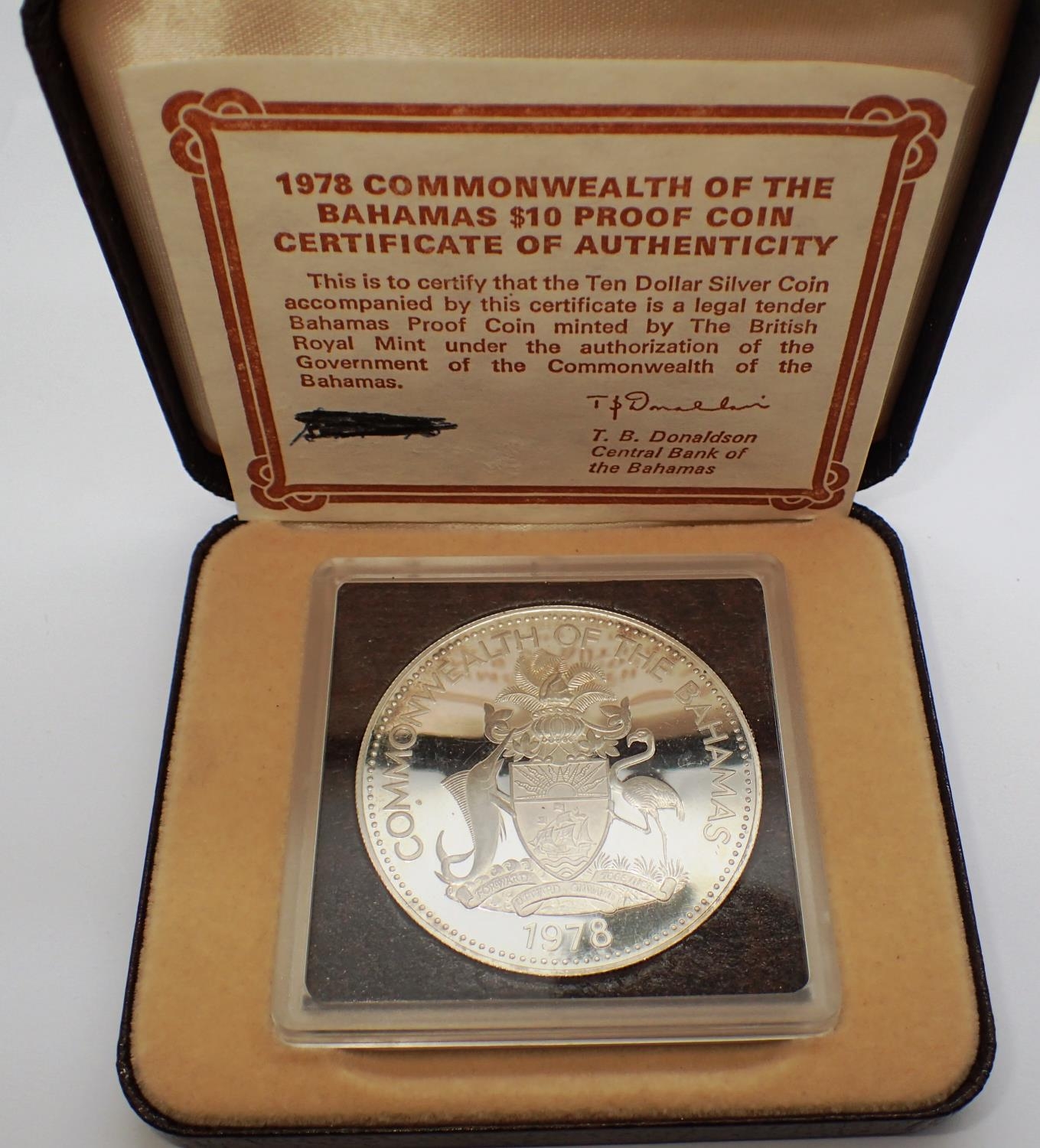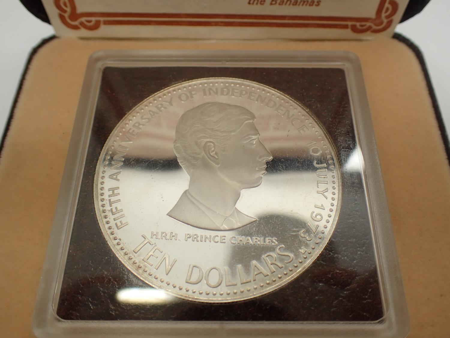 1978 Commonwealth of The Bahamas silver ten dollar coin with Prince Charles to obverse, boxed with certificate, 45g. P&P Group 0 (£5+VAT for the first lot and £1+VAT for subsequent lots)