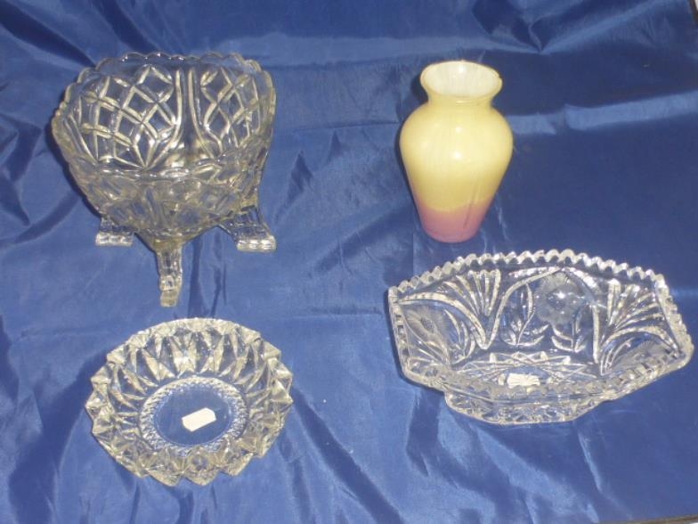 Three Pieces of Glassware and other to Include footed Bowl
