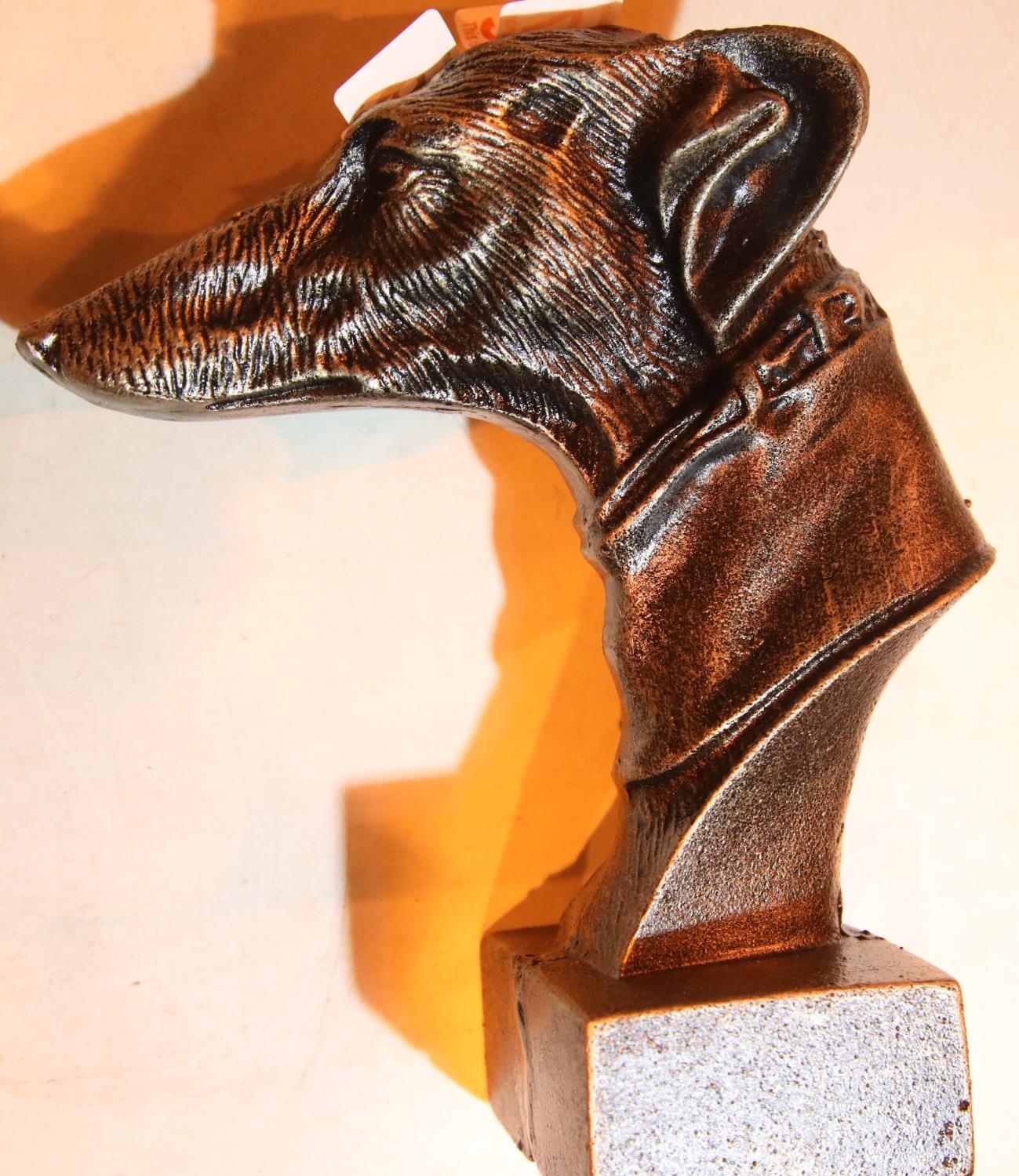 Cast iron Greyhound mounted head, H: 23 cm. P&P Group 2 (£18+VAT for the first lot and £3+VAT for subsequent lots)