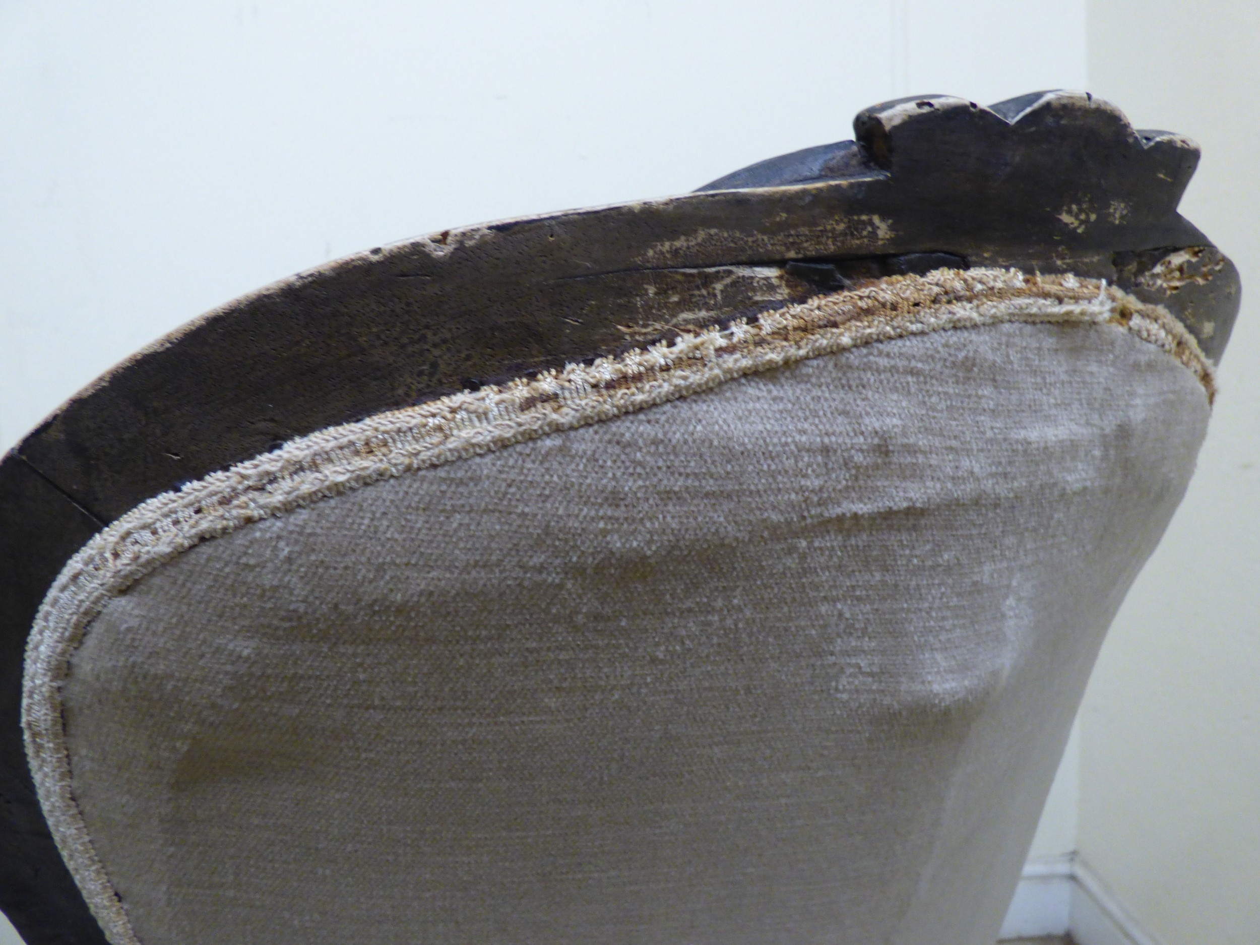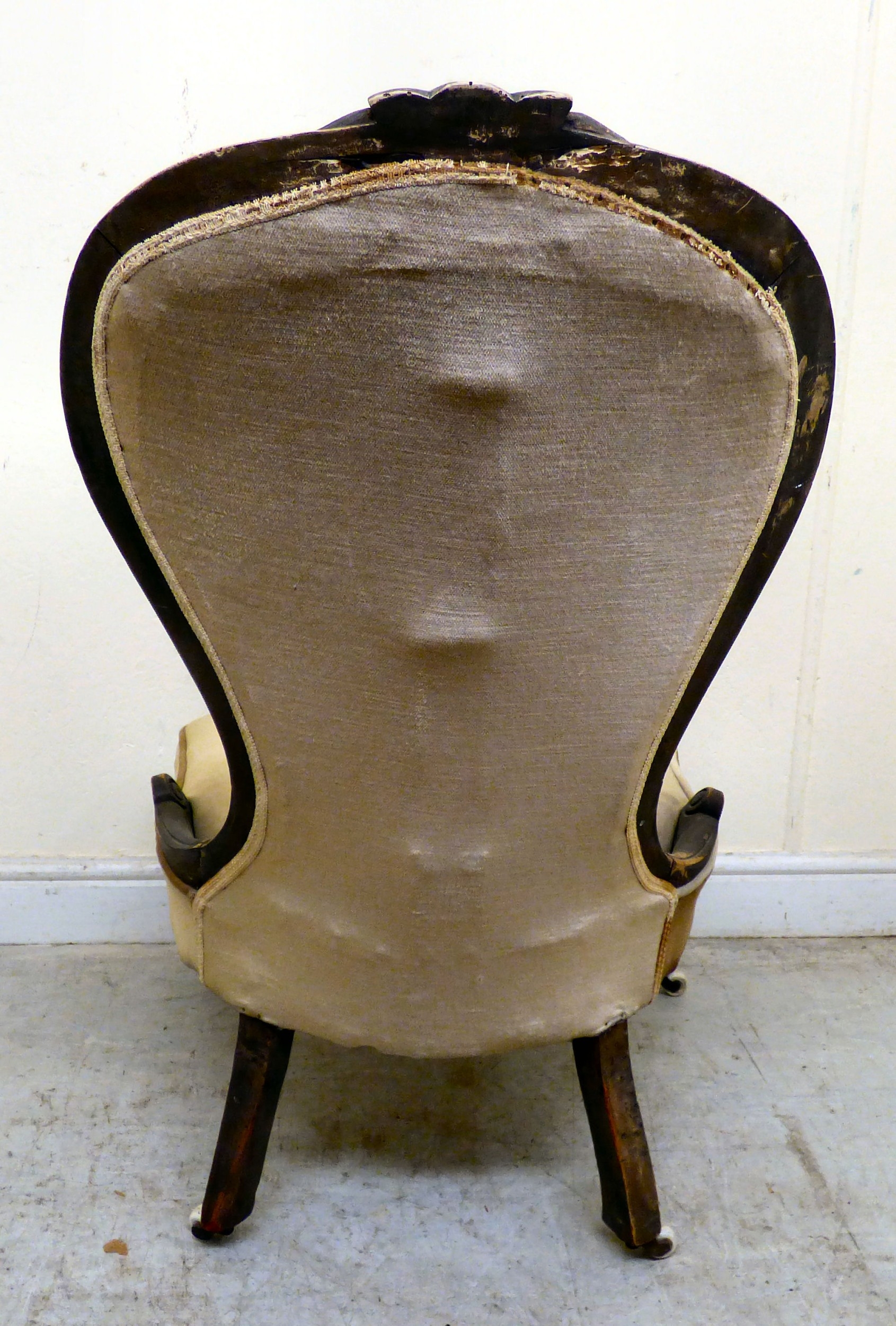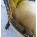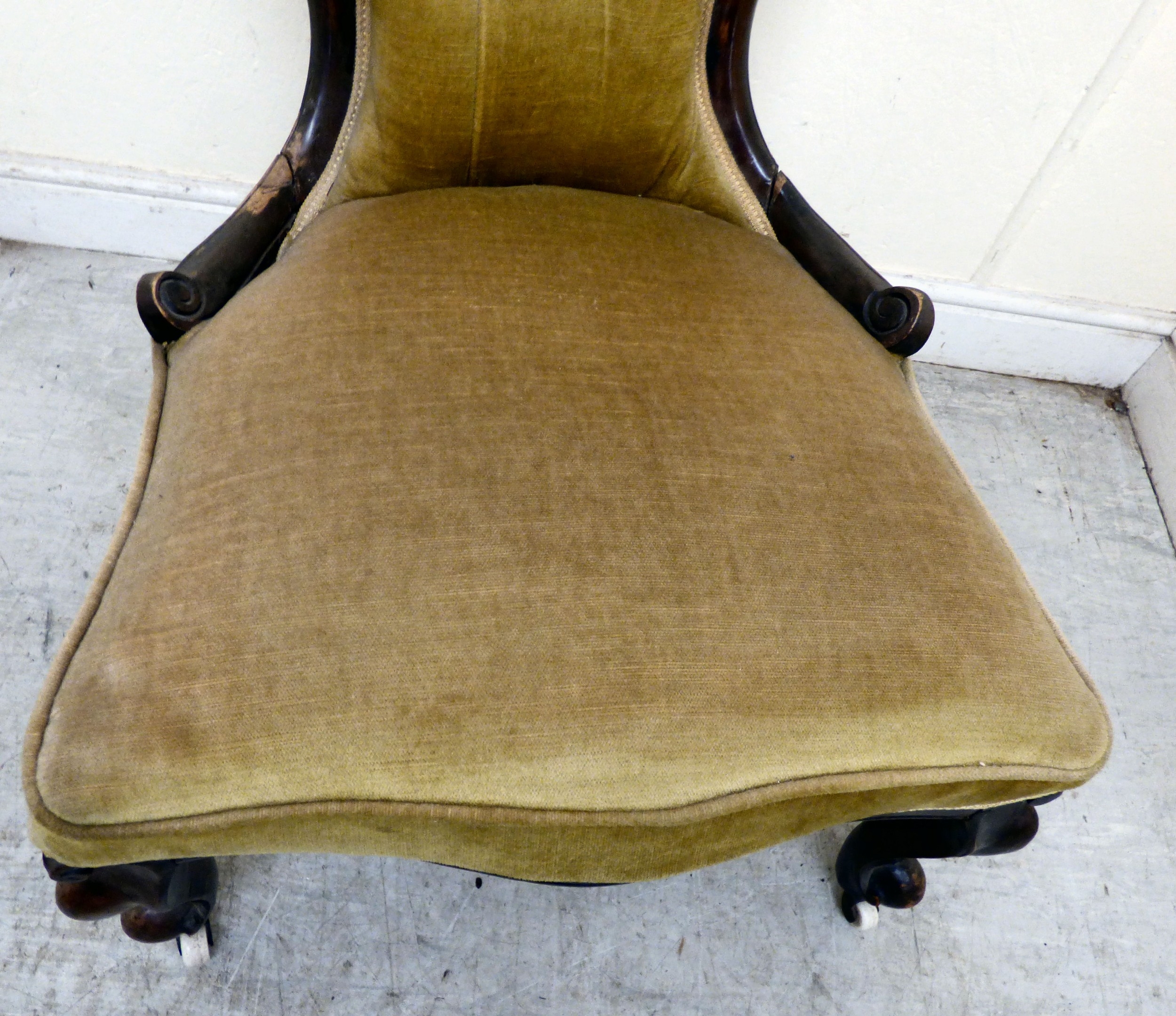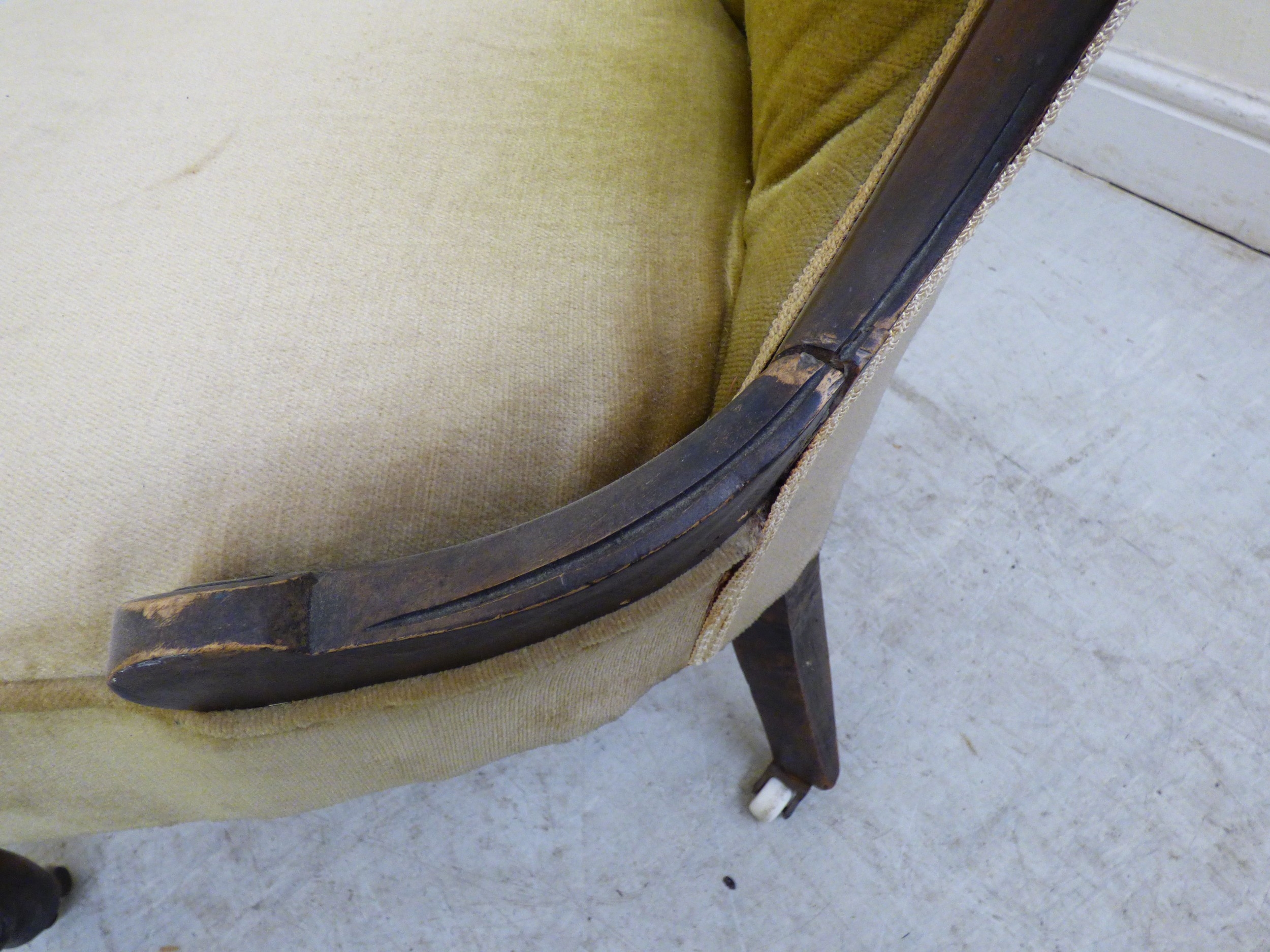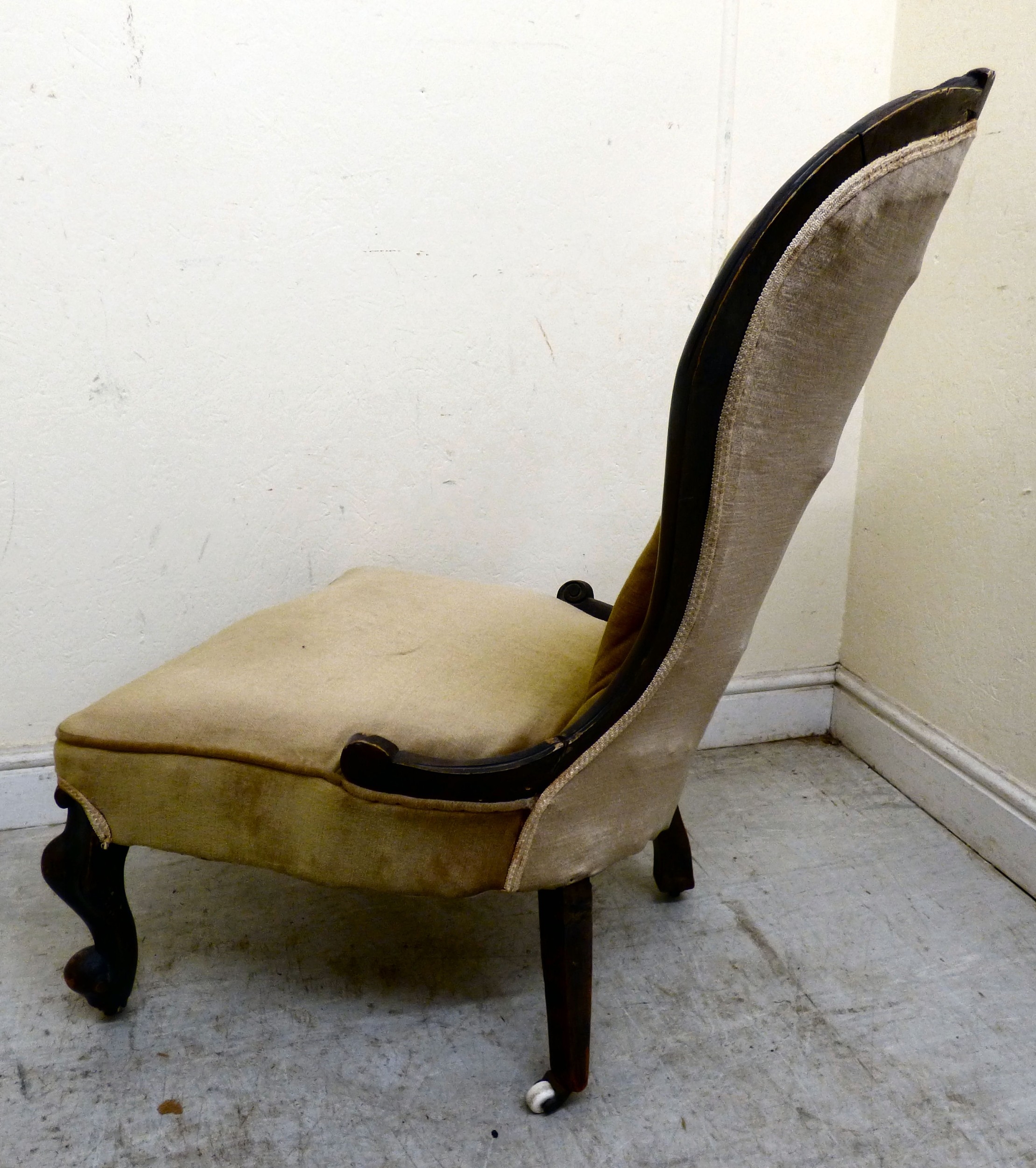 A late 19thC walnut framed salon chair with a button upholstered back and seat, raised on cabriole legs