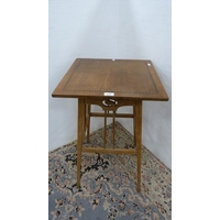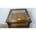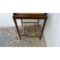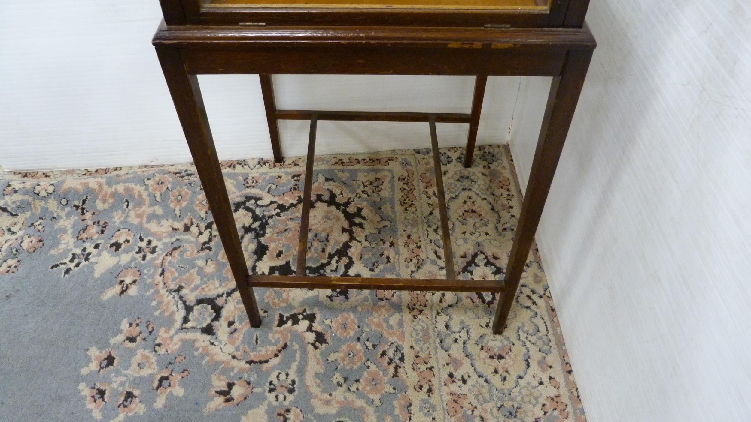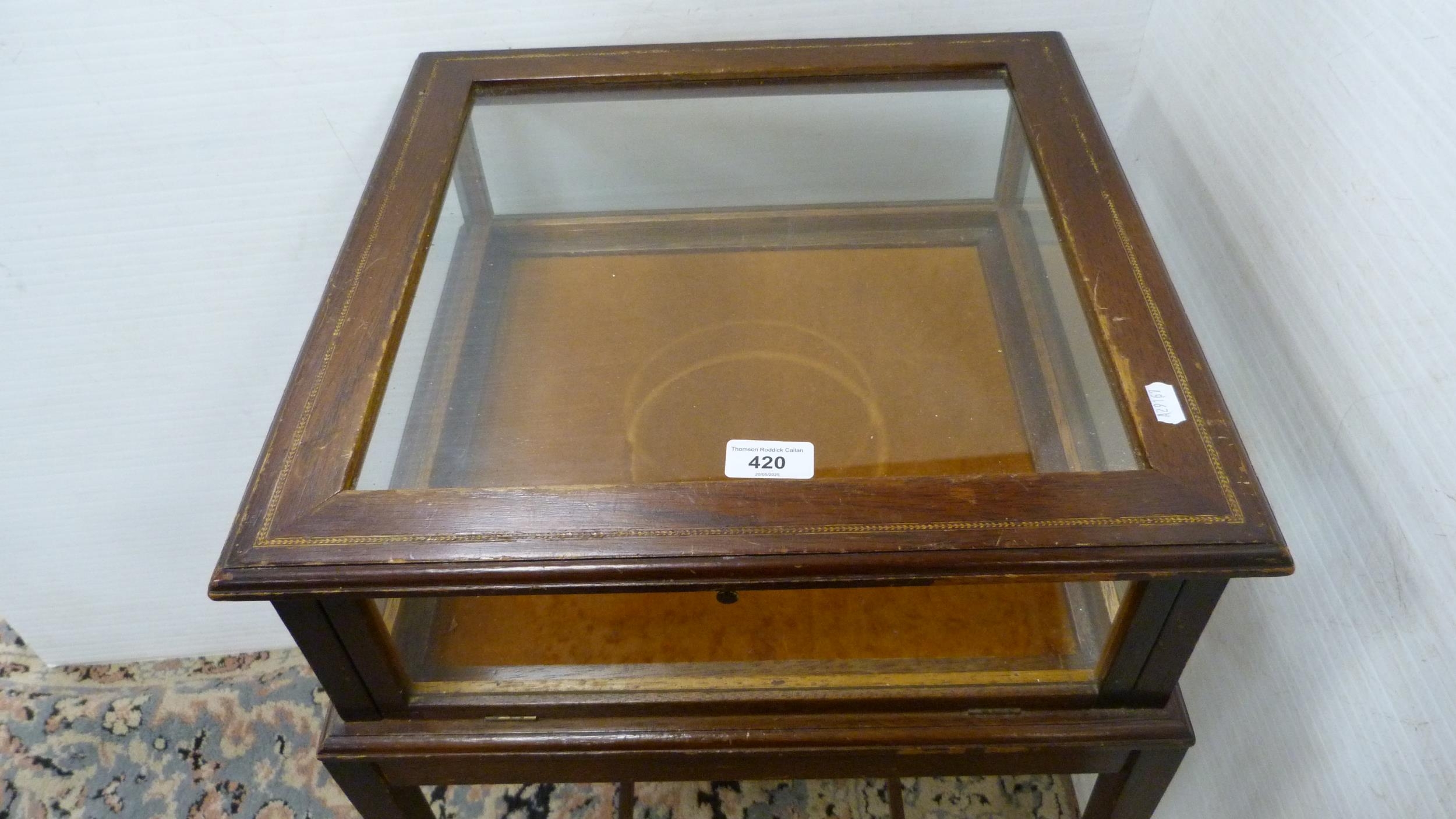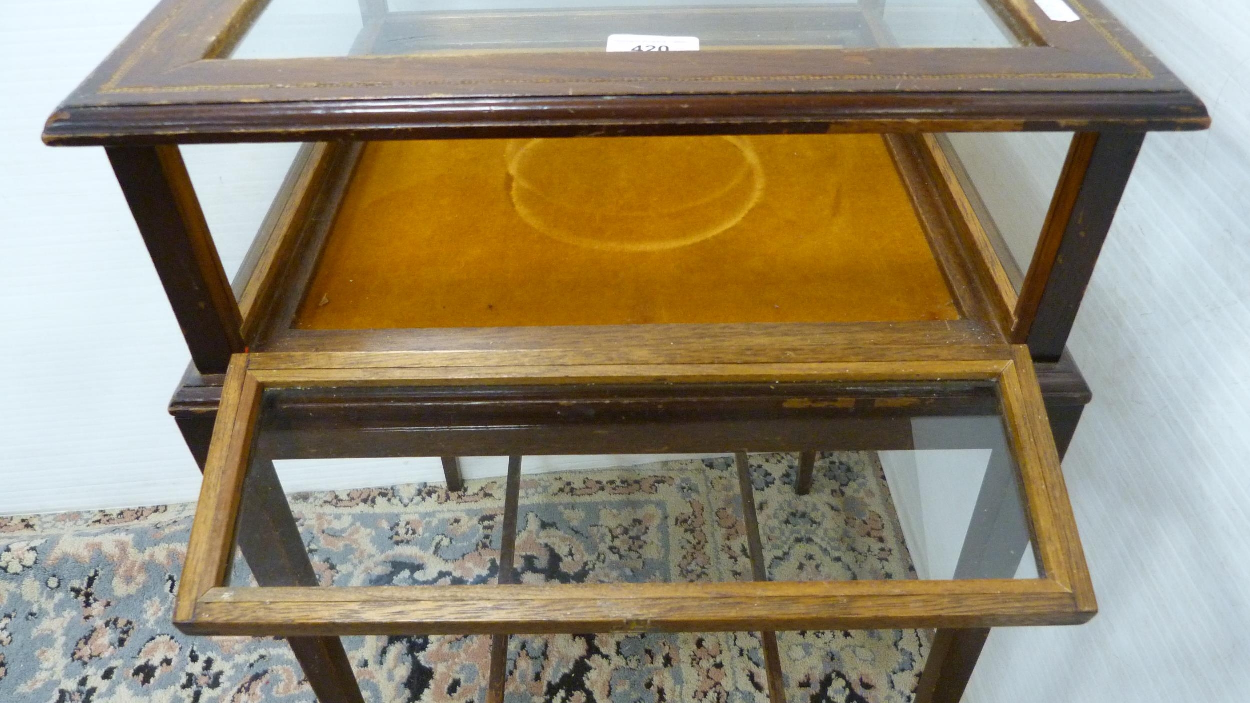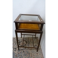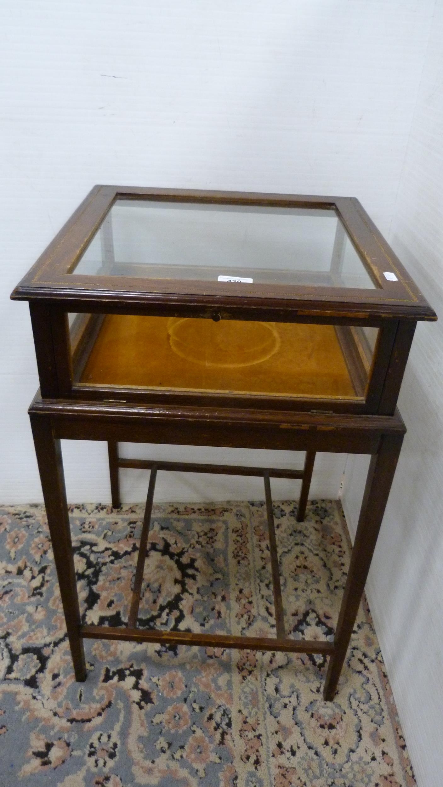 Inlaid and glazed bijouterie table with fall front glazed door.