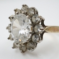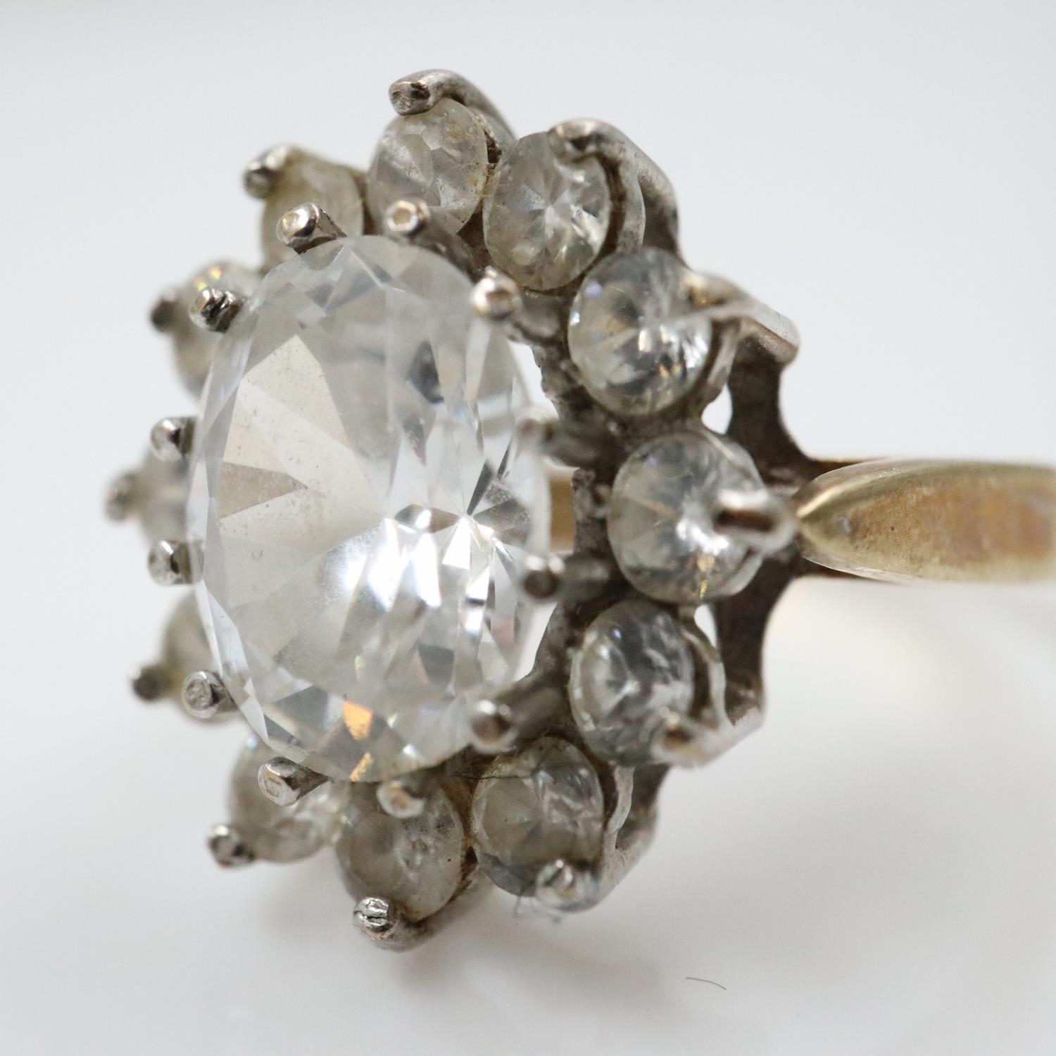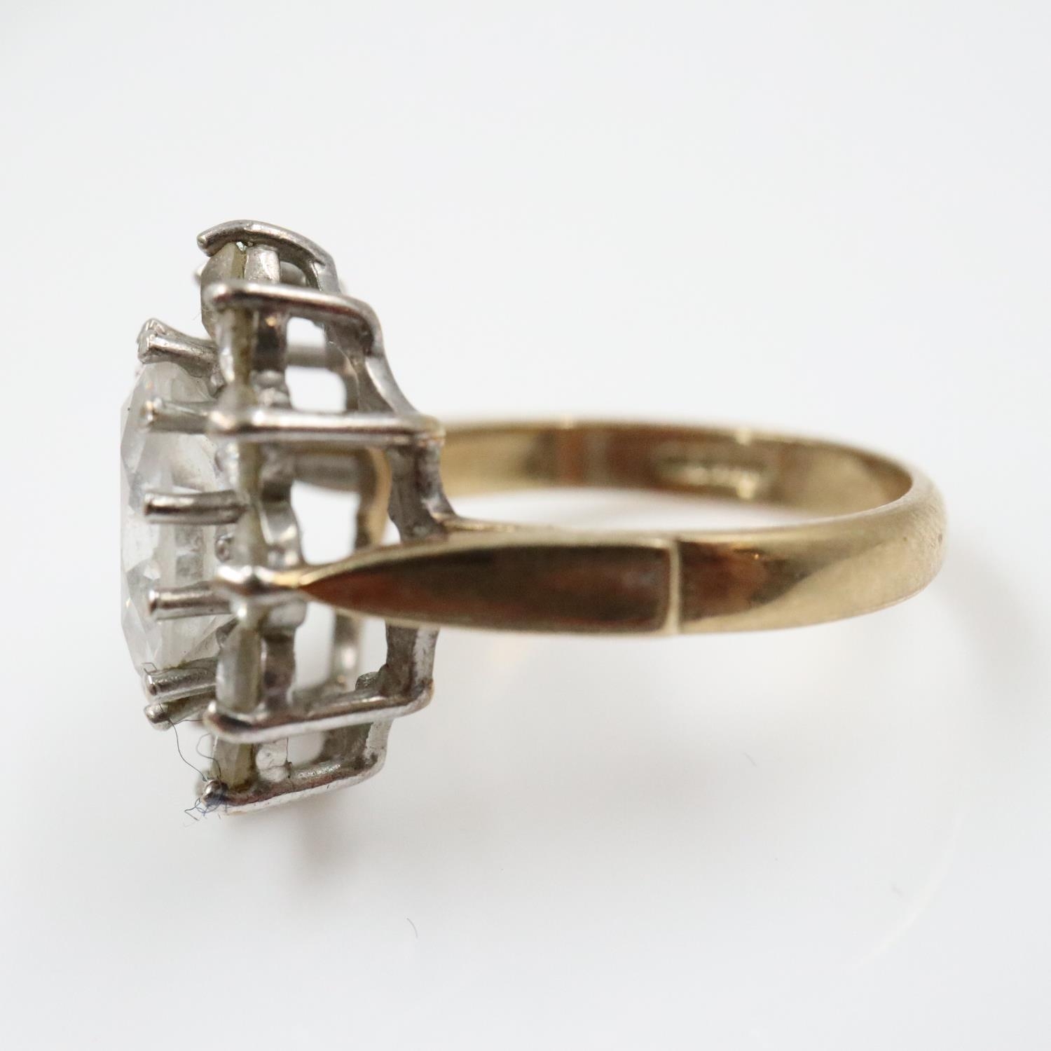 9ct gold CZ set cocktail ring, size Q, 6.2g. UK P&P Group 0 (£7+VAT for the first lot and £1+VAT for subsequent lots)