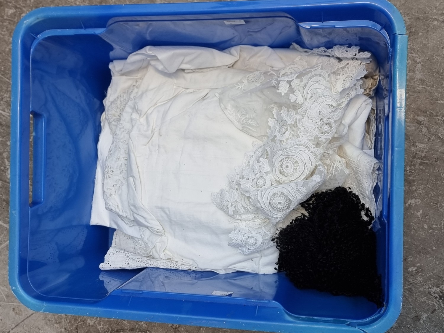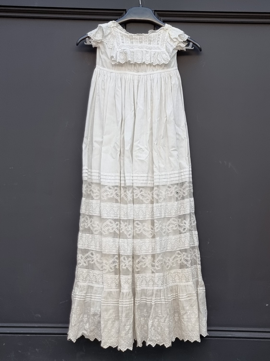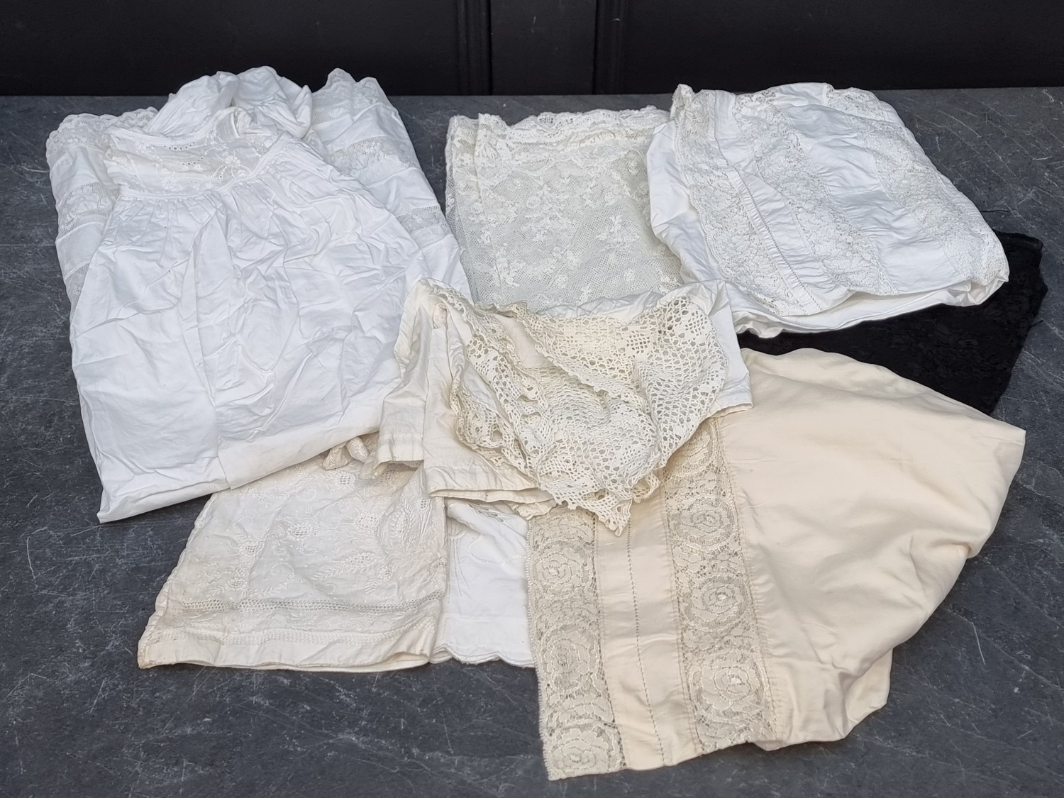 A collection of lace and whitework, to include a Christening gown.