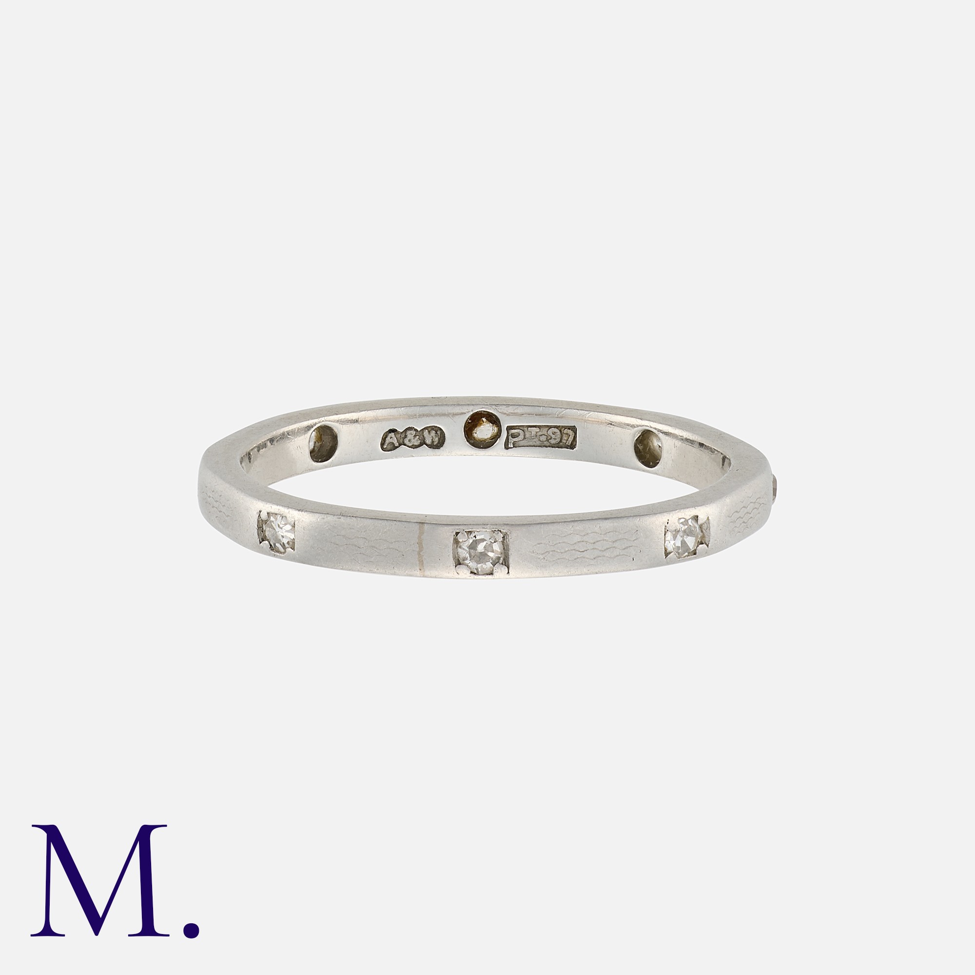 ALABASTER & WILSON, A Diamond Wedding Band in platinum, of octagonal form, with engraved decoration, punctuated by round cut diamonds. A&W Maker's Mark, stamped PT.97.
