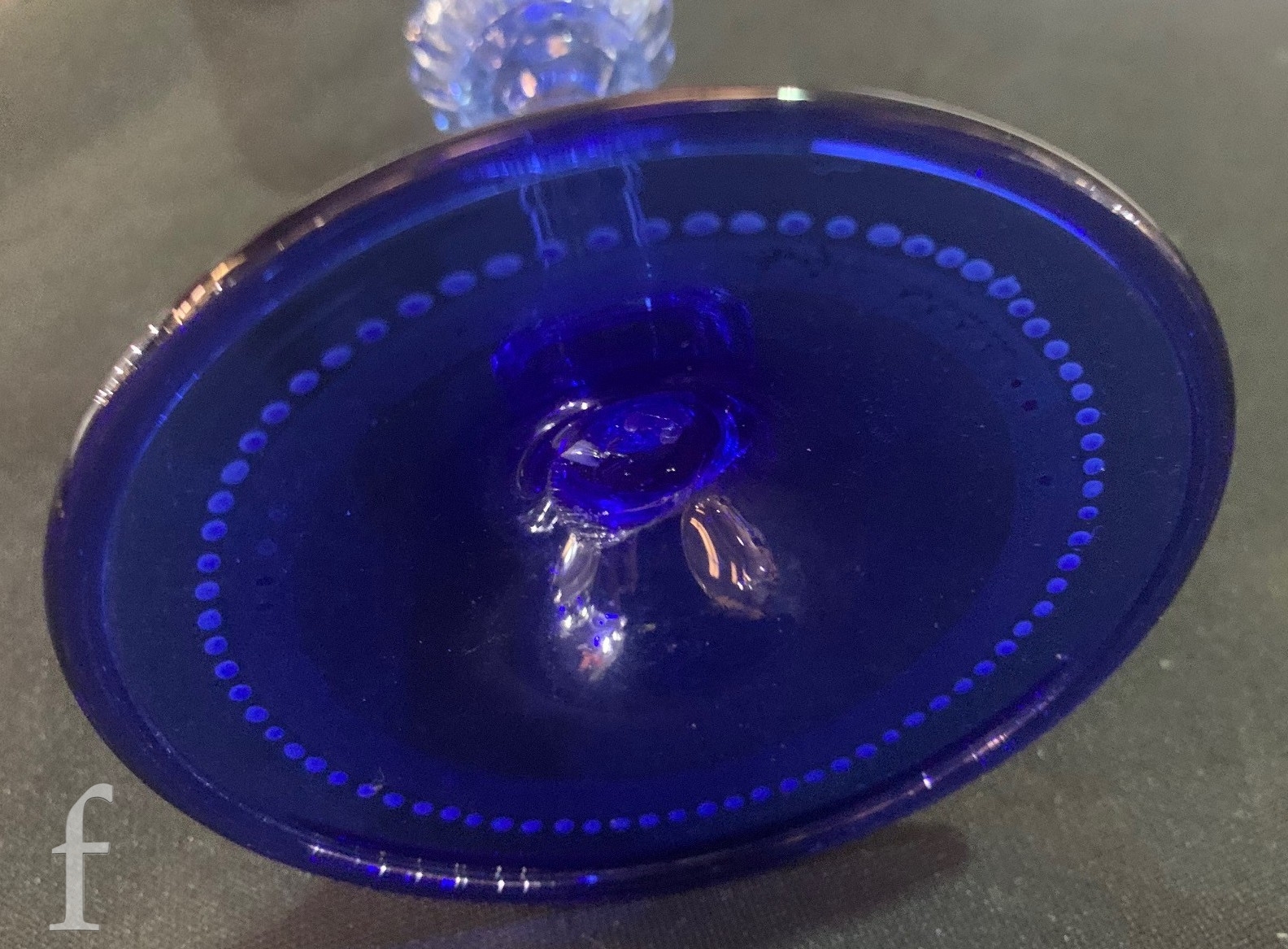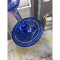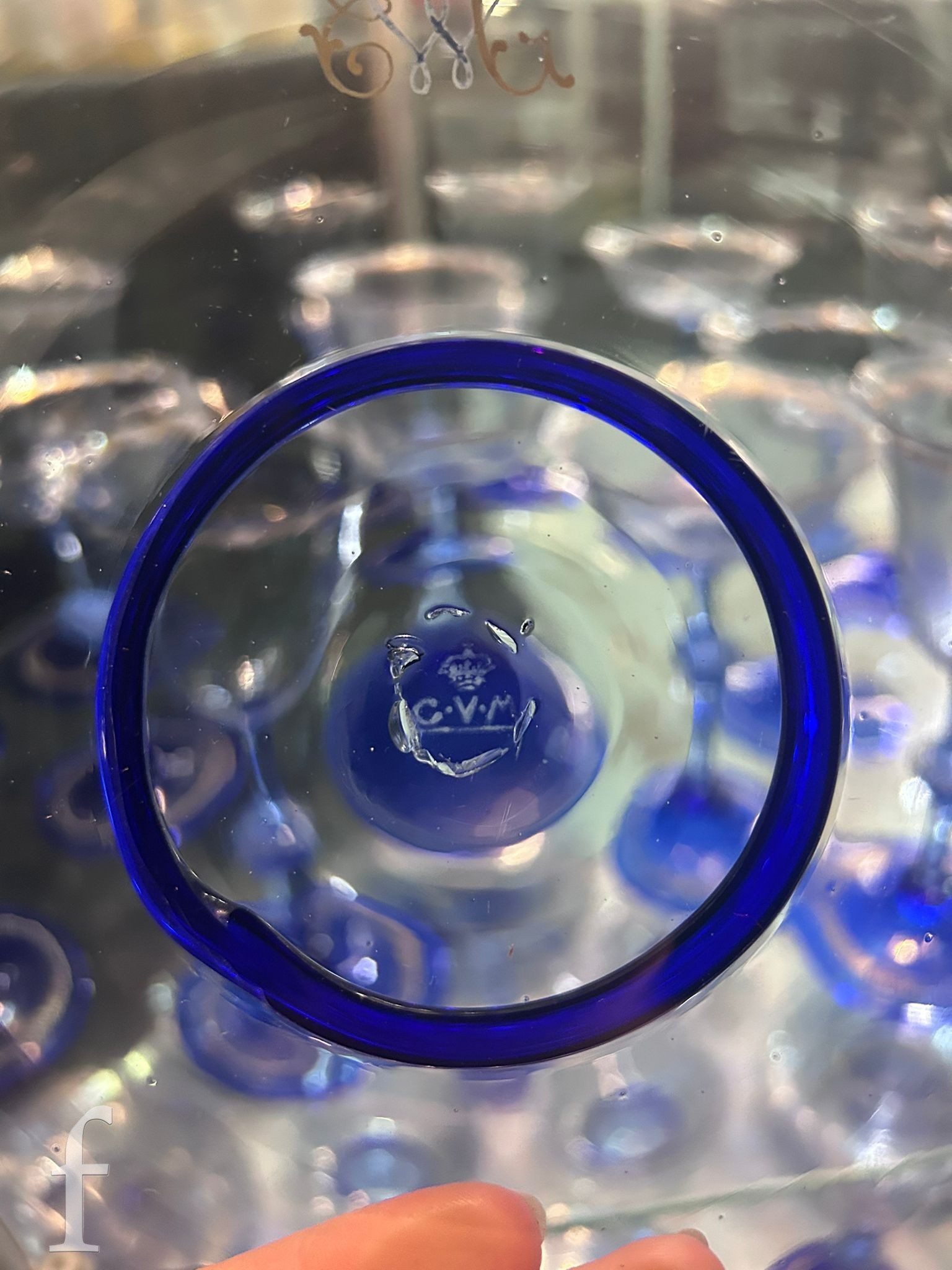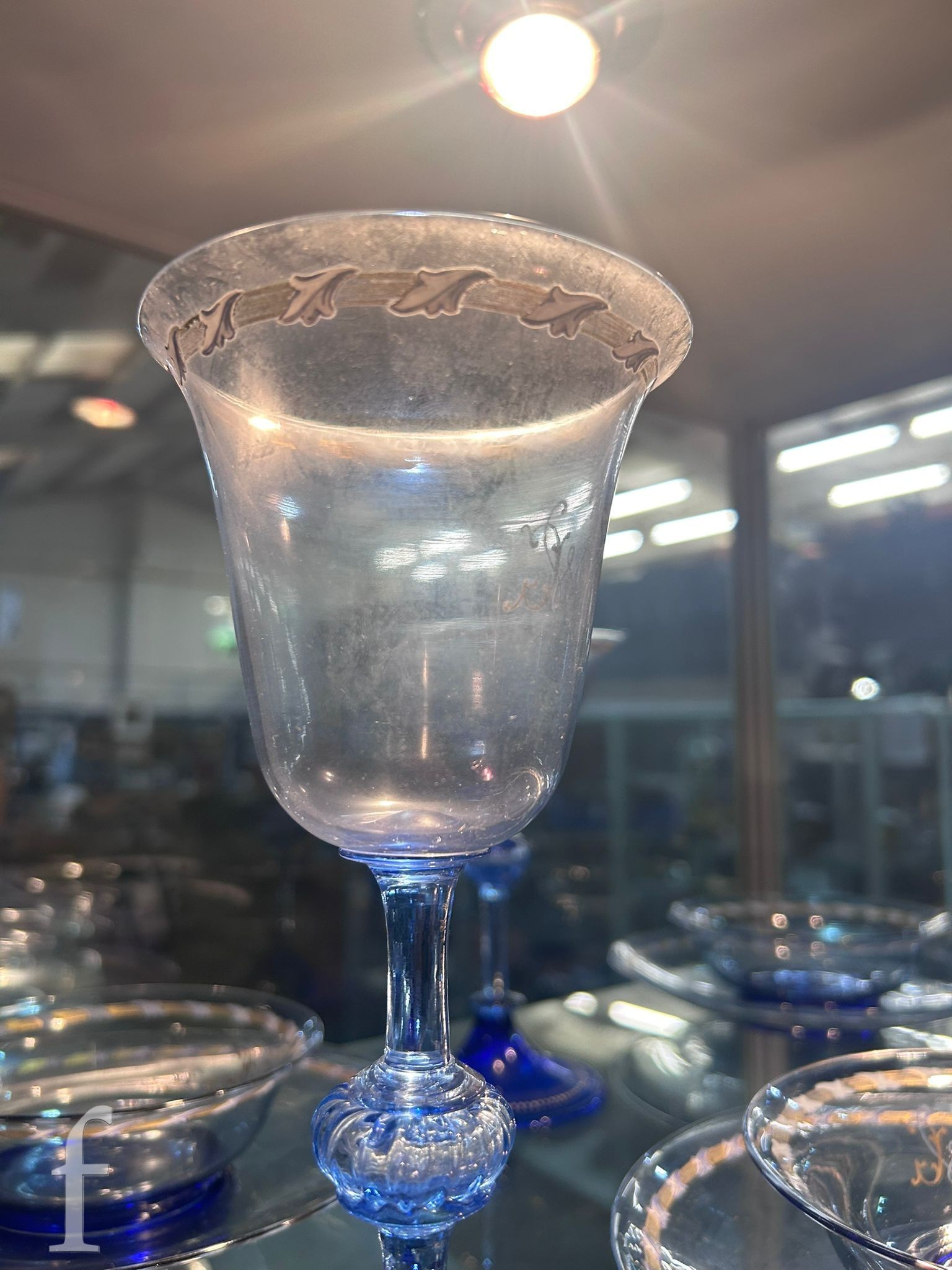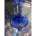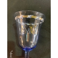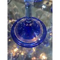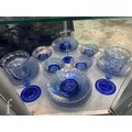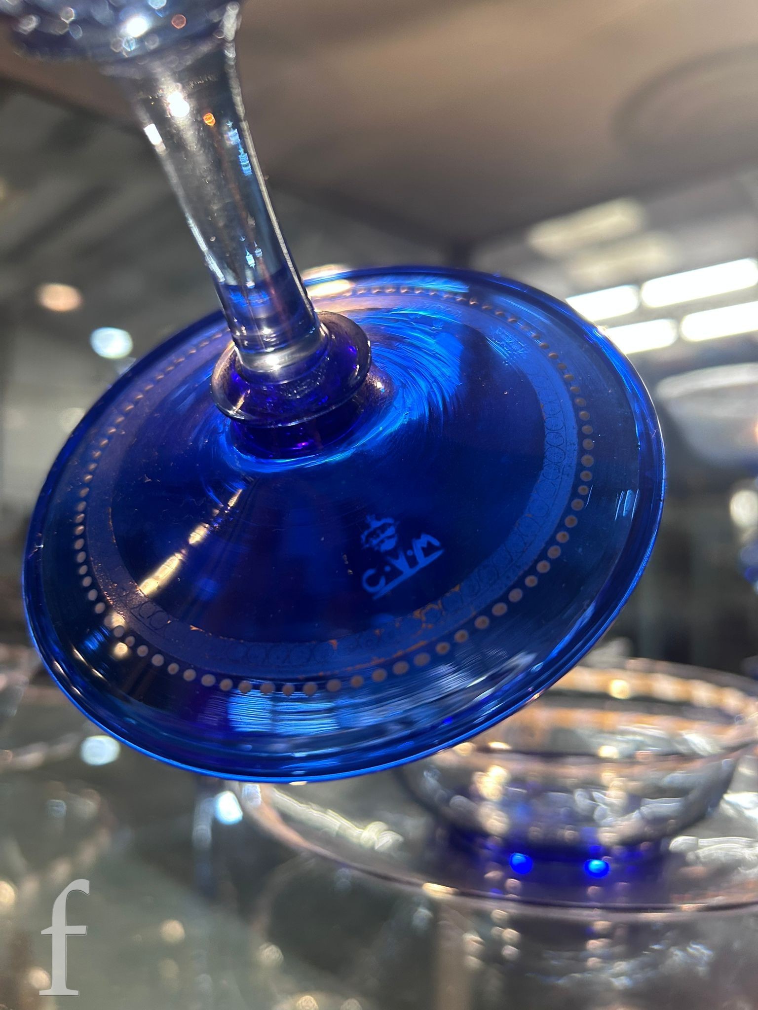 Pauly & C. - Compagnia Venezia Murano - An early 20th Century Italian 'Venetian Revival' extensive suite of stem and tableware, blown blue glass on slender hollow blown wrythen knopped stem and circular foot with folded rim, decorated with gilt band with wound blue and white acanthus leaves and 'EWG' monogram, the foot with gilded band and jewelled enamel border, comprising fifteen wine, fourteen water, fourteen champagne and sixteen port/sherry, tallest 21.5cm, together with eighteen finger bowls and stands, diameter of stand 20cm. (qty)