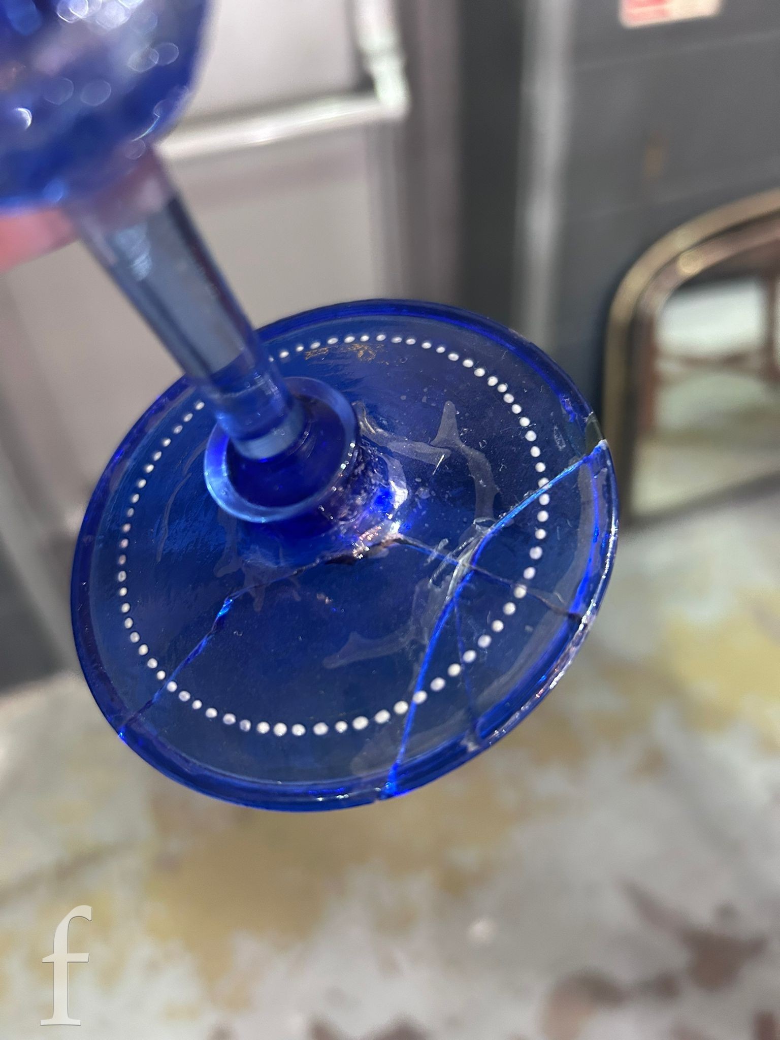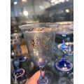 1 wine glass has a broken/cracked foot that is held together with glue.