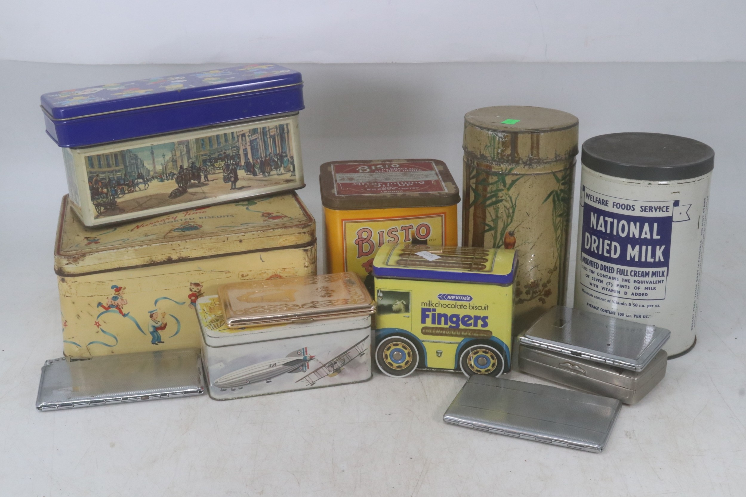 Small selection of vintage and later tins together with a selection of cigarette cases