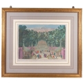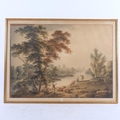 Early 19th century watercolour, Thames near Windsor Castle, unsigned, 50cm x 70cm, together with an Antique architectural engraving, framed (2)