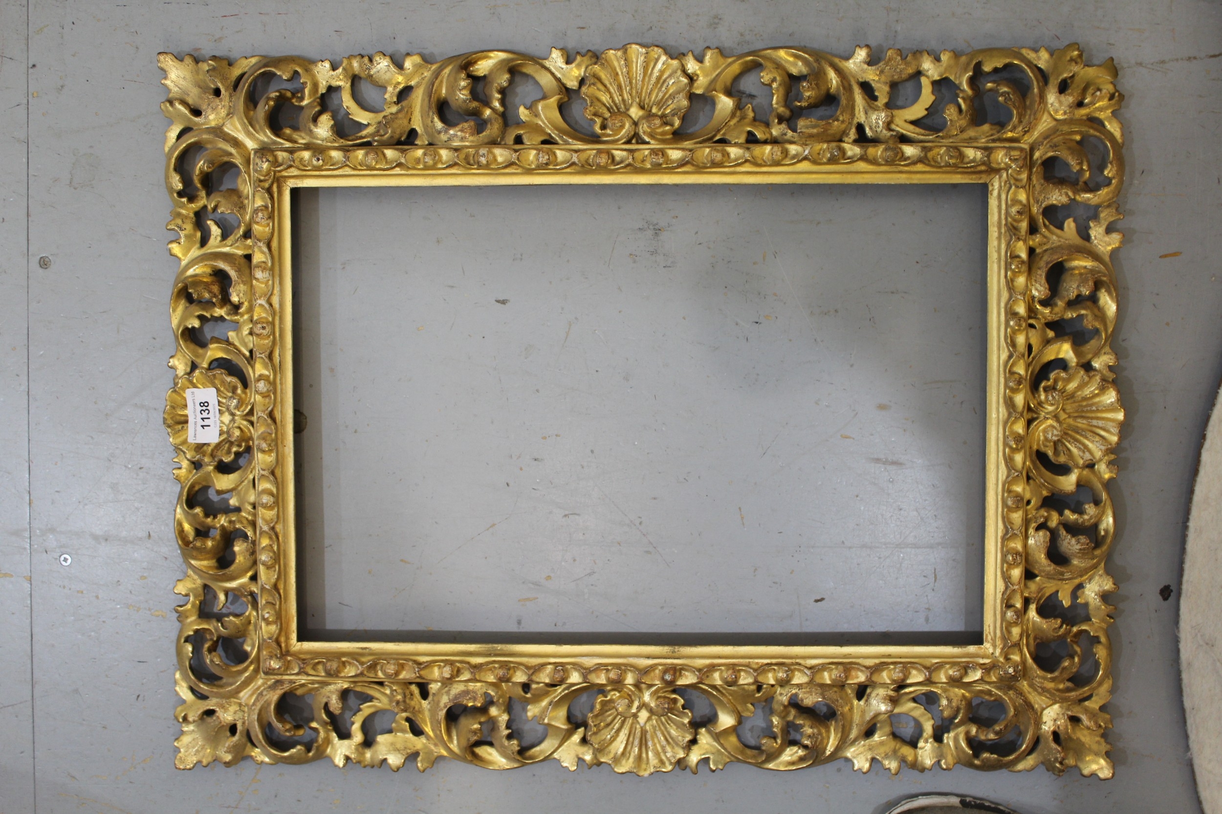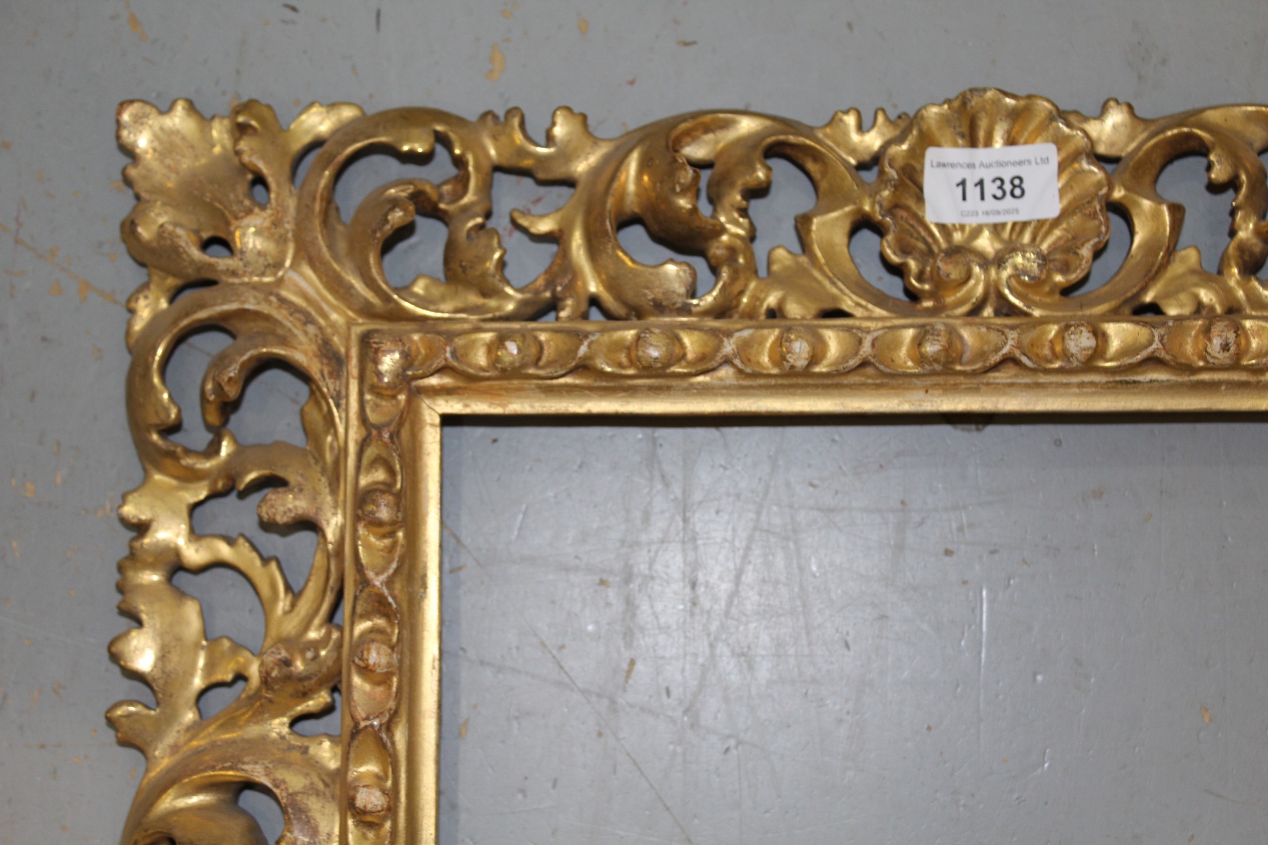 Antique Florentine design carved giltwood picture frame, rebate 48 x 33cm