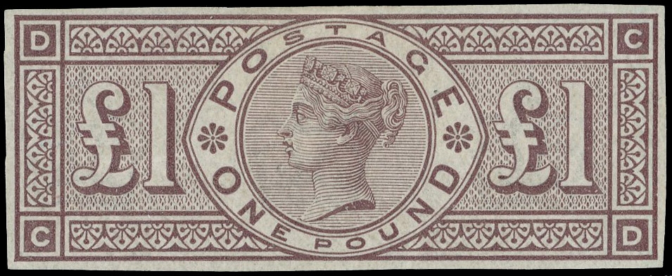 1884 £1 Brown-lilac (Wmk. Crowns). Very fine and fresh unused o.g. imperforate imprimatur lettered CD. Scarce. SG185. Cat. £15000.