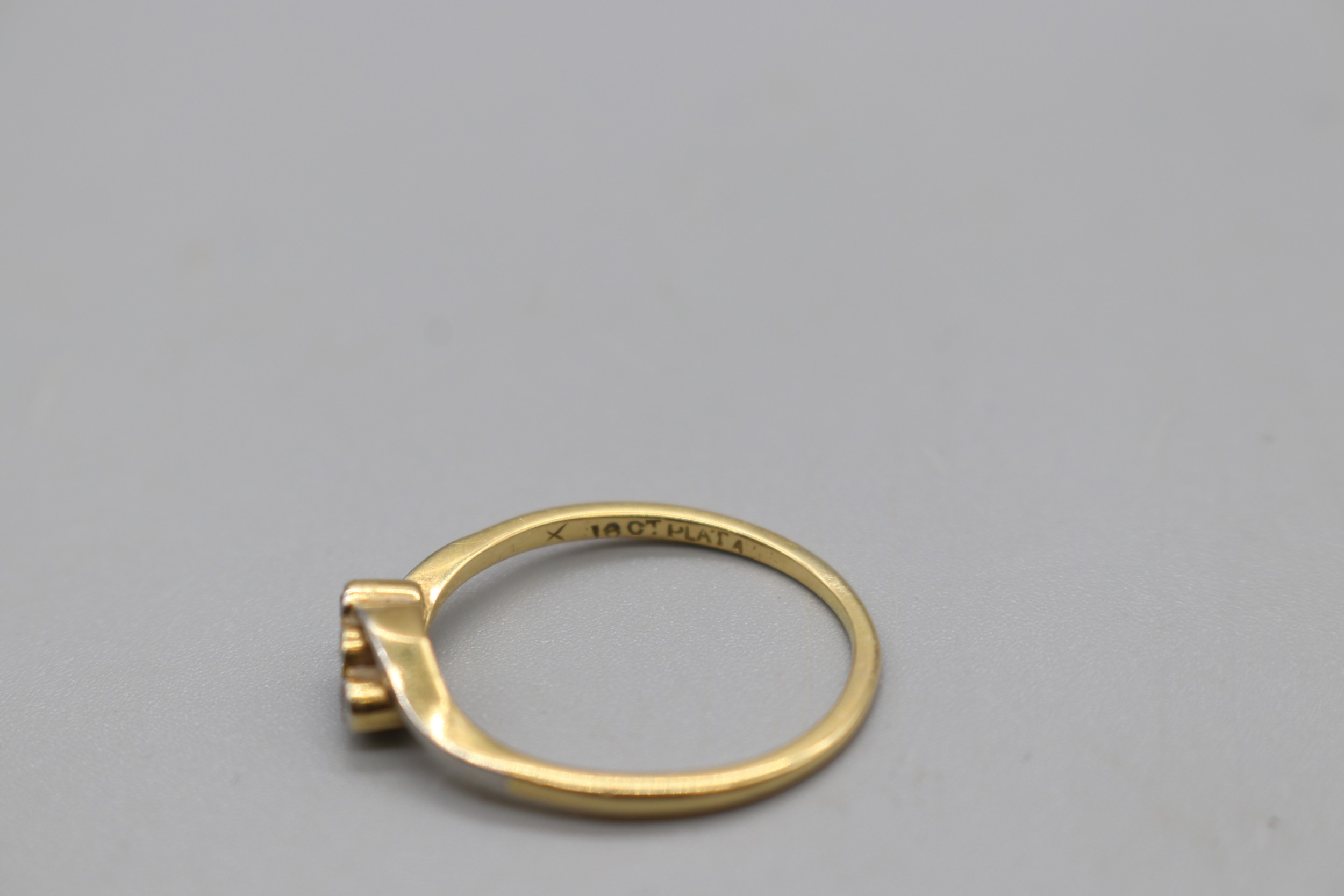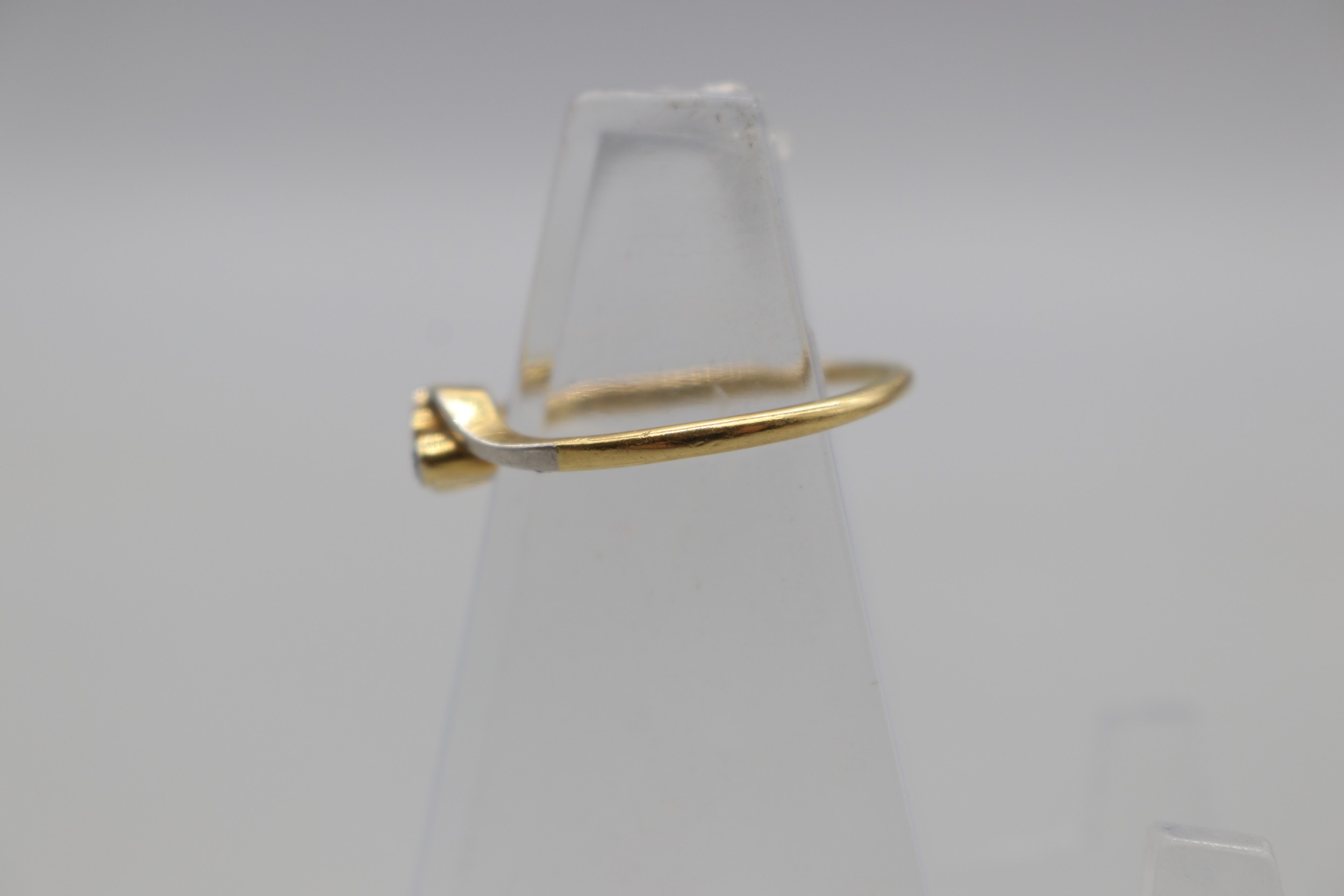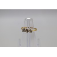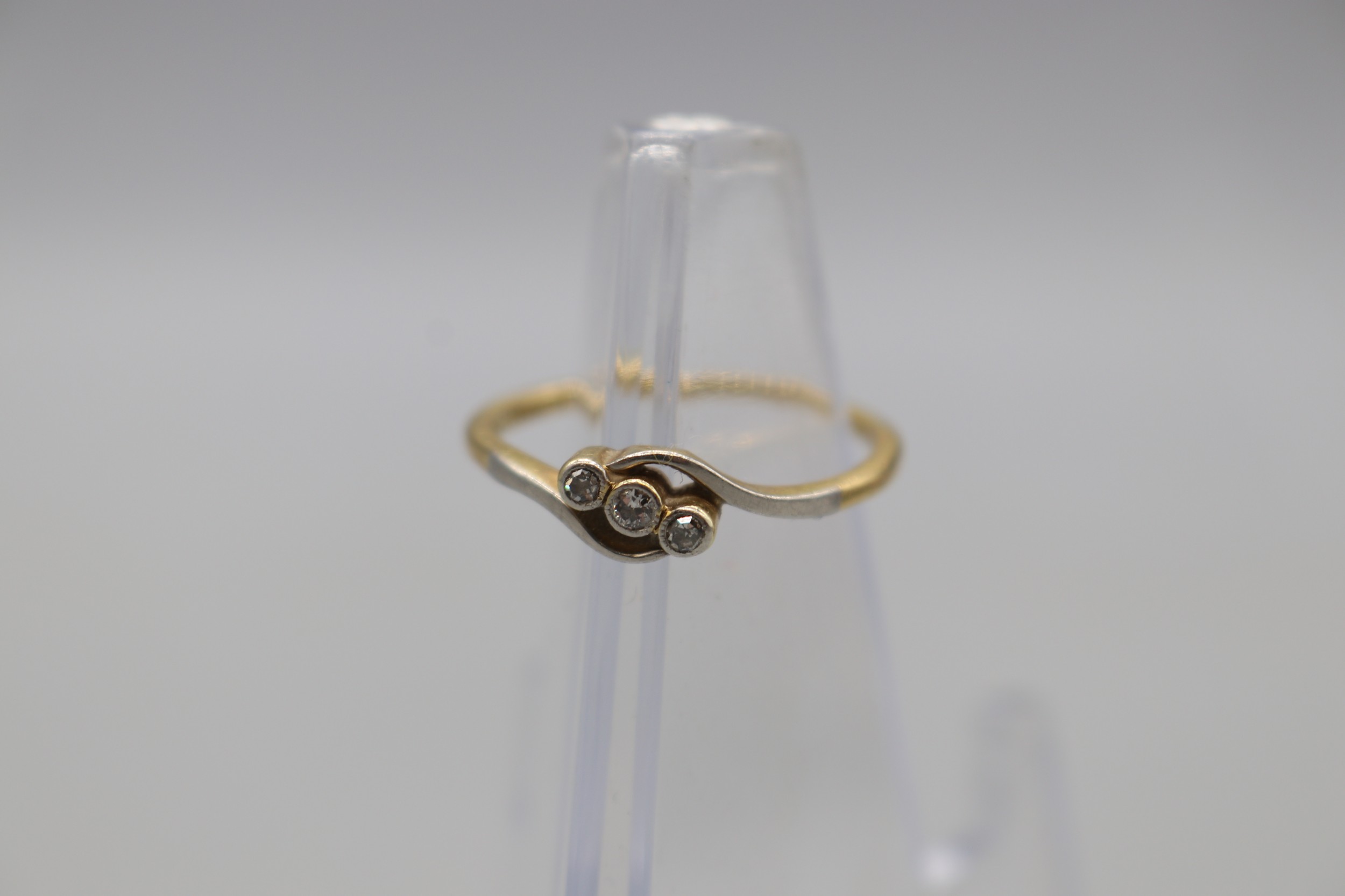 Stamped 18ct yellow gold and platinum trilogy ring, set with three small bezel-set diamonds, size Q, weight 2.44g