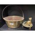 Brass jam pan, cat and trivet