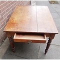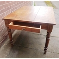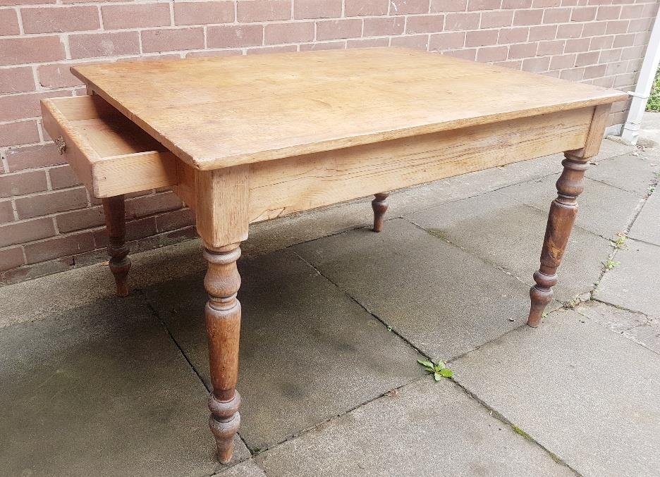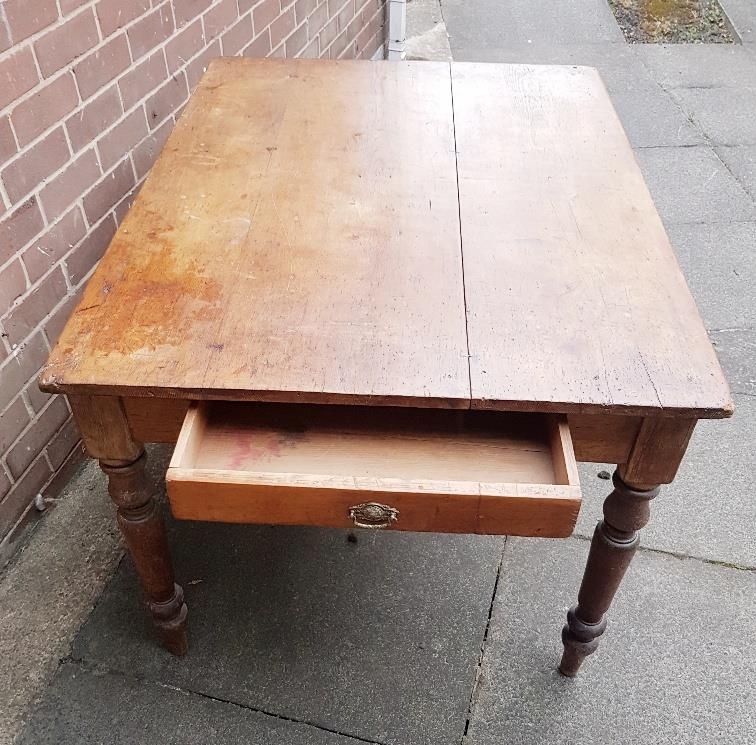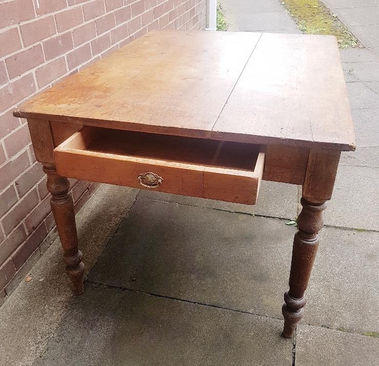 Traditional Victorian Plank Top Pine Dining Table with cutlery drawer. Measuring 48 inches x 36 inches x 30 inches in height