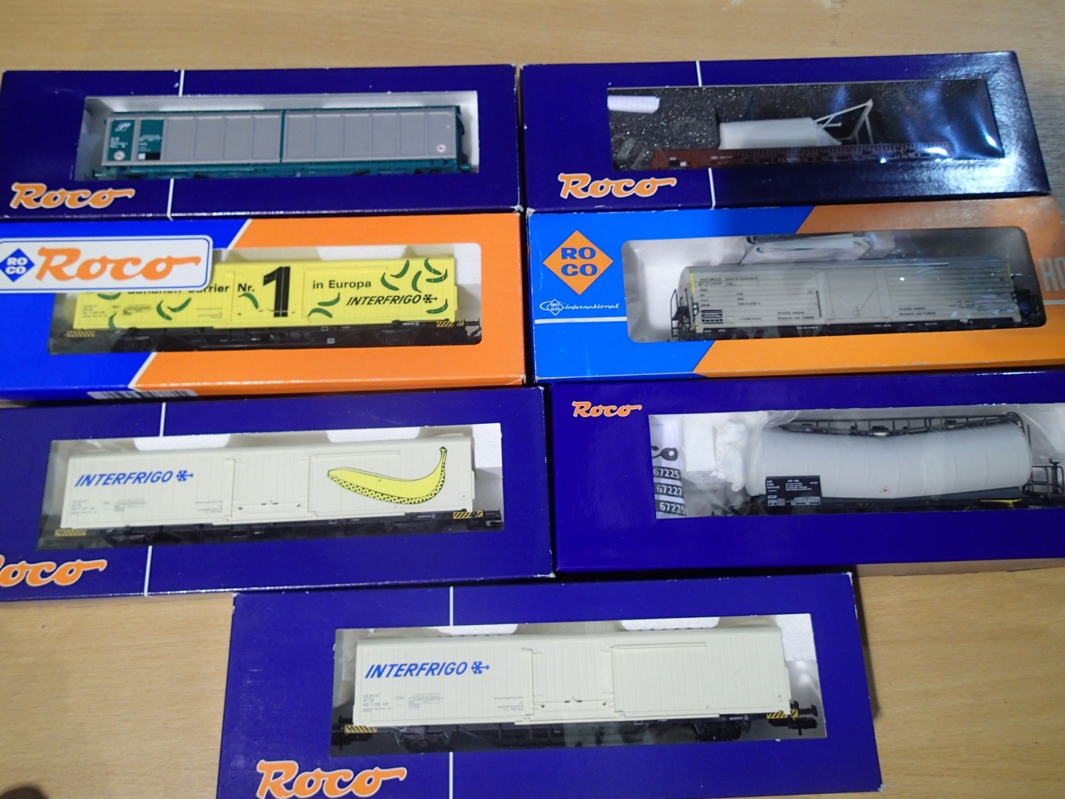 HO scale Roco seven assorted wagons, mostly excellent condition, boxed. UK P&P Group 2 (£24+VAT for the first lot and £5+VAT for subsequent lots)
