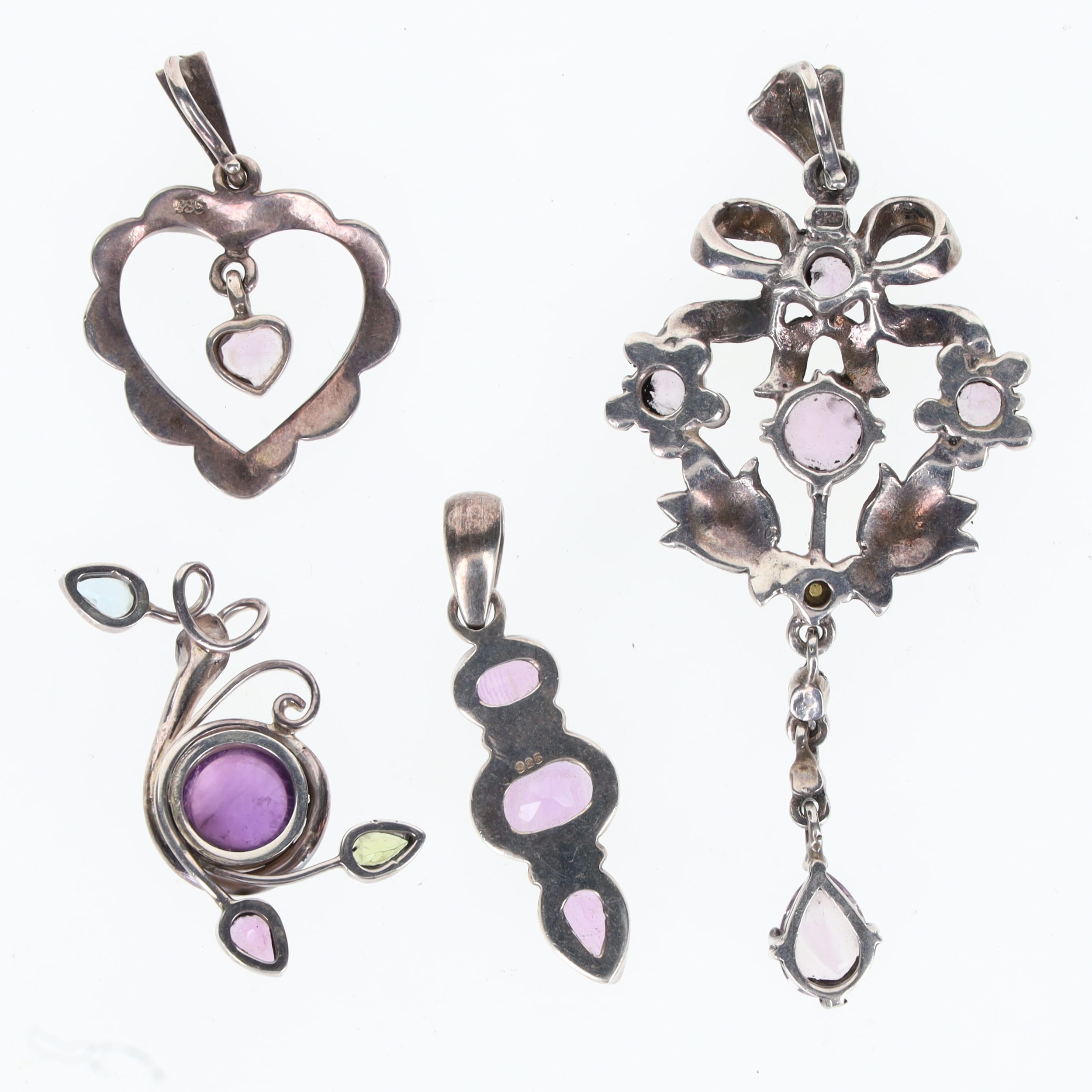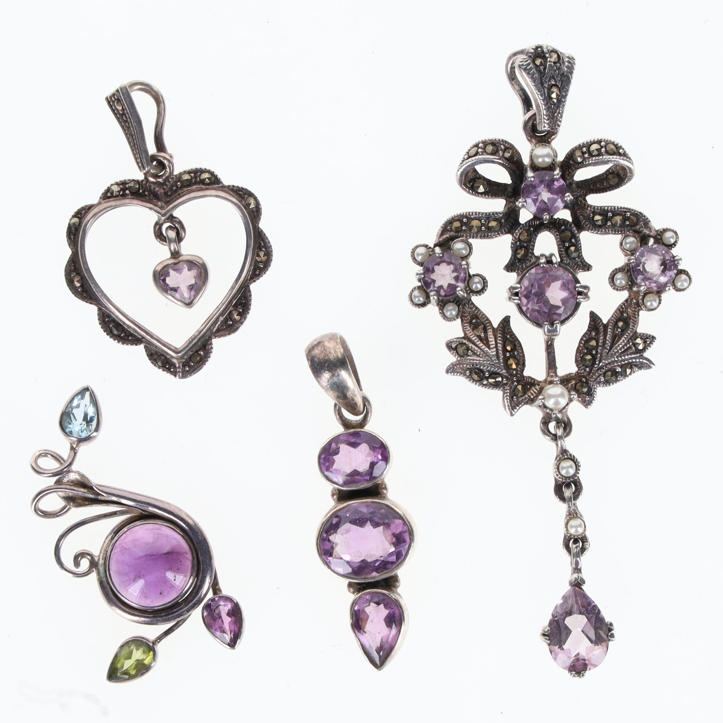 Silver Gemstone Pendant Collection incl. Amethyst, Topaz, Marcasite, 23g