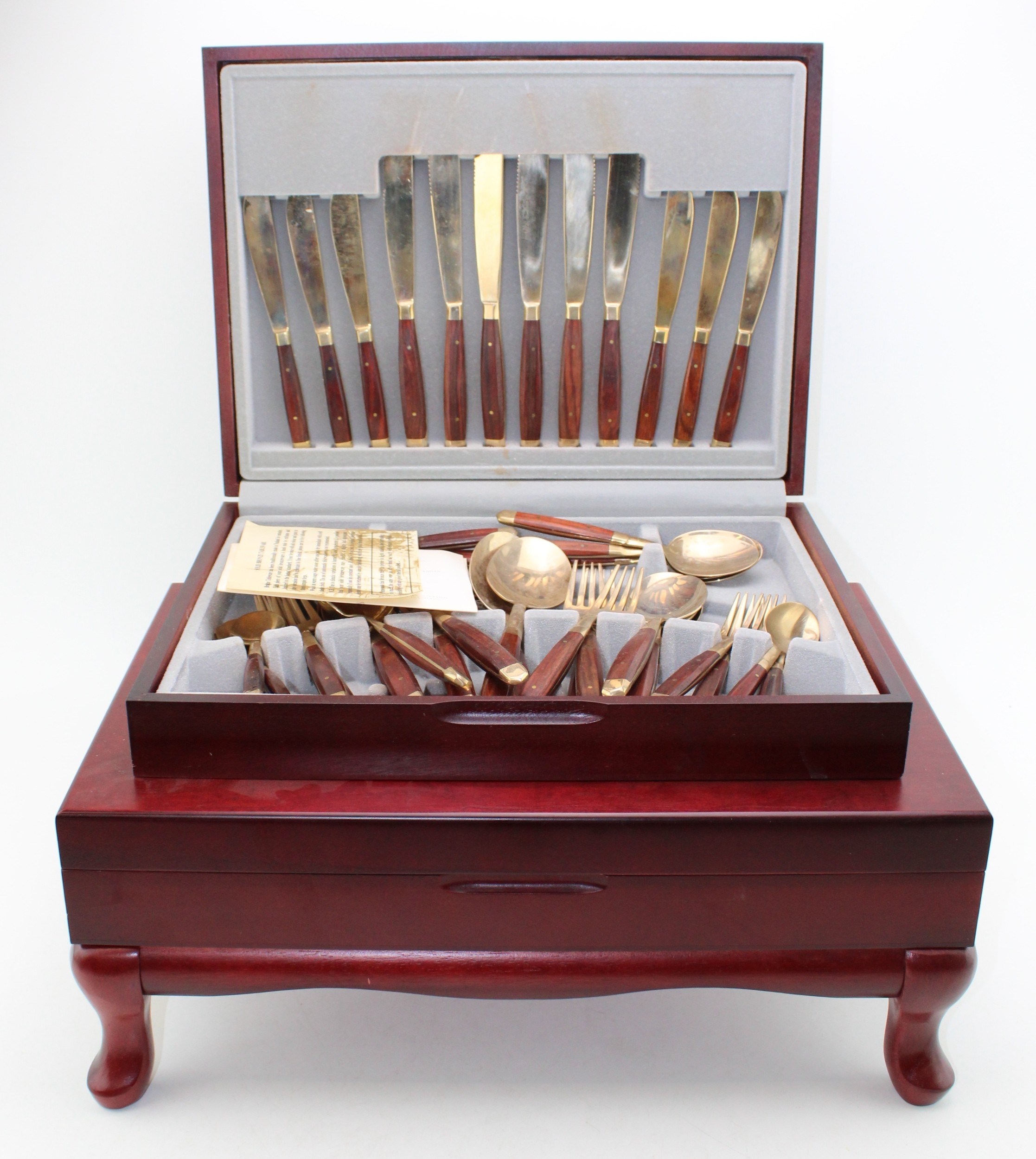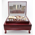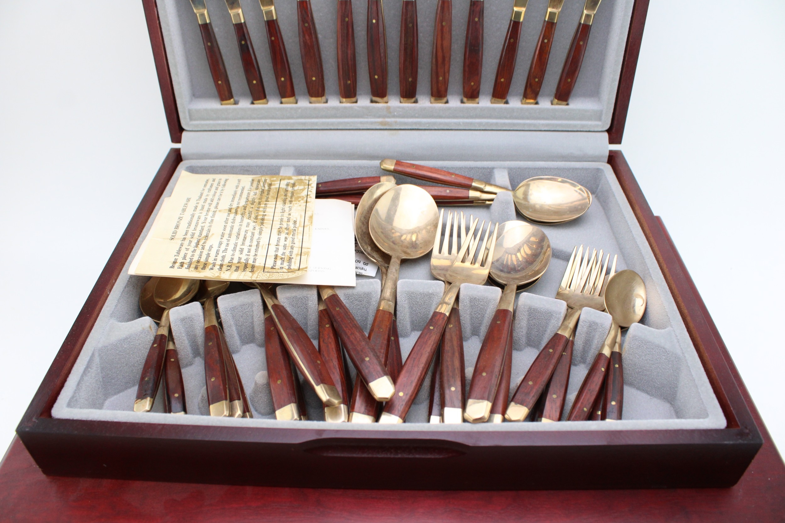 Viners 58 piece canteen, service for 8 persons, silver plated, made in Sheffield, in original case on together with a similar example of cased solid bronze tableware, (2).