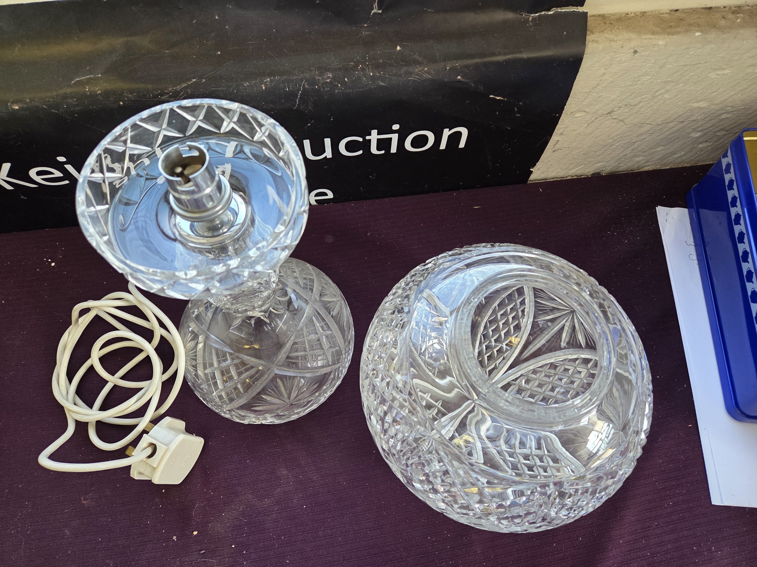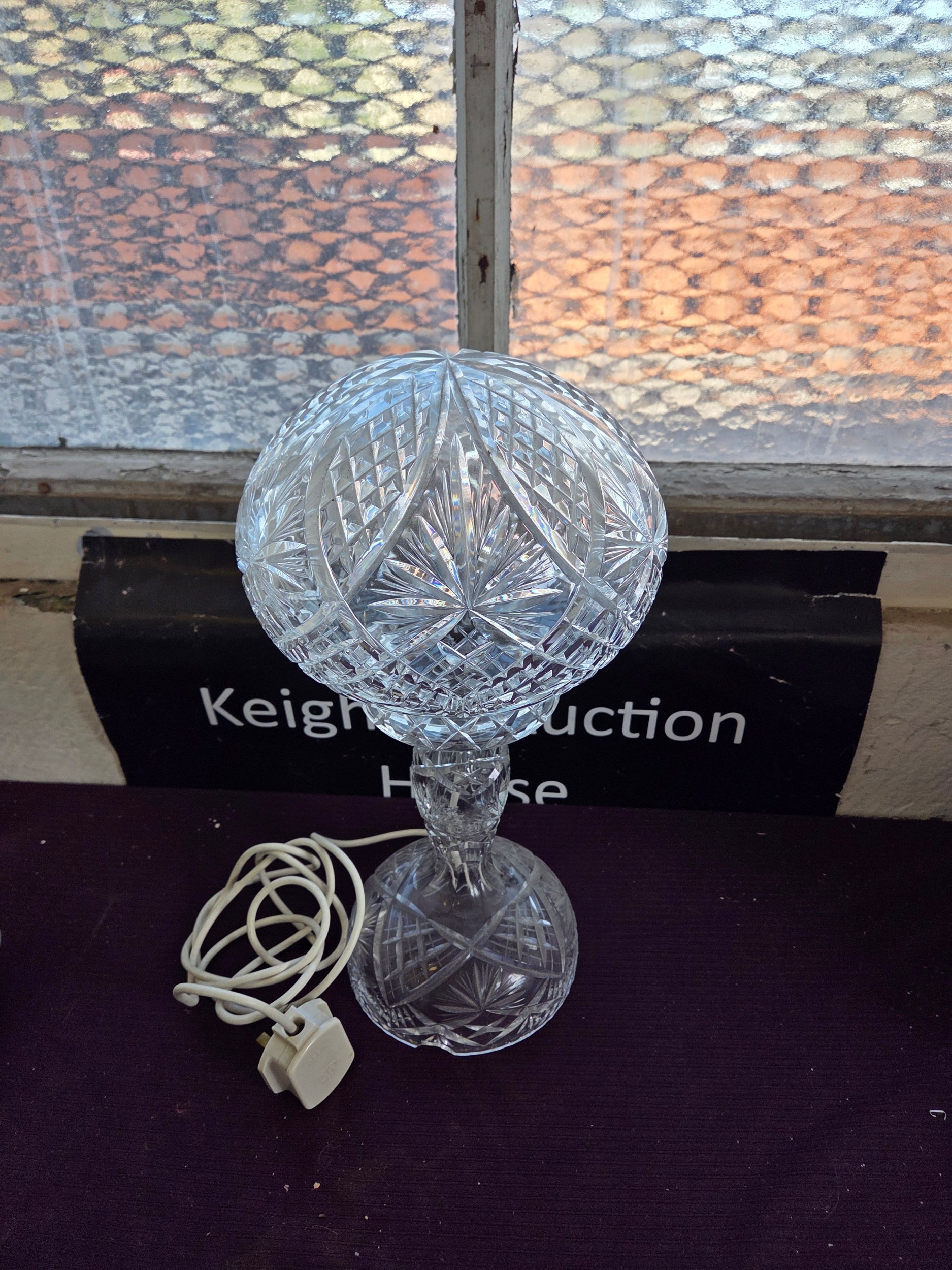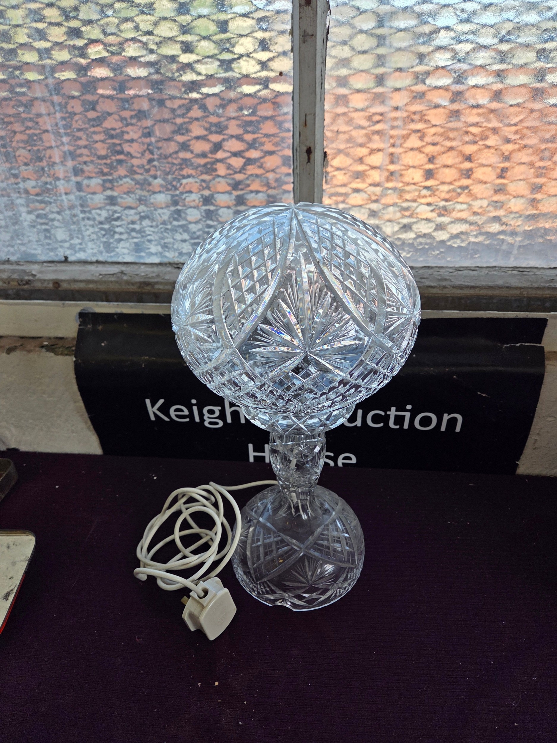 A vintage cut-crystal mushroom table lamp