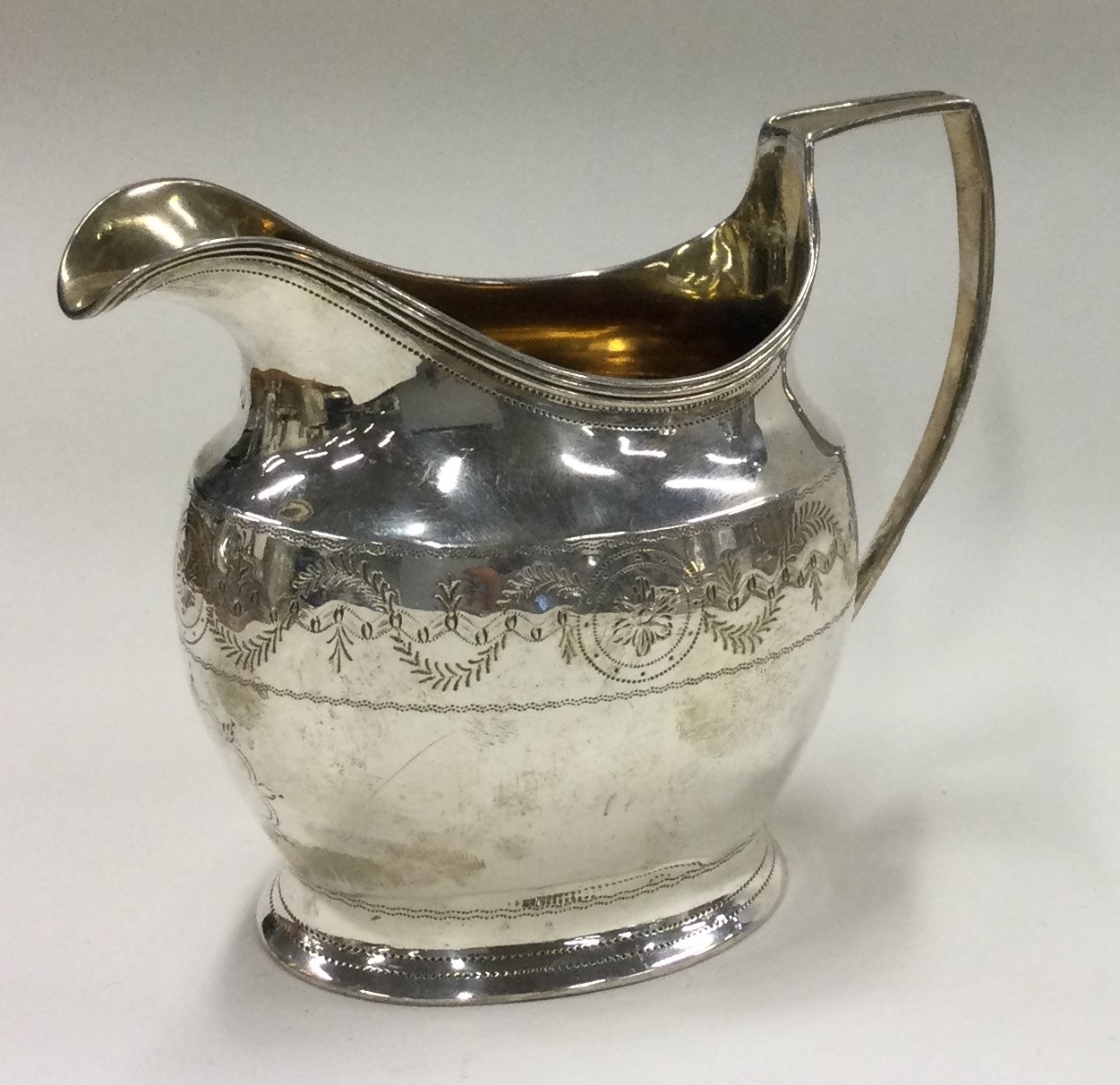 A Georgian bright-cut silver jug. London 1809. Approx. 114 grams. Est. £80 - £120.