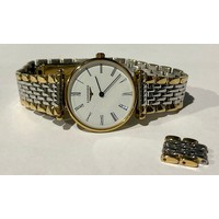 The watch is untested, has scratches to the watch crystal glass, there is some paint on the stretchable gold plated watch bracelet