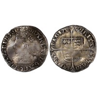 Mary (1553-1554) groat. mm. pomegranate. Tiny flan splits at edge, the portrait extremely pleasing. nVF. [2.11g, N.1960, S.2492]