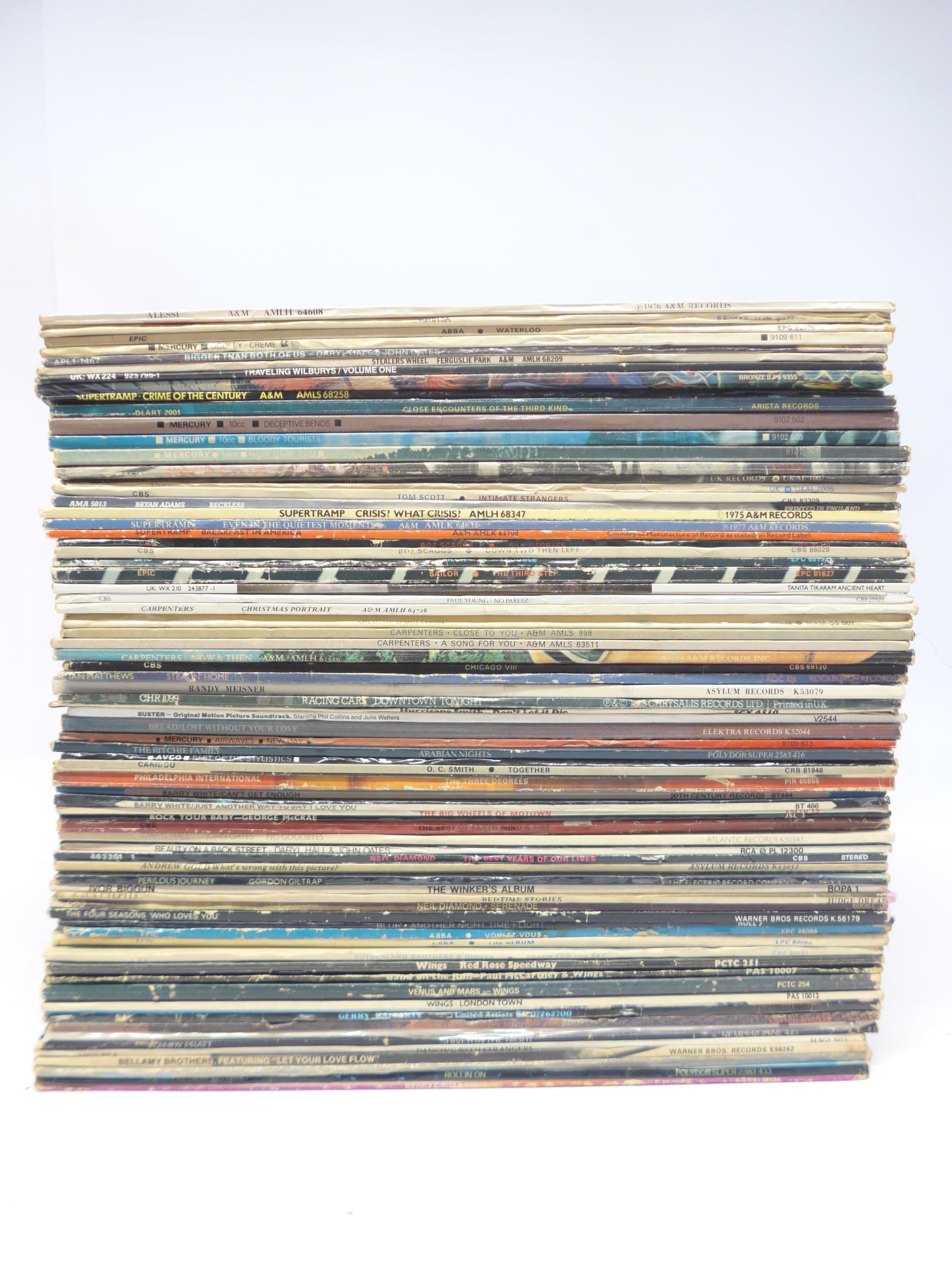 A collection of approximately seventy-five Rock and Pop LPs including Daryl Hall & John Oates, Godley & Creme, Stealers Wheel, Osibisa, Earth wind & Fire, Racing Cars, Supertramp, Boz Scaggs, Sailor, The Travelling Wilburys, Paul Young, The Carpenters, Chicago, 10CC, Bryan Adams, Wings, Gerry Rafferty, The Steve Gibbons Band, Neil Diamond, Andrew Gold, Judge Dread, Abba, Bread, The Ritchie Family, The Stylistics, Barry White, George McRae, Ian Matthews, Randy Meisner, Chris Rea, etc. (approx. 75, vinyl and sleeves generally VG-VG+)