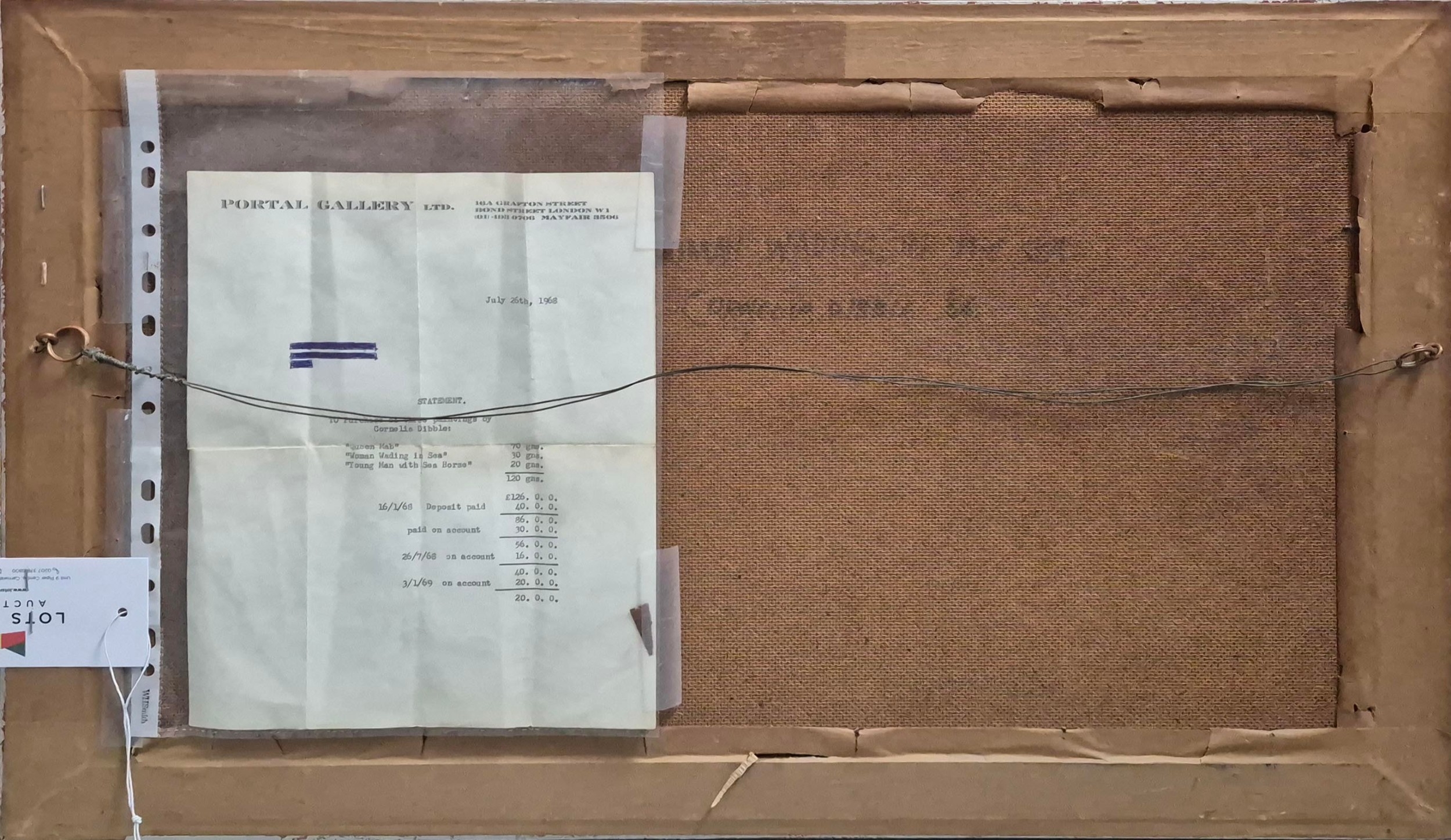 CORNELIA DIBBLE. WOMAN WADING IN SEA. watercolour on board, signed and dated '66 to lower right, Provenance: Portal Gallery, 39cm x 63cm, framed.