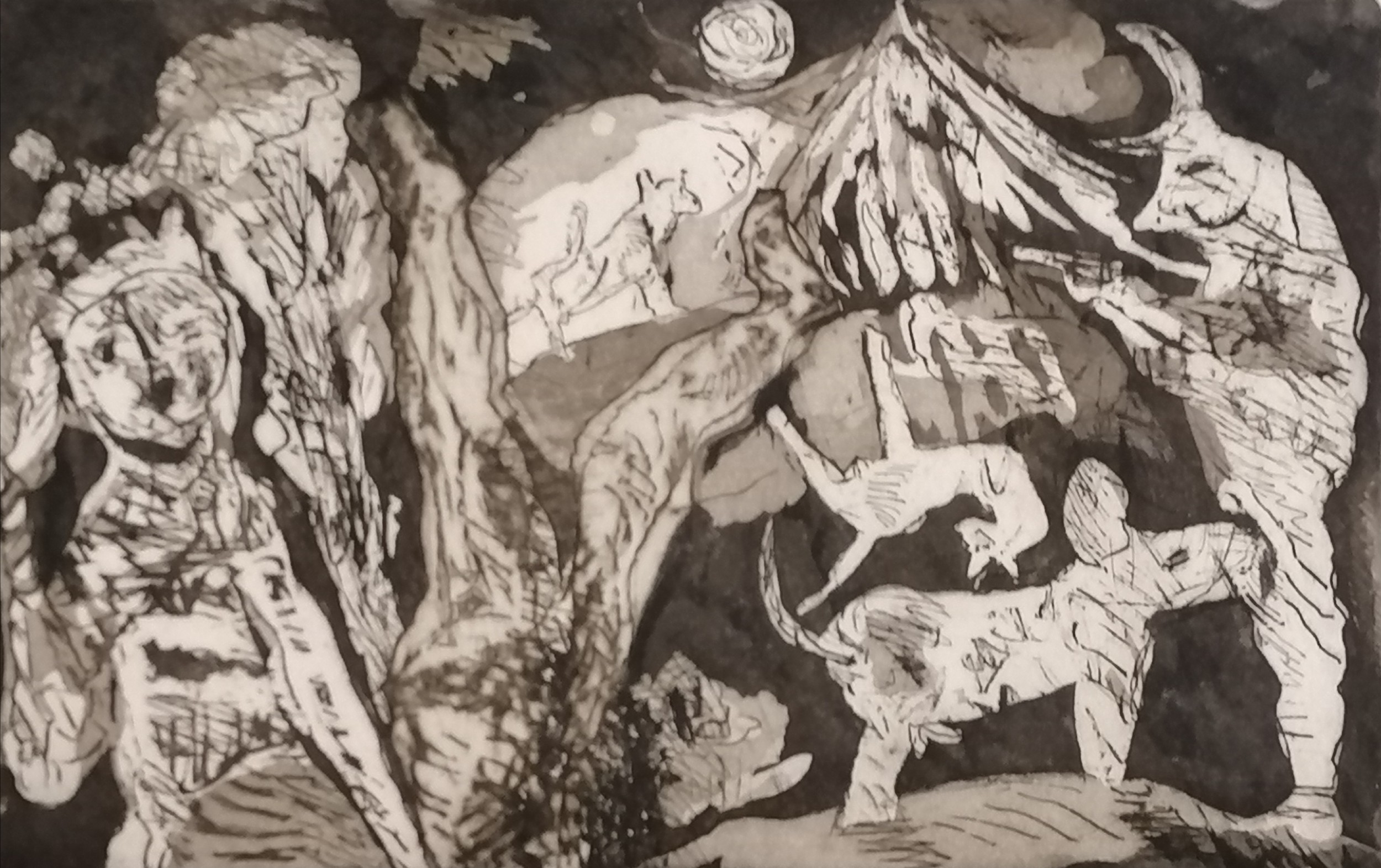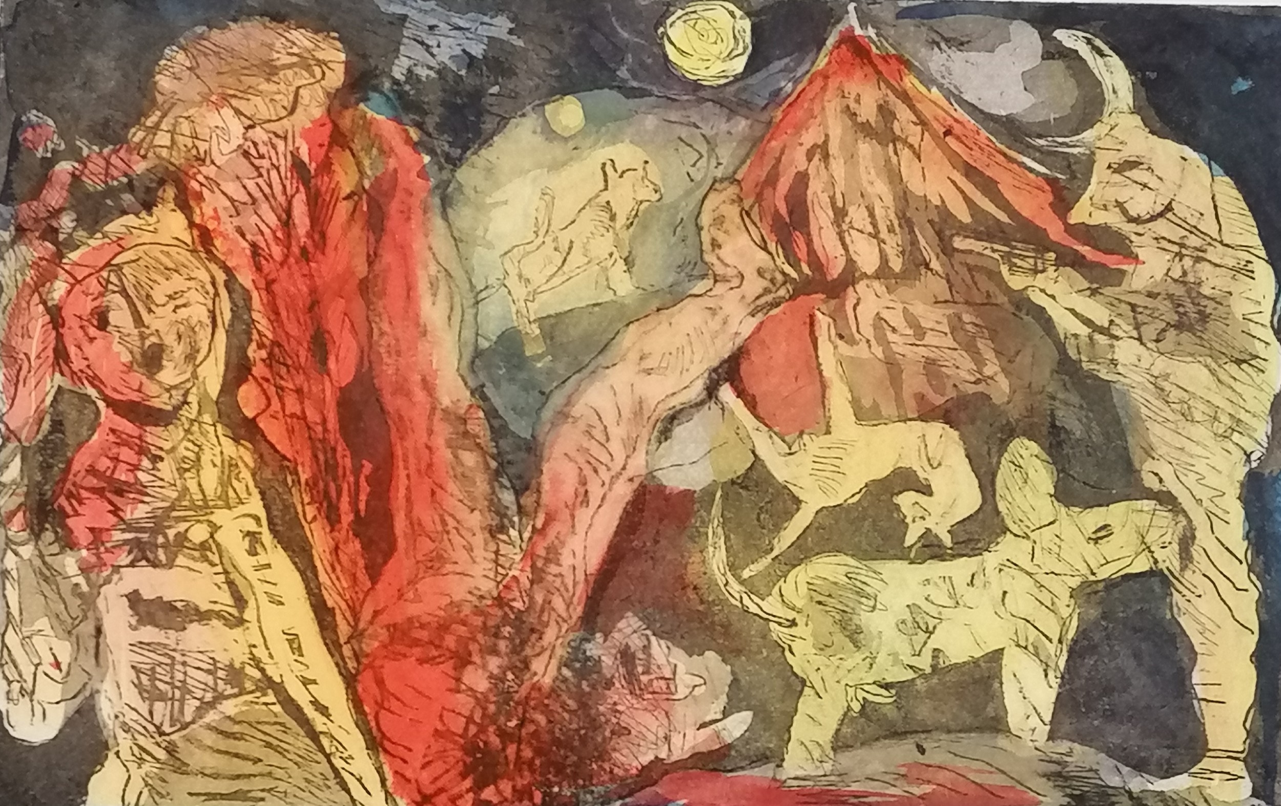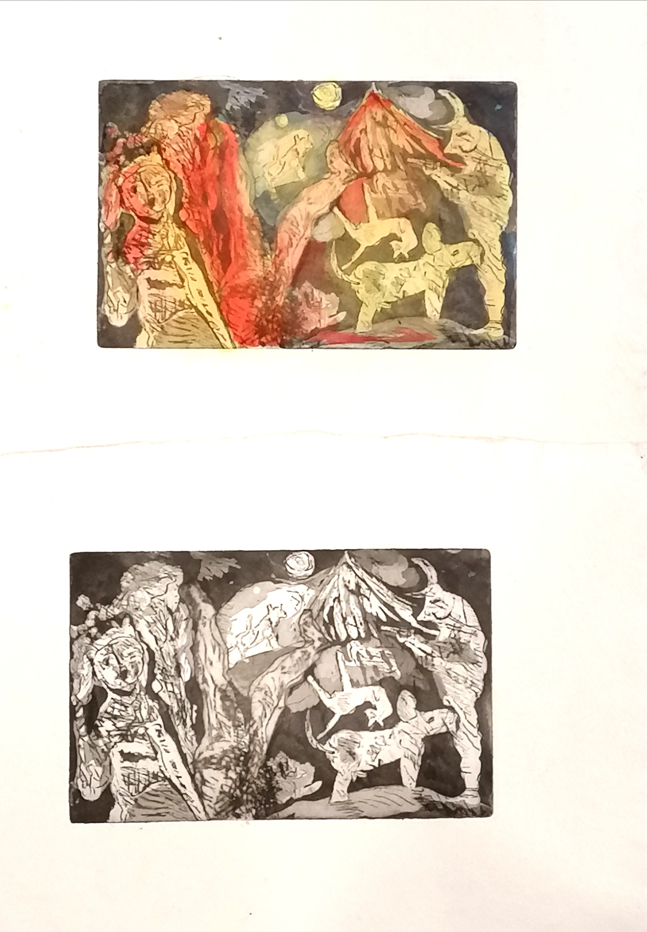 2 x abstract etchings (1 coloured) - 39cm x 28.5cm