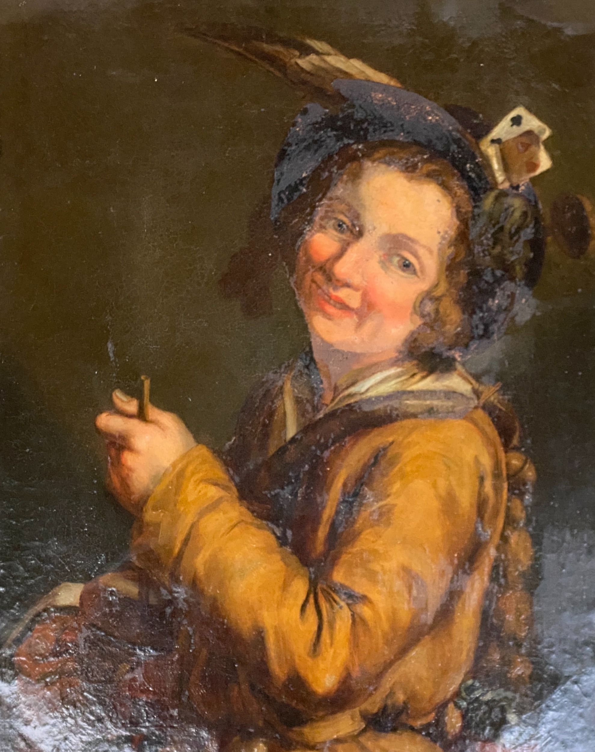 After Abraham Bloemaert (Dutch, 1566-1651), 'Drummer Boy', 19th century oil on canvas, 59x47cm