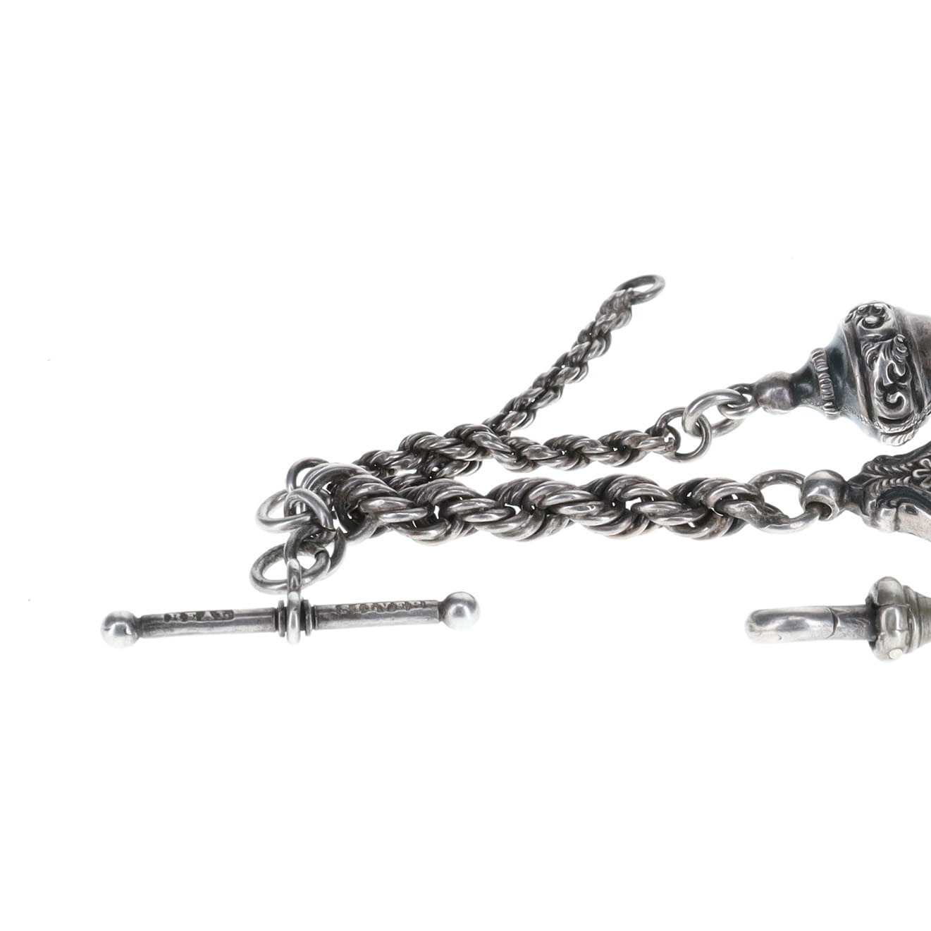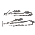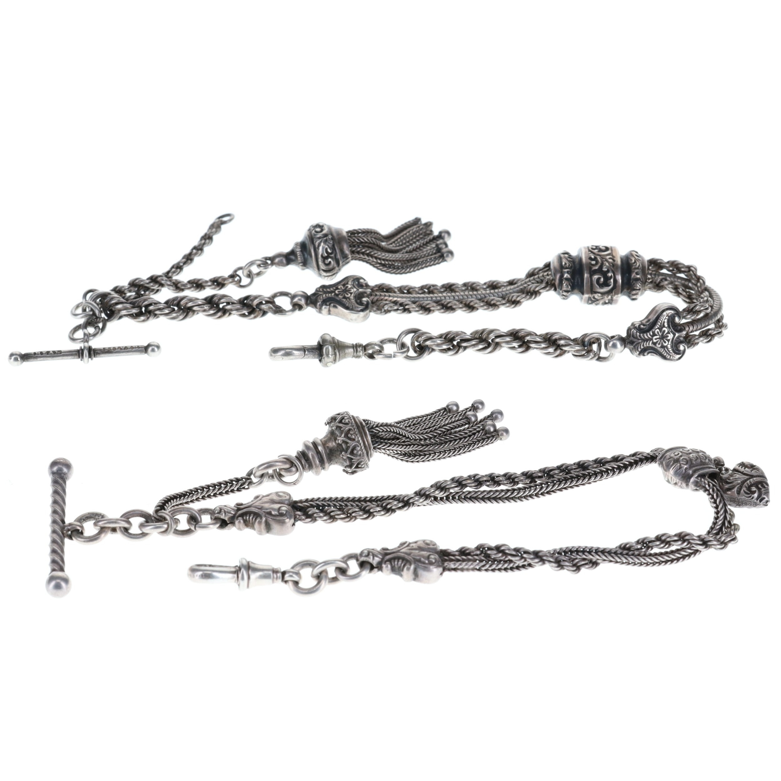 Collection of Victorian mixed grade silver Albertina bracelet conversions. One measures approximately 21cm wearable length and the other 20cm. each has been tested to various grades of silver. Weighs in total 40g.