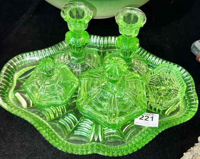 Vintage Green Glass Vanity Set