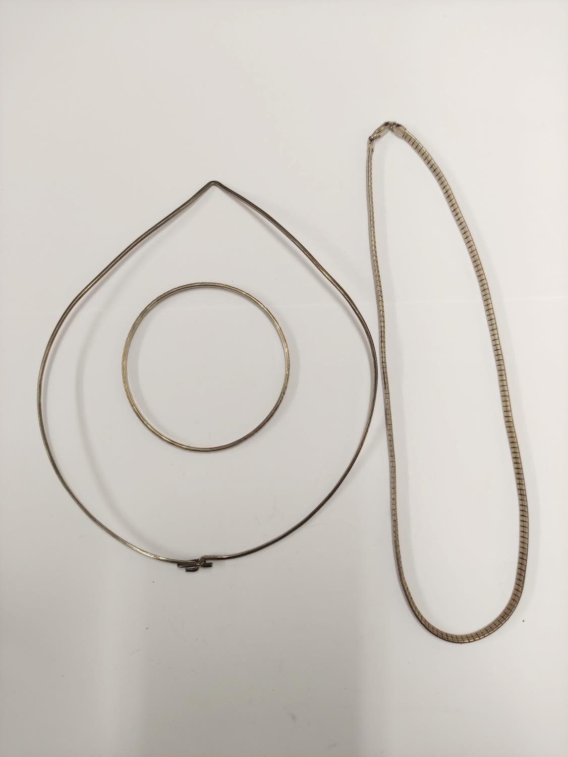 Group of 925 silver to include a Mexican neck chain, French Art Deco-style bangle and a necklace, 38g gross.