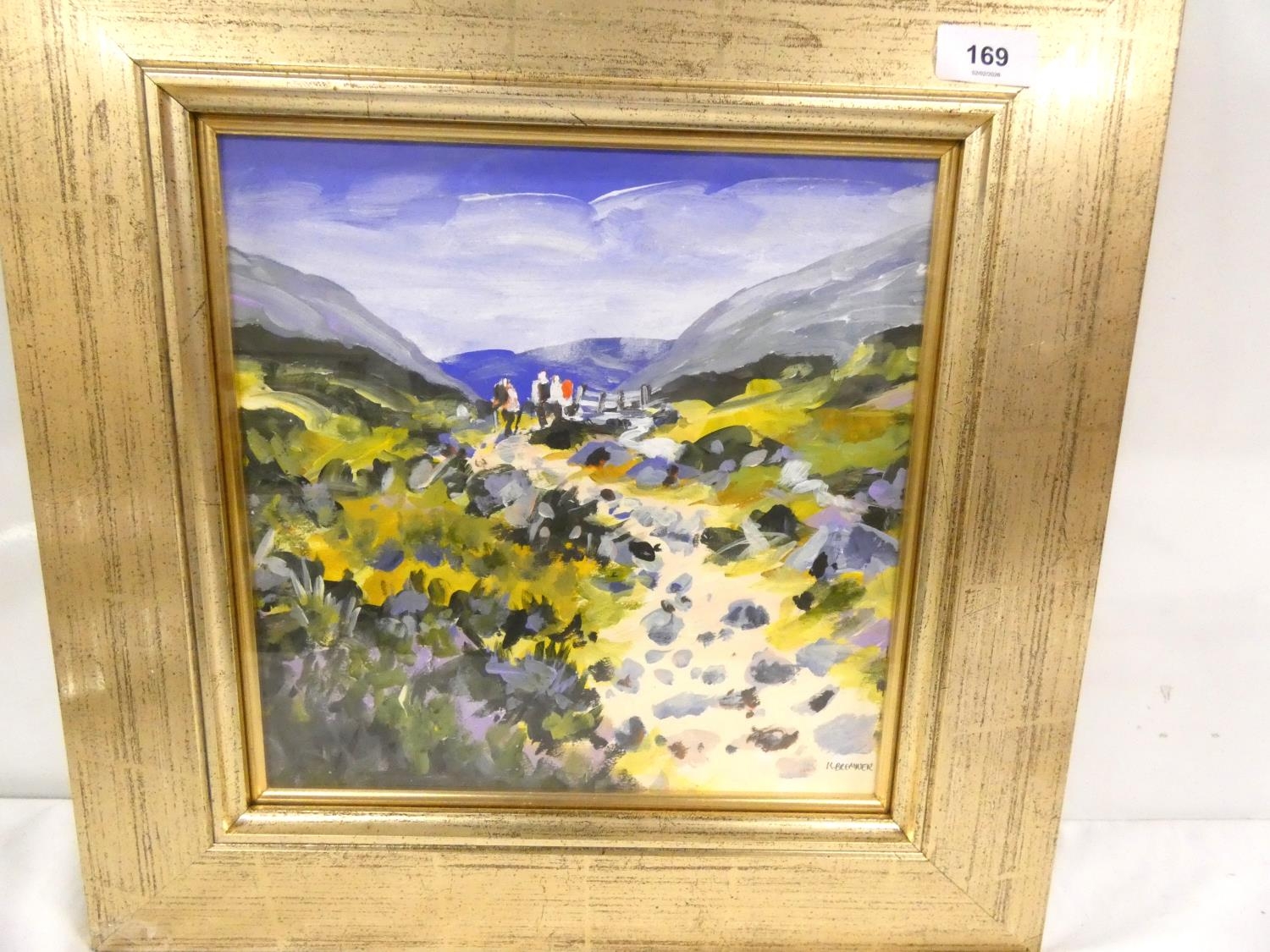 Kathleen Bremner 'Walkers at the Glass Alt'.Signed, arcylic, 28cm x 28cm