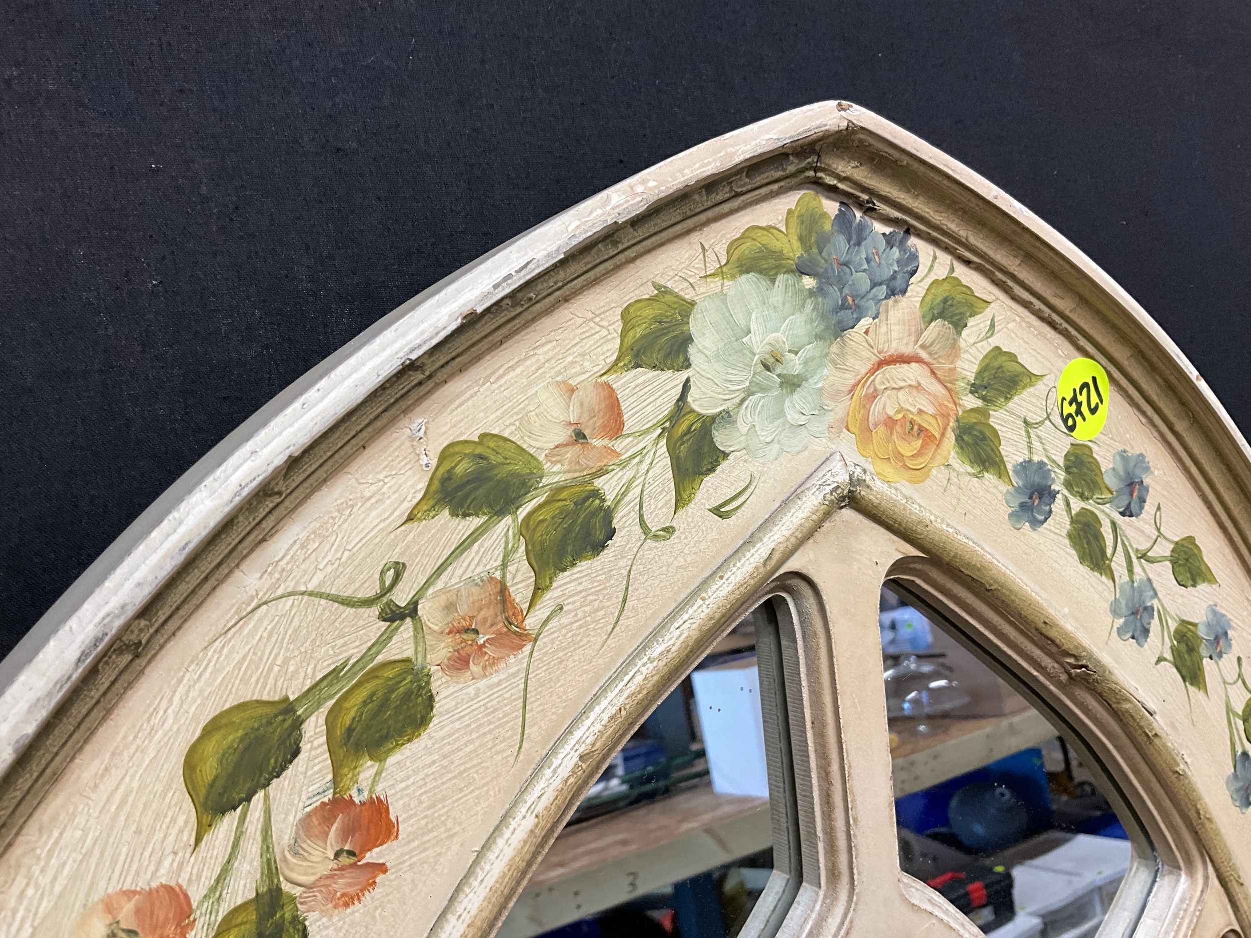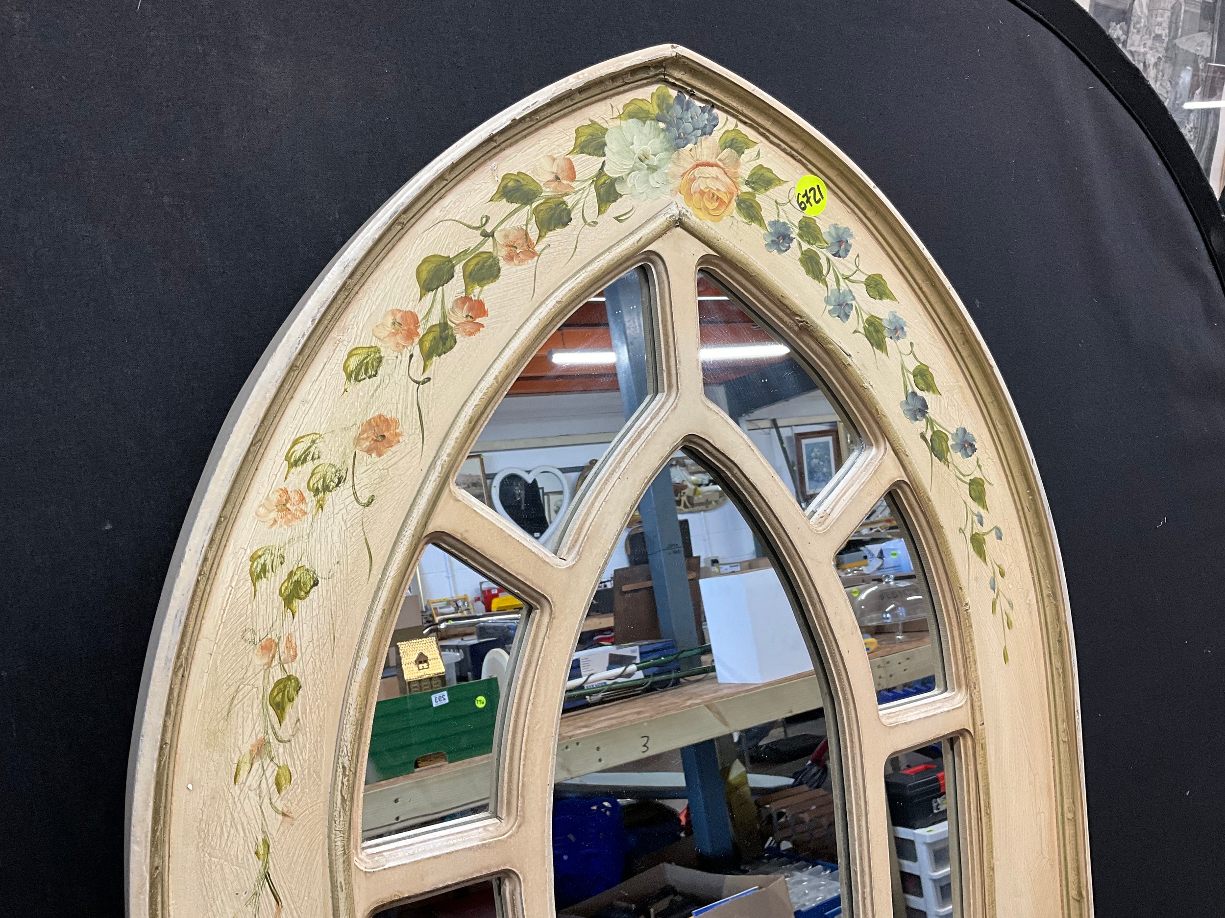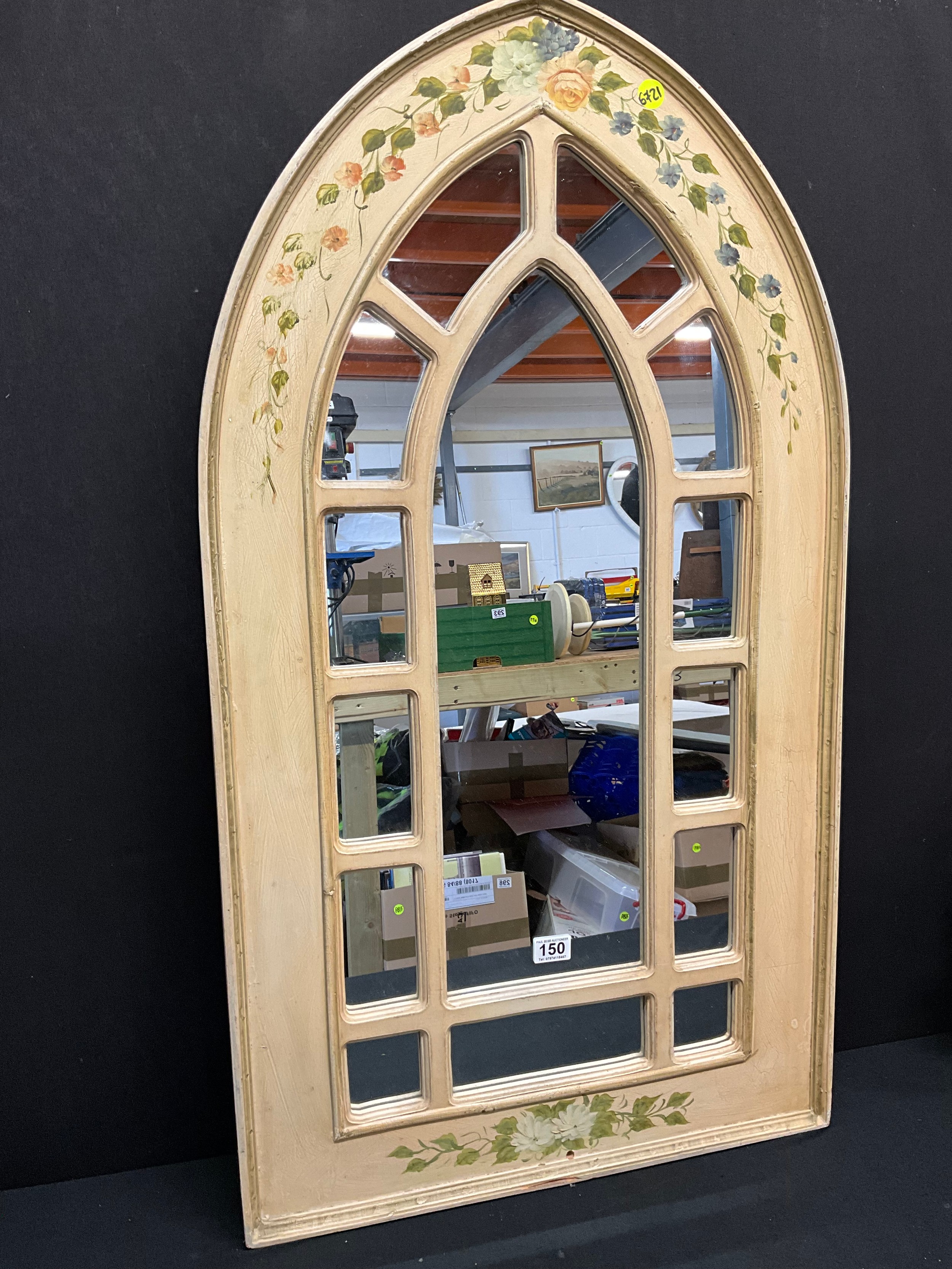 LARGE MODERN FLORAL PAINTED GOTHIC STYLE WALL MIRROR 42"X24"
