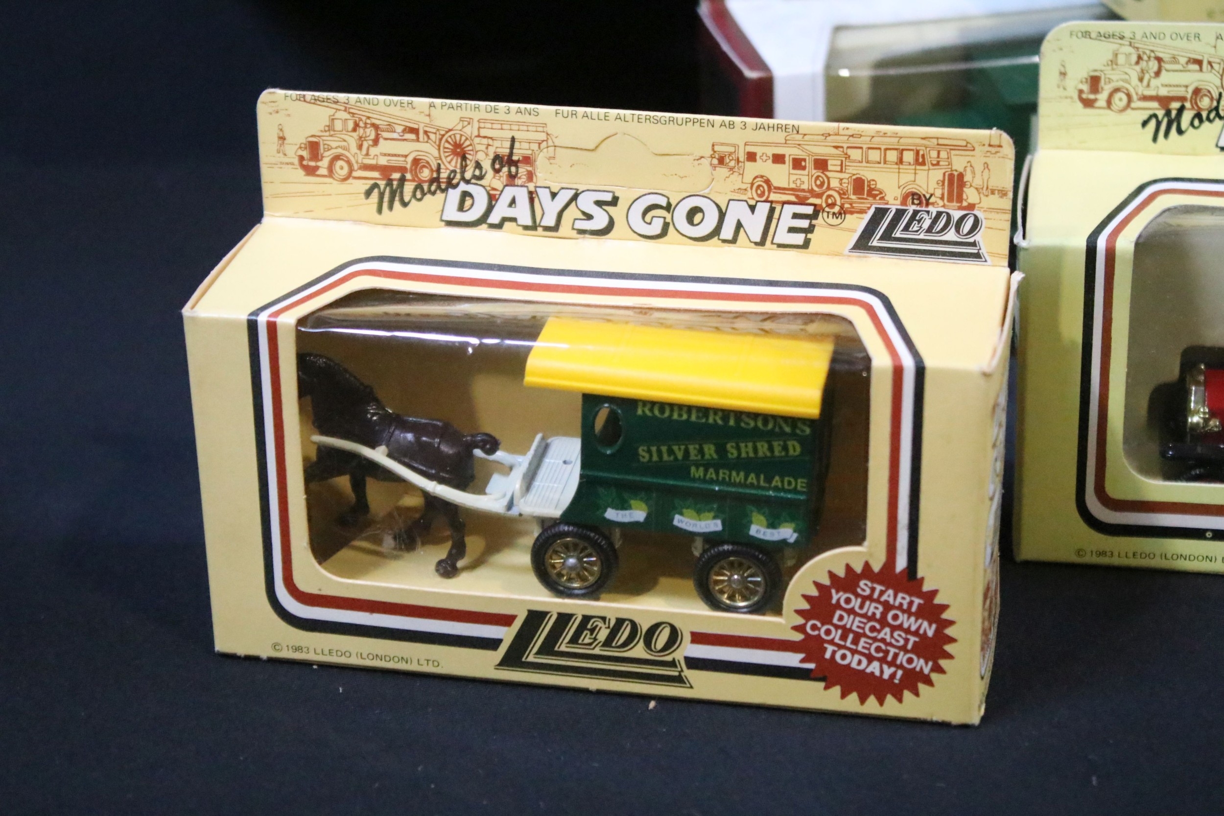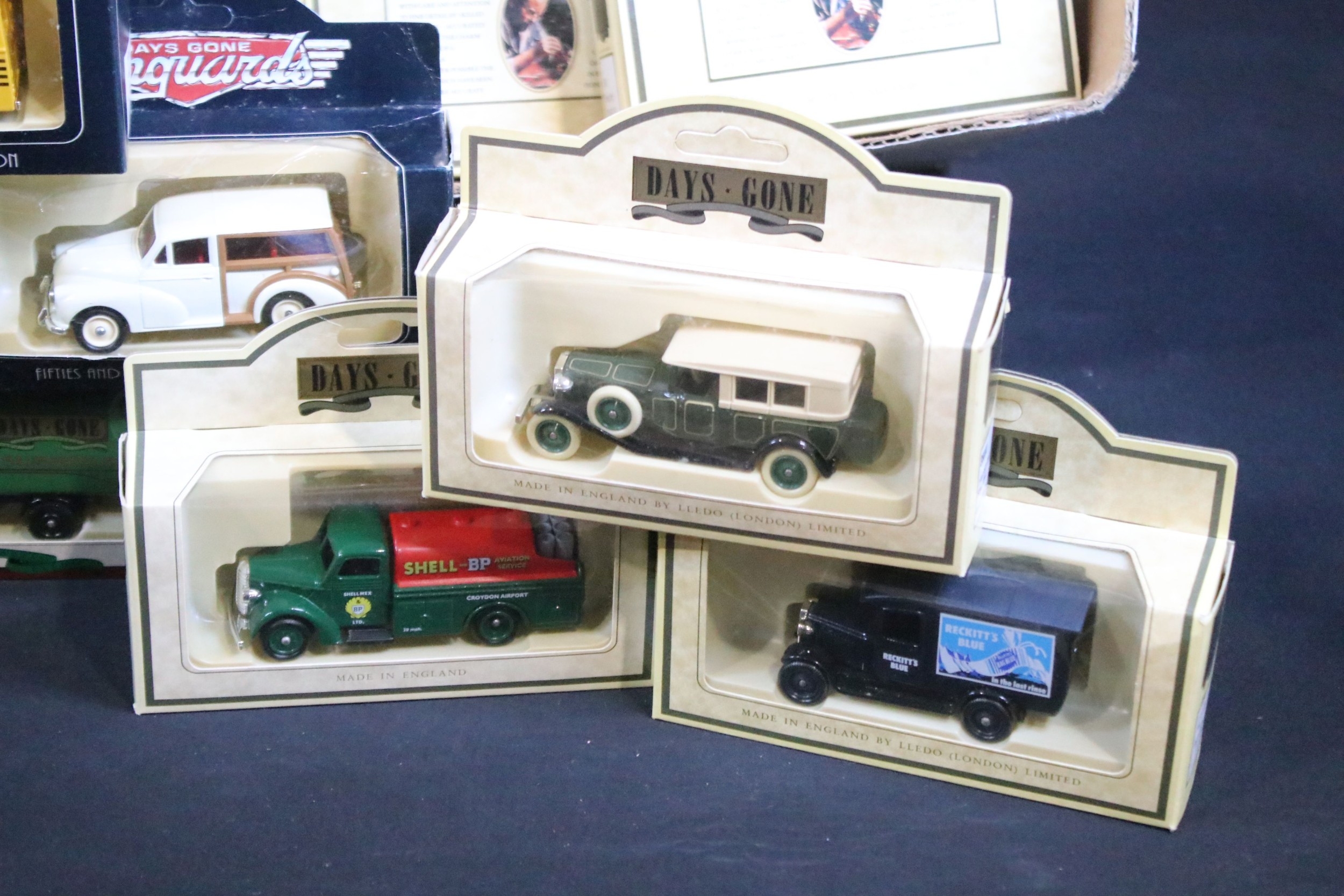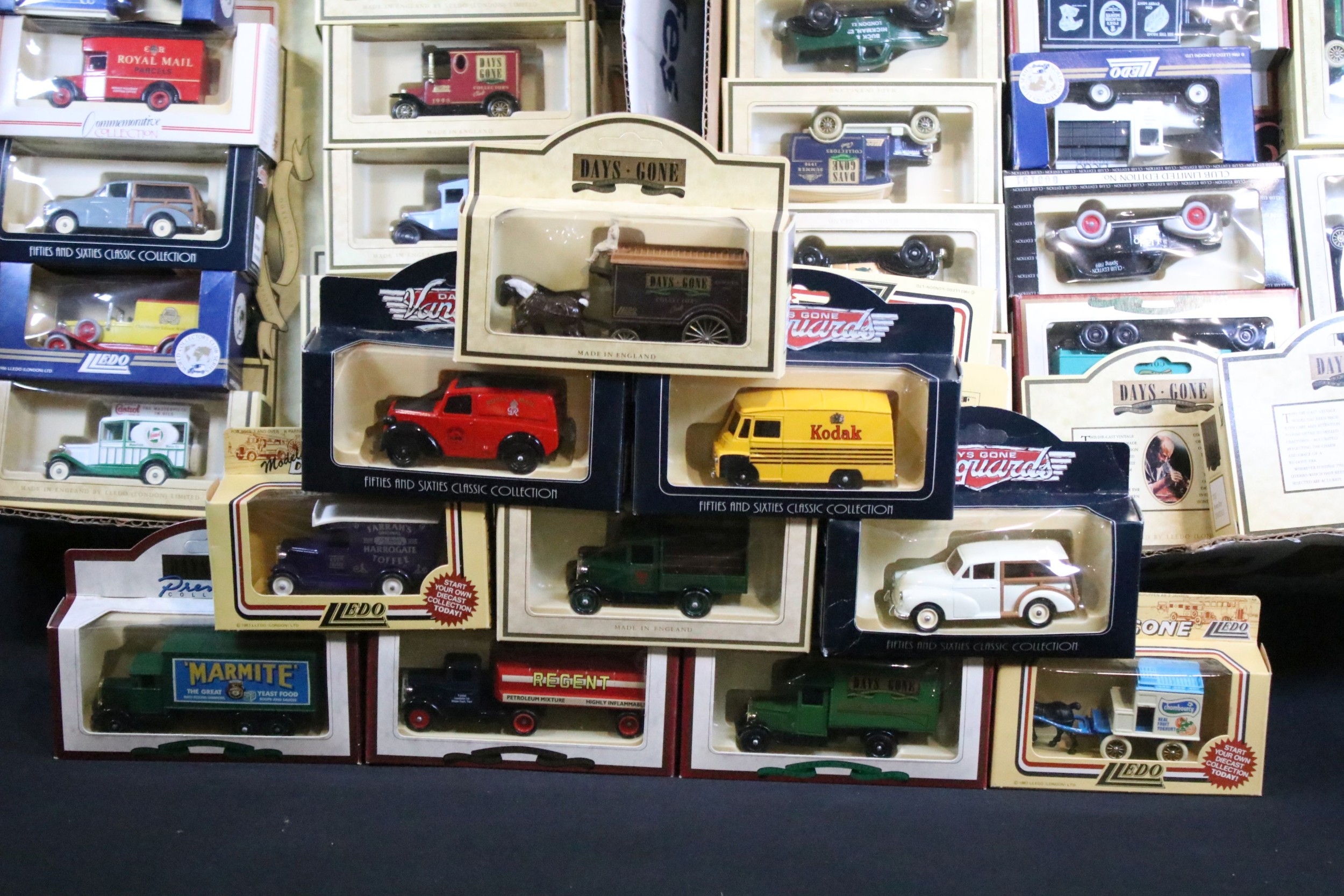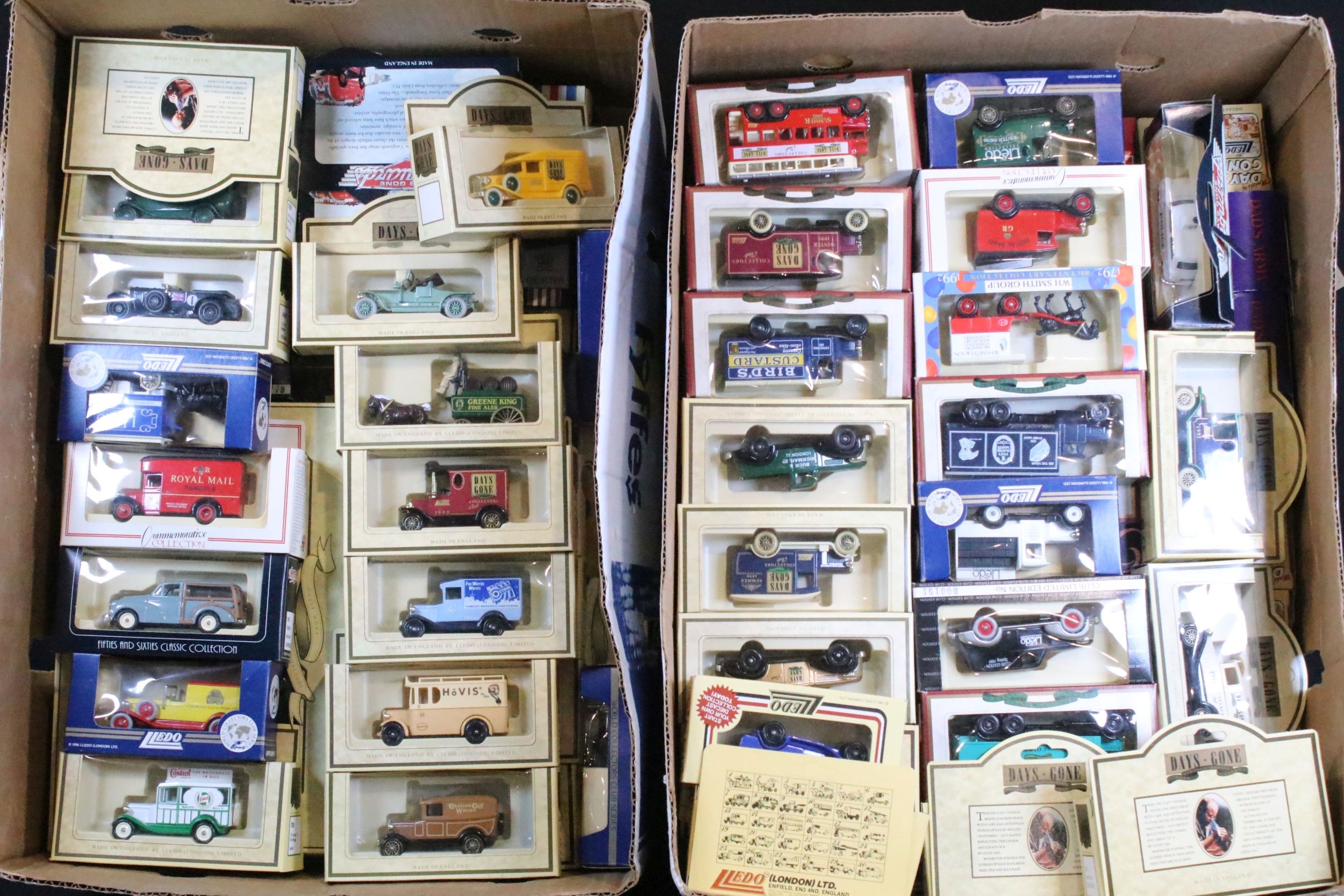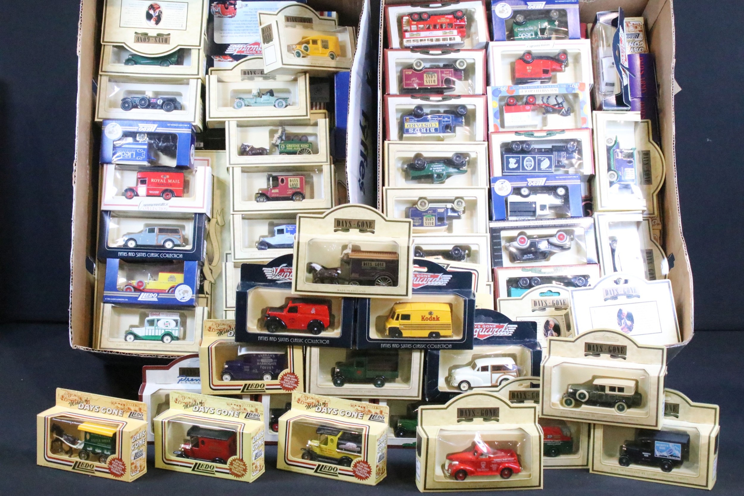Around 150 boxed Lledo diecast models to include Models Of Famous Stores Of London, Days Gone Vanguards, Royal Mail Commemorative Collection, etc, all diecast ex, boxes vg overall with some dustiness (2 Boxes)