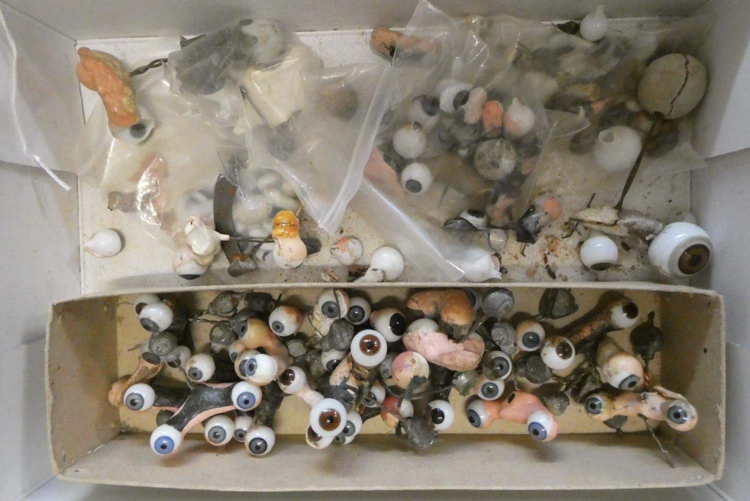Twenty five pairs of doll's eyes on rockers, and other assorted eyes