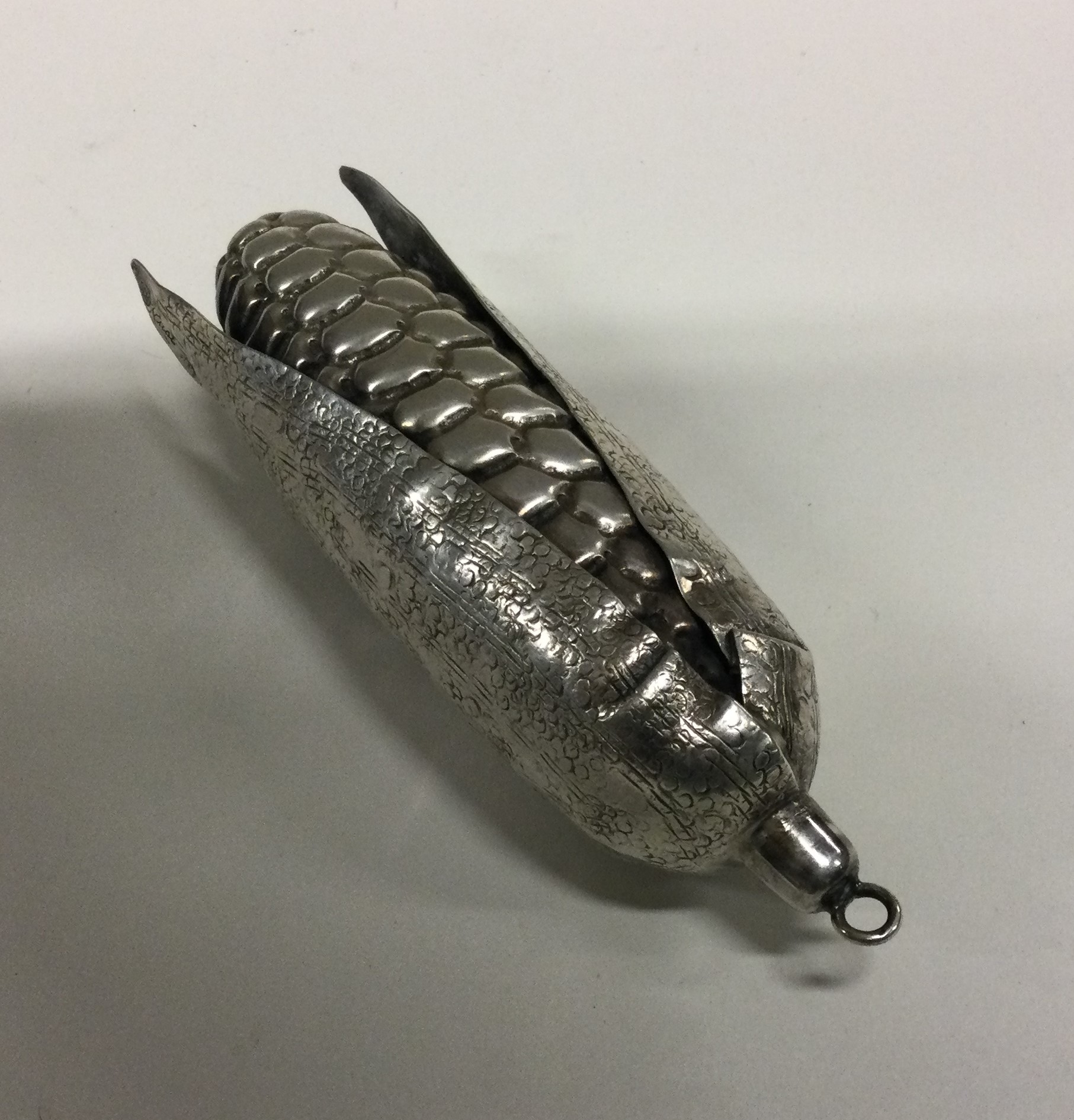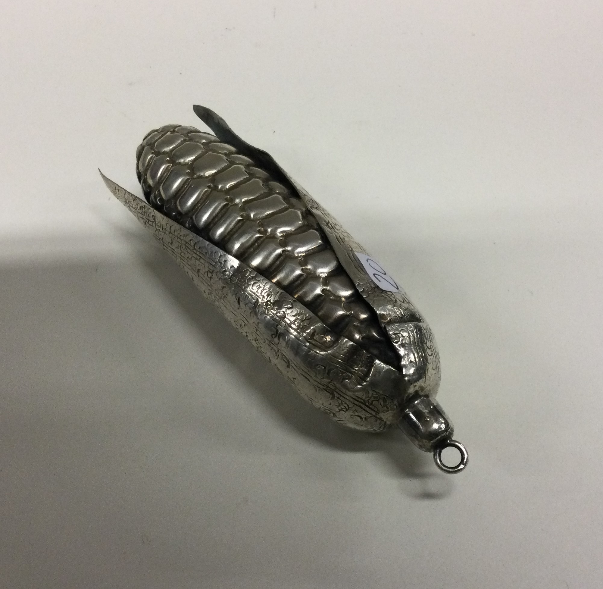 A heavy silver model of a corn on the cob. Approx. 68 grams. Est. £50 - £80.
