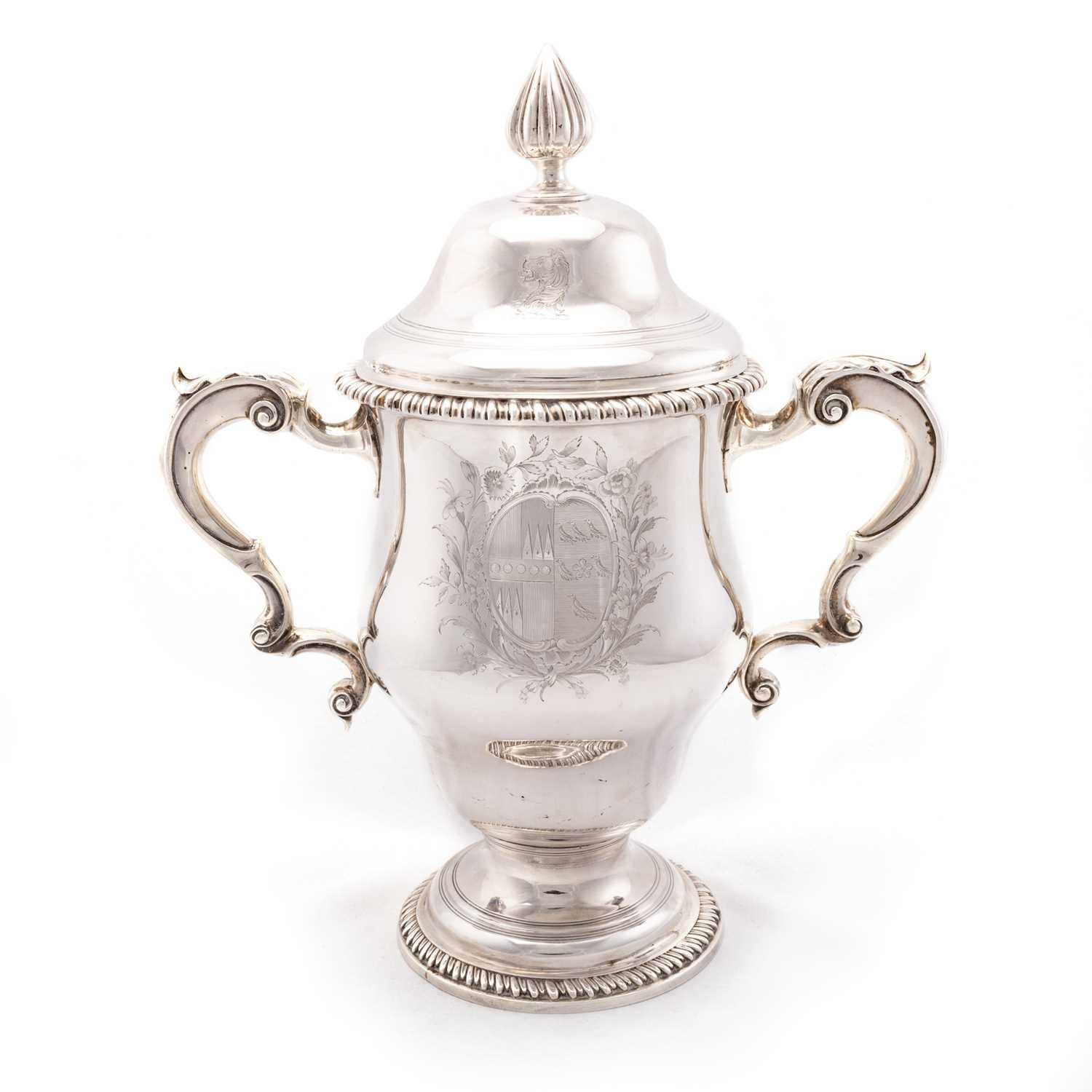 A GEORGE III SILVER TWO-HANDLED CUP AND COVER