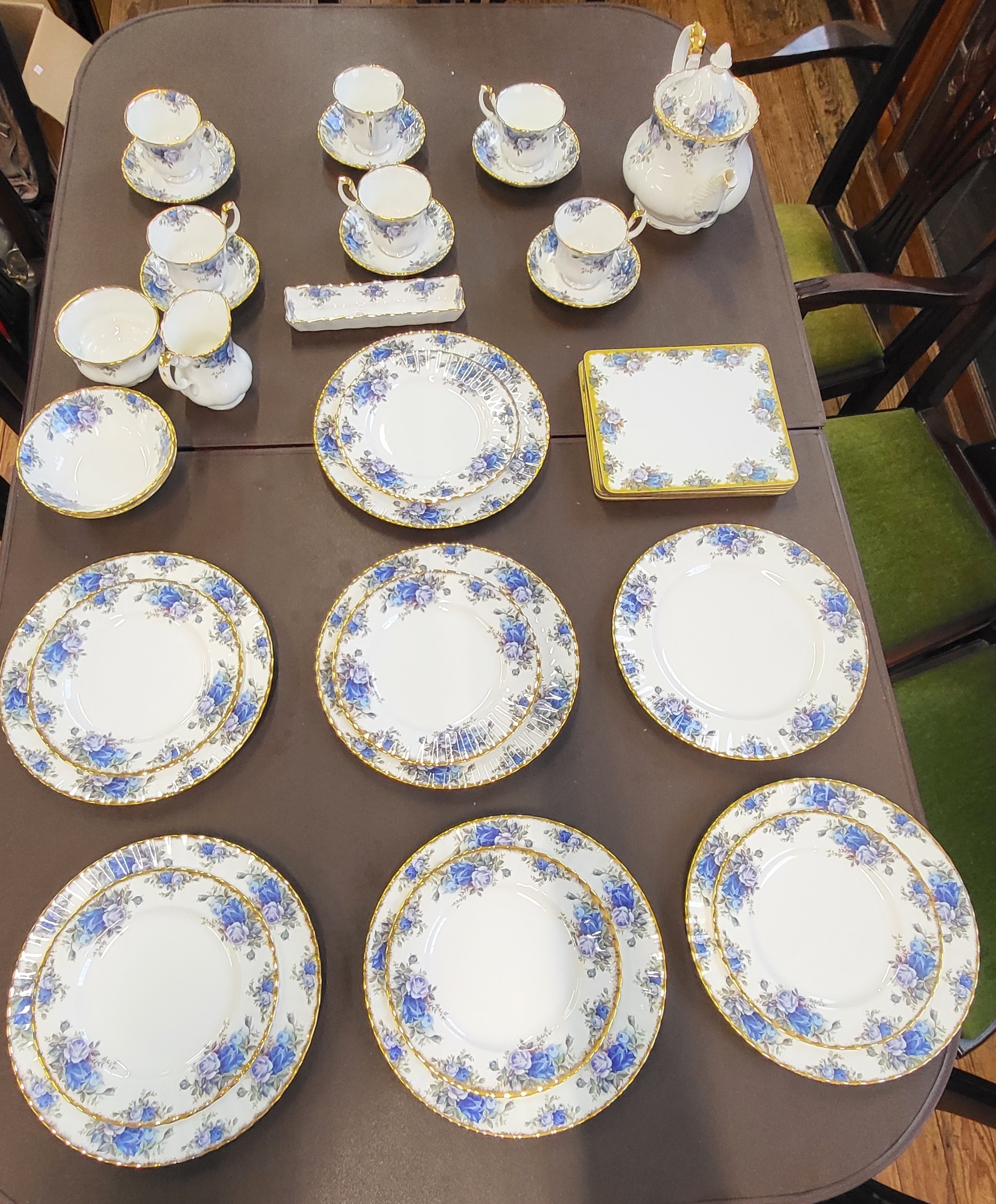 Royal Albert Moonlight Rose tea and dinner set and six placemats. (31)