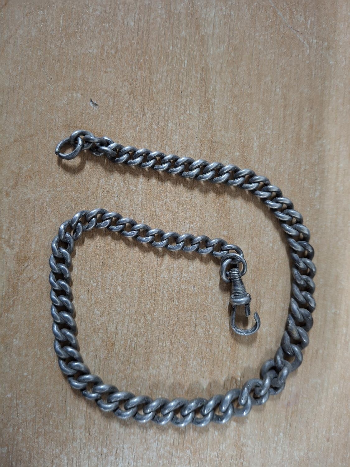 Victorian hallmarked Birmingham silver Albert chain - local metal detecting find,34 grams