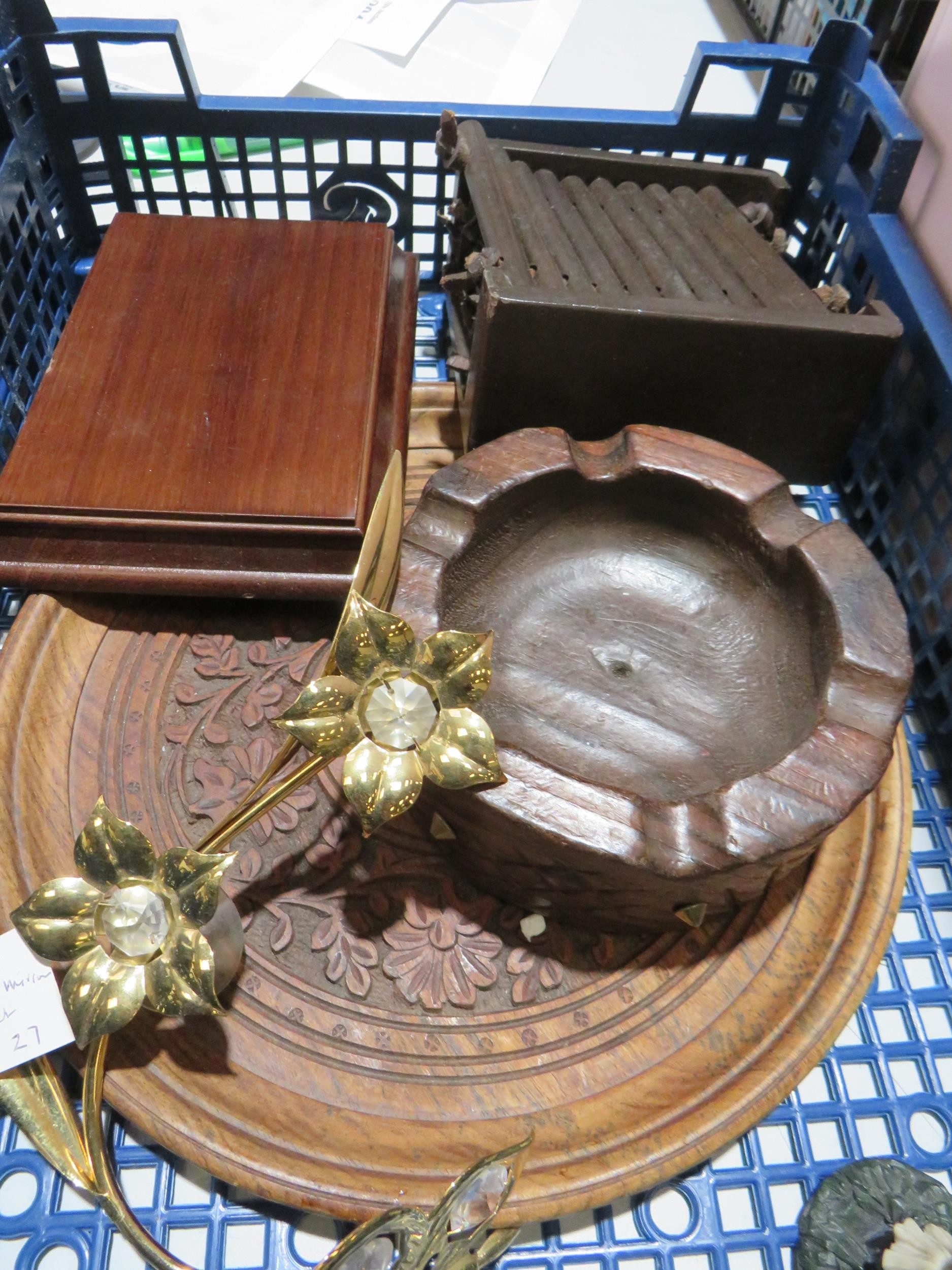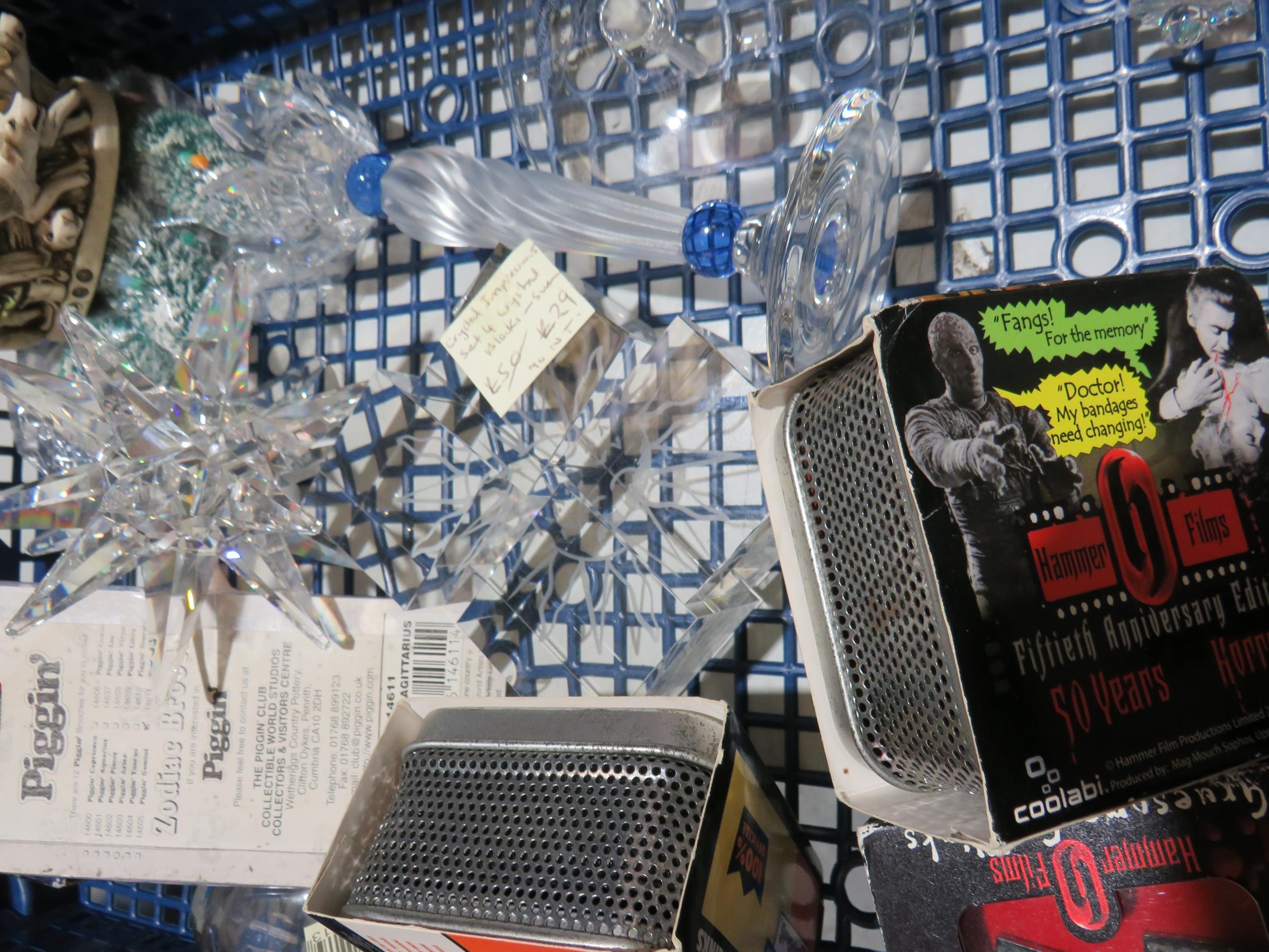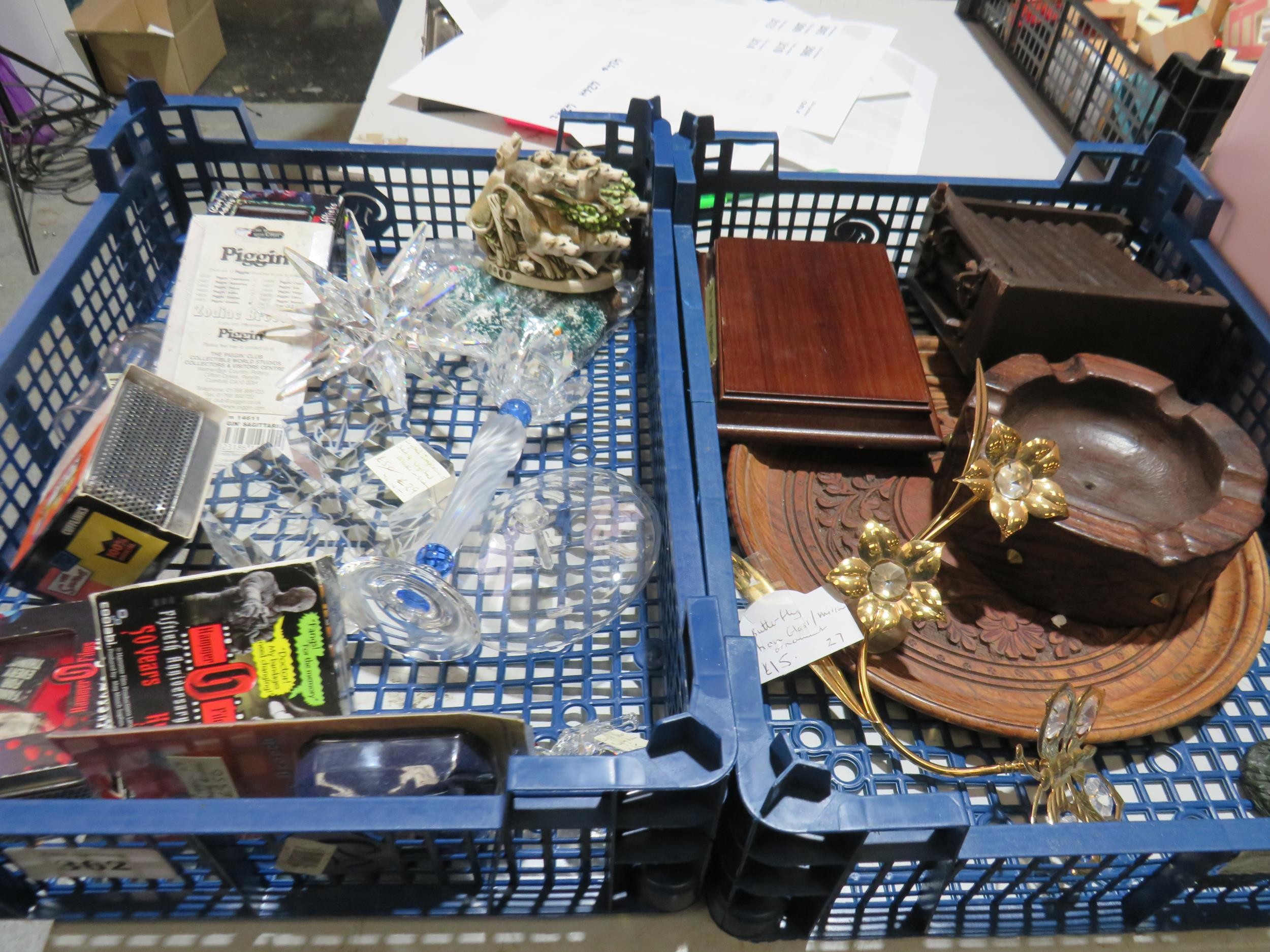 Two trays of mixed collectables to include crystal, tobacciana, Harmony Kingdom etc