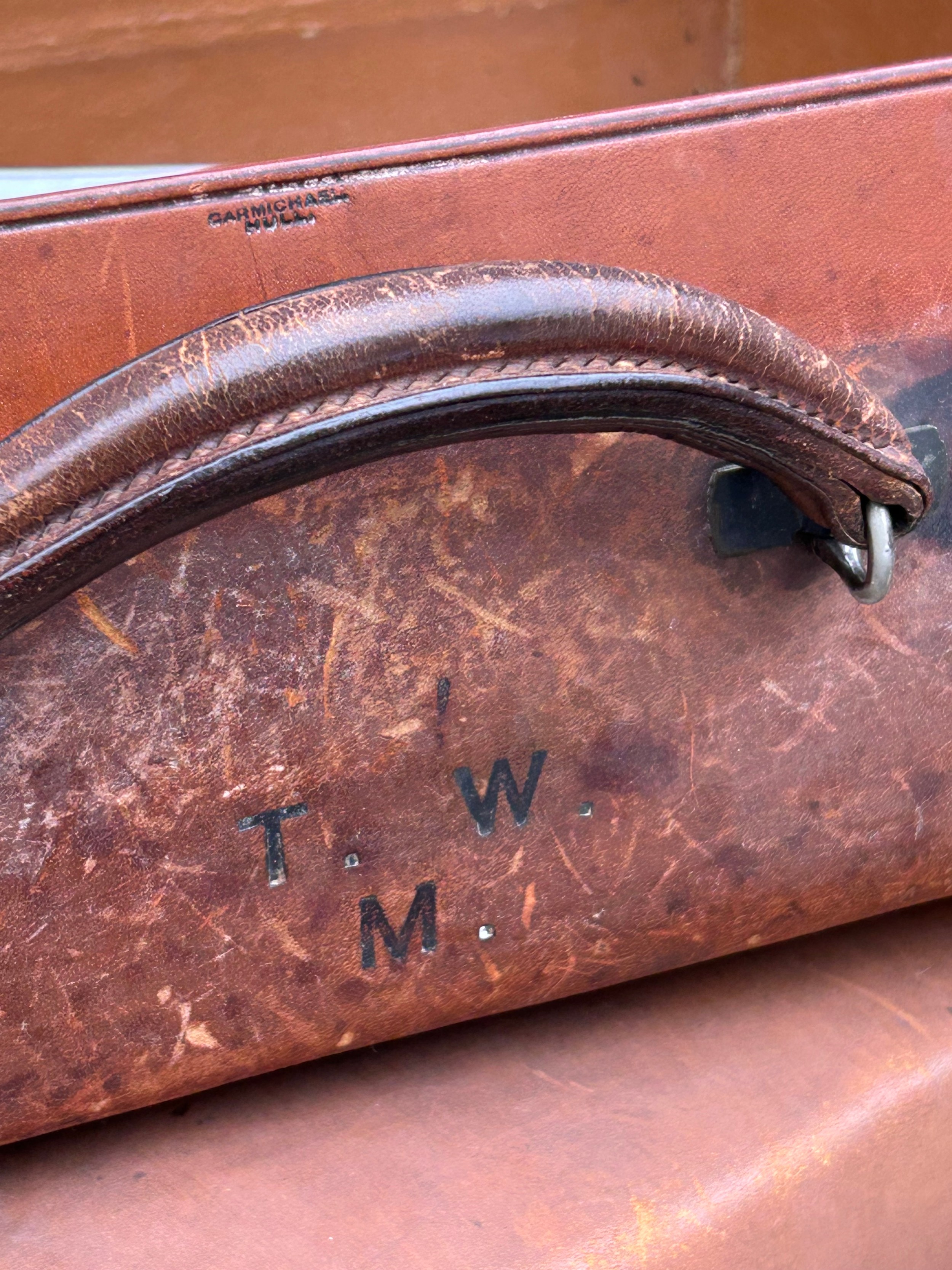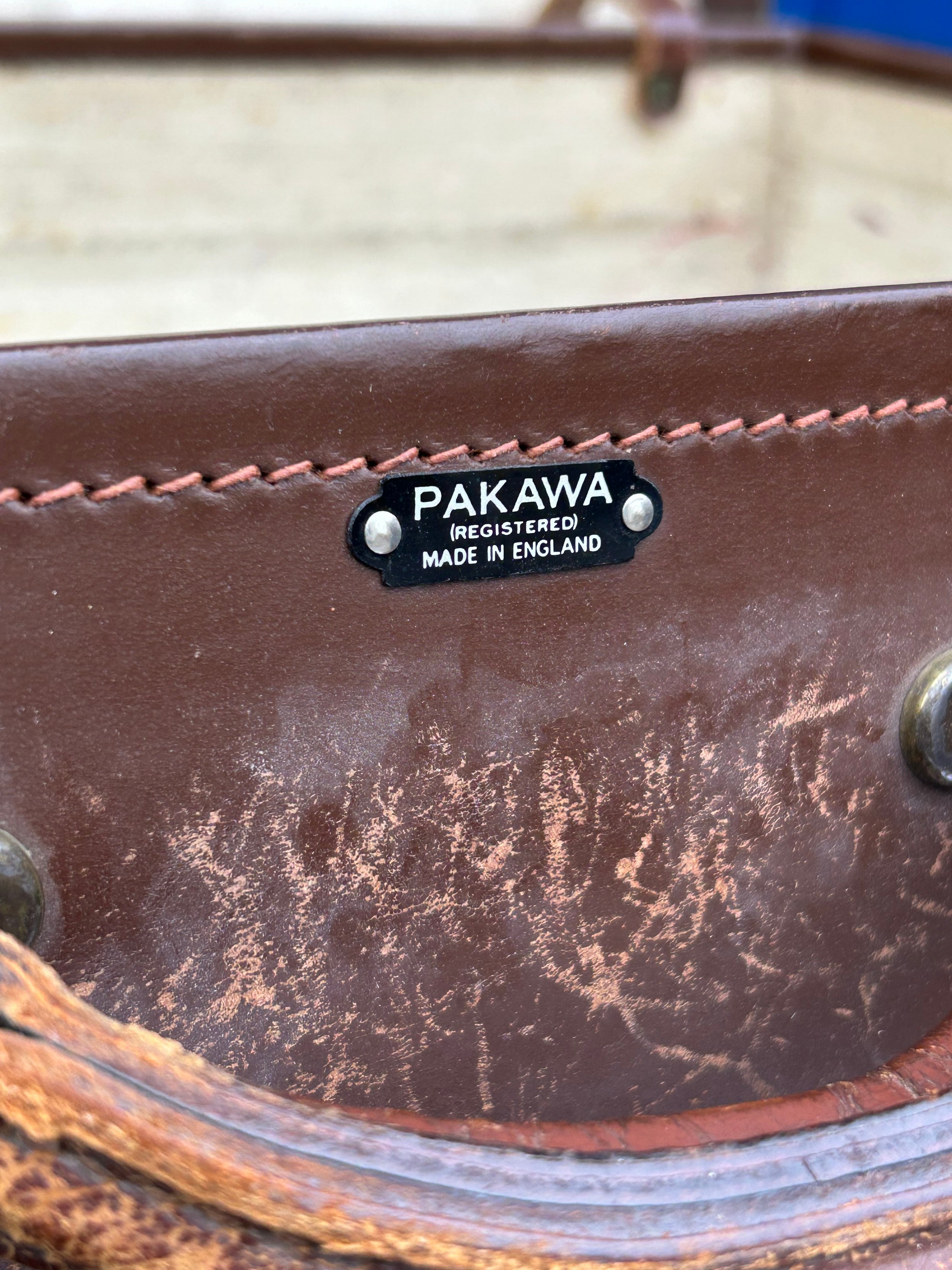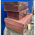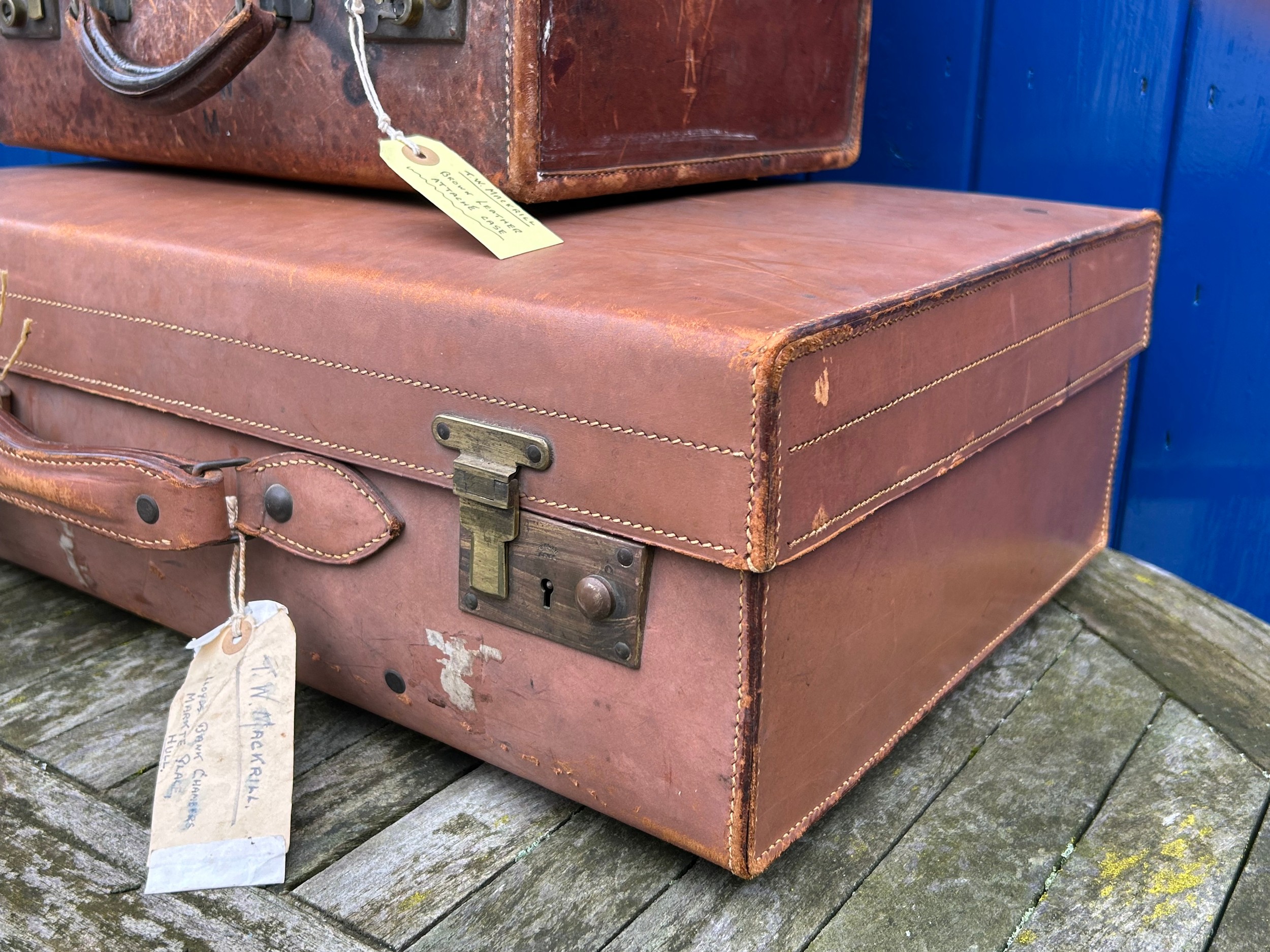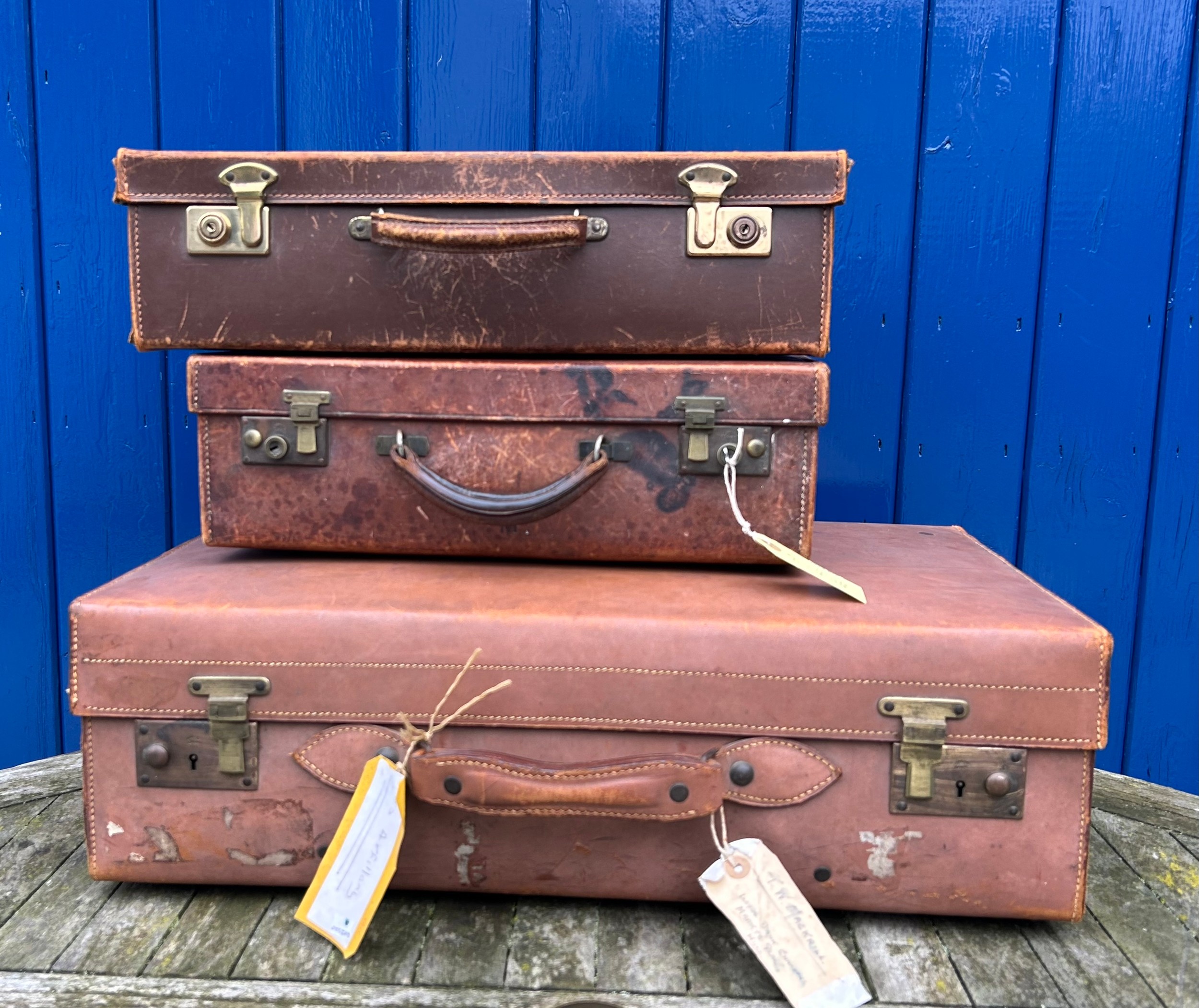 Three vintage leather suitcases. Largest 61 x 37 x 18 cm. Smallest by Pakawa 45 x 26 x 13cm.