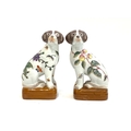 A pair of Chinese porcelain seated dog figures decorated with flora and fauna, red You Xian Ju marks to base, 19.5cmH