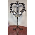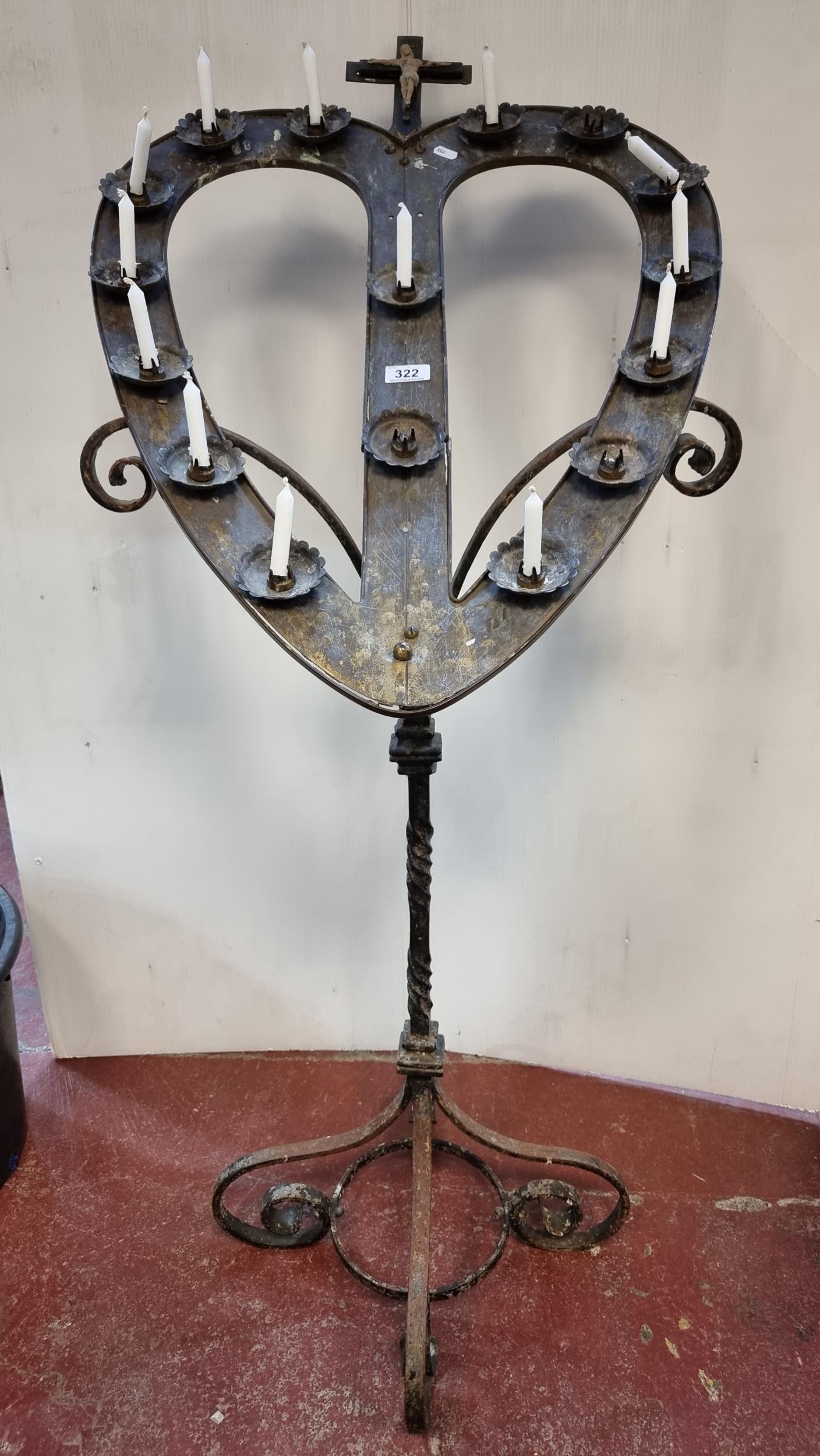 Star Lot : A Victorian, freestanding Roman Catholic Votive candle holder. With a heart-shaped brass frame, a crucifix and holders for 16 candles. On a heavy cast metal stand with scroll feet.