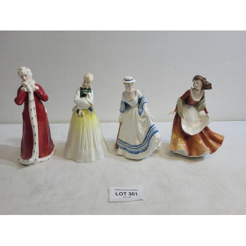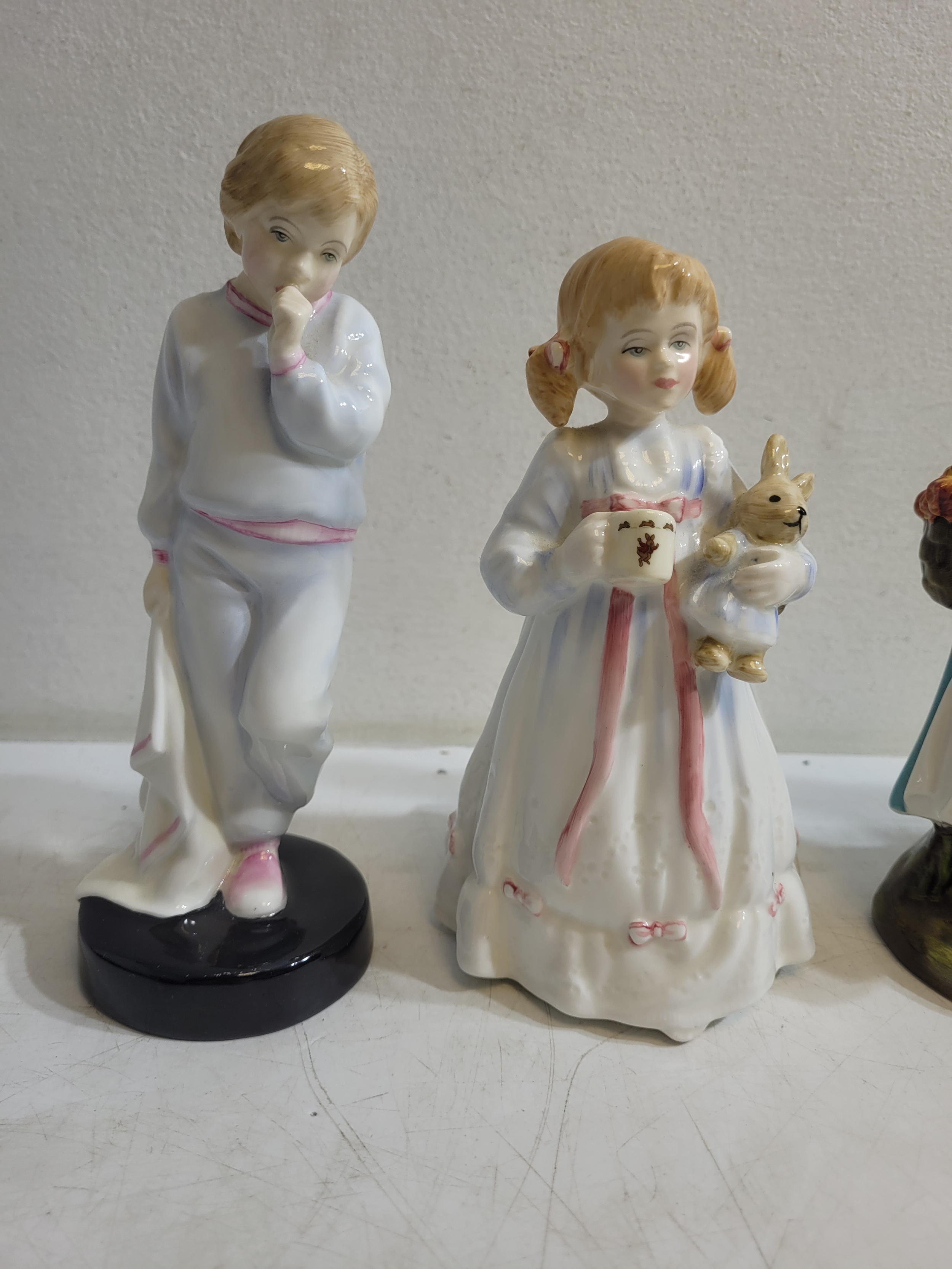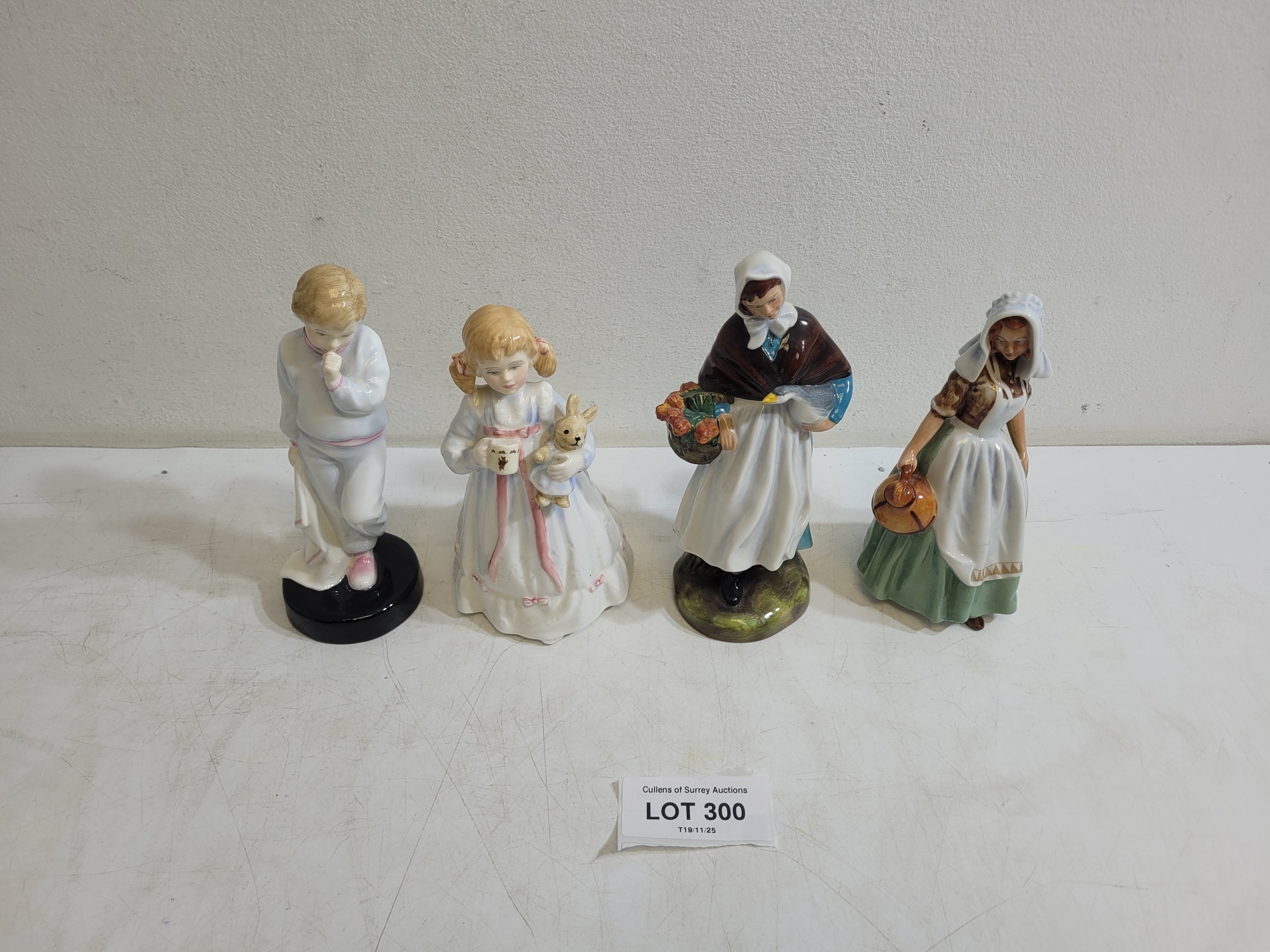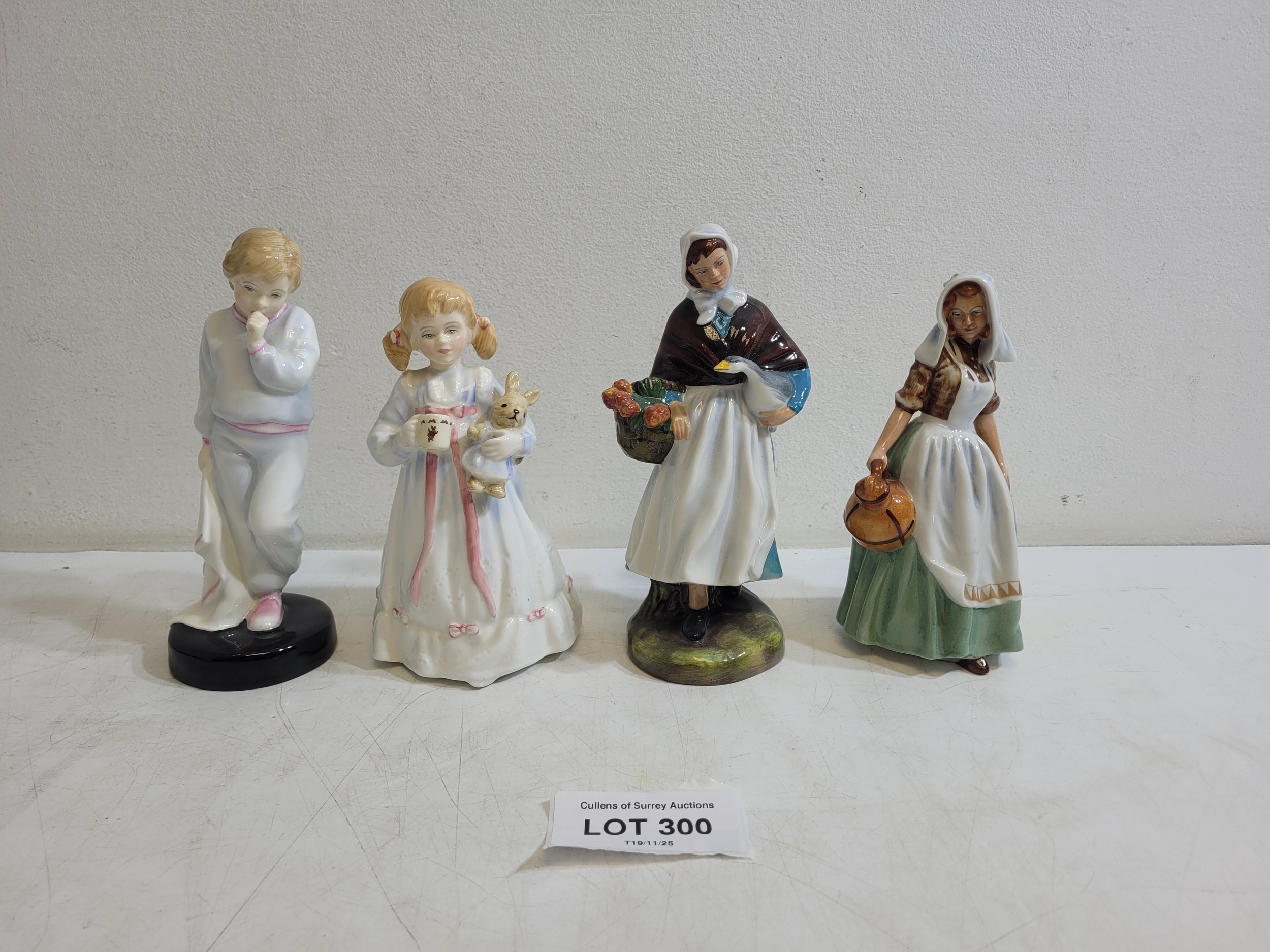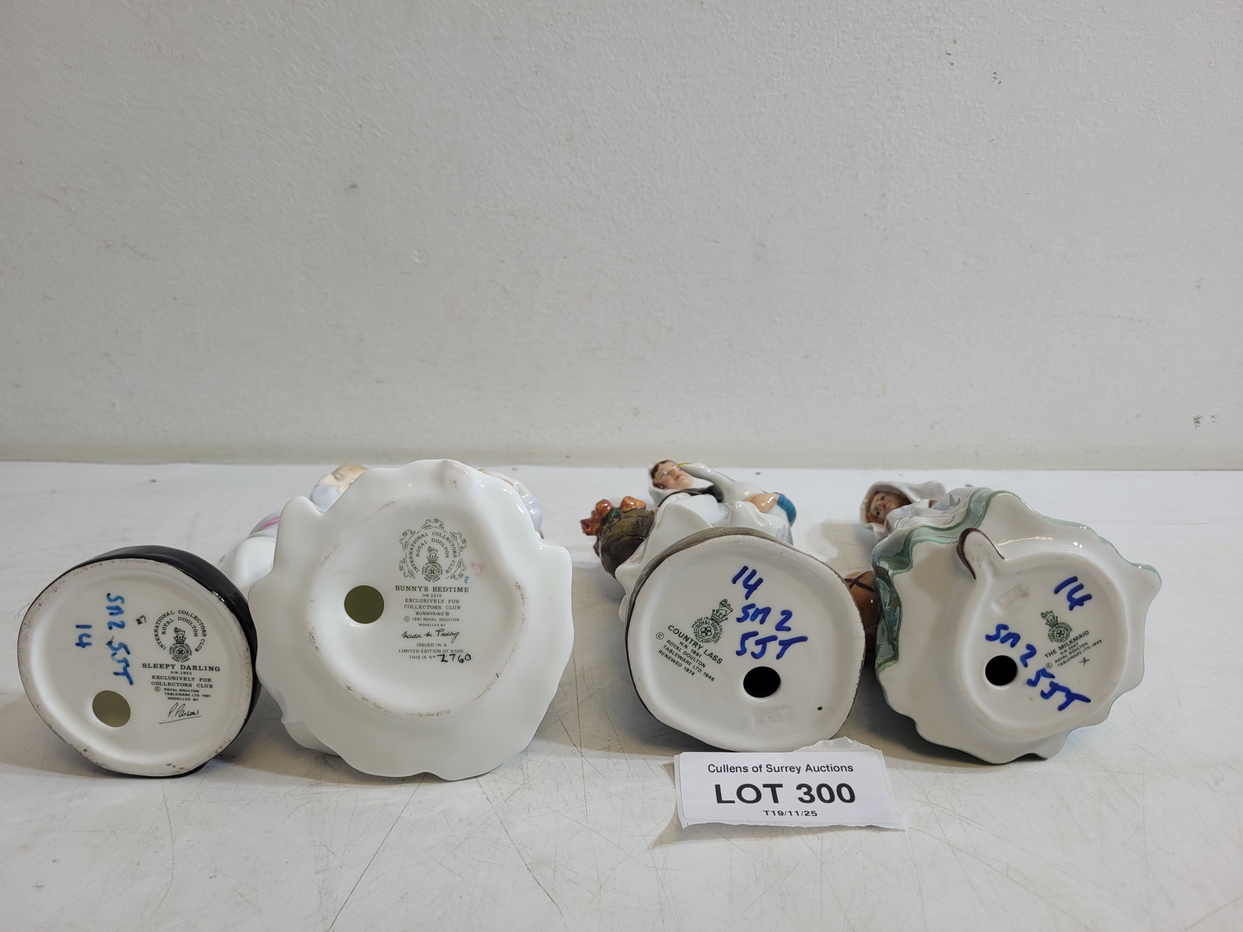 Royal Doulton Figures Sleeping Darling HN2953, Bunny's Bedtime HN3370, Country Lass HN1991, The Milkmaid HN2057.