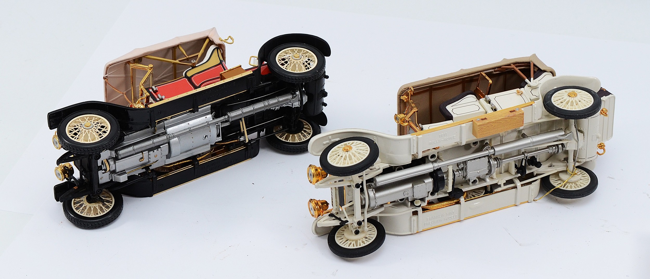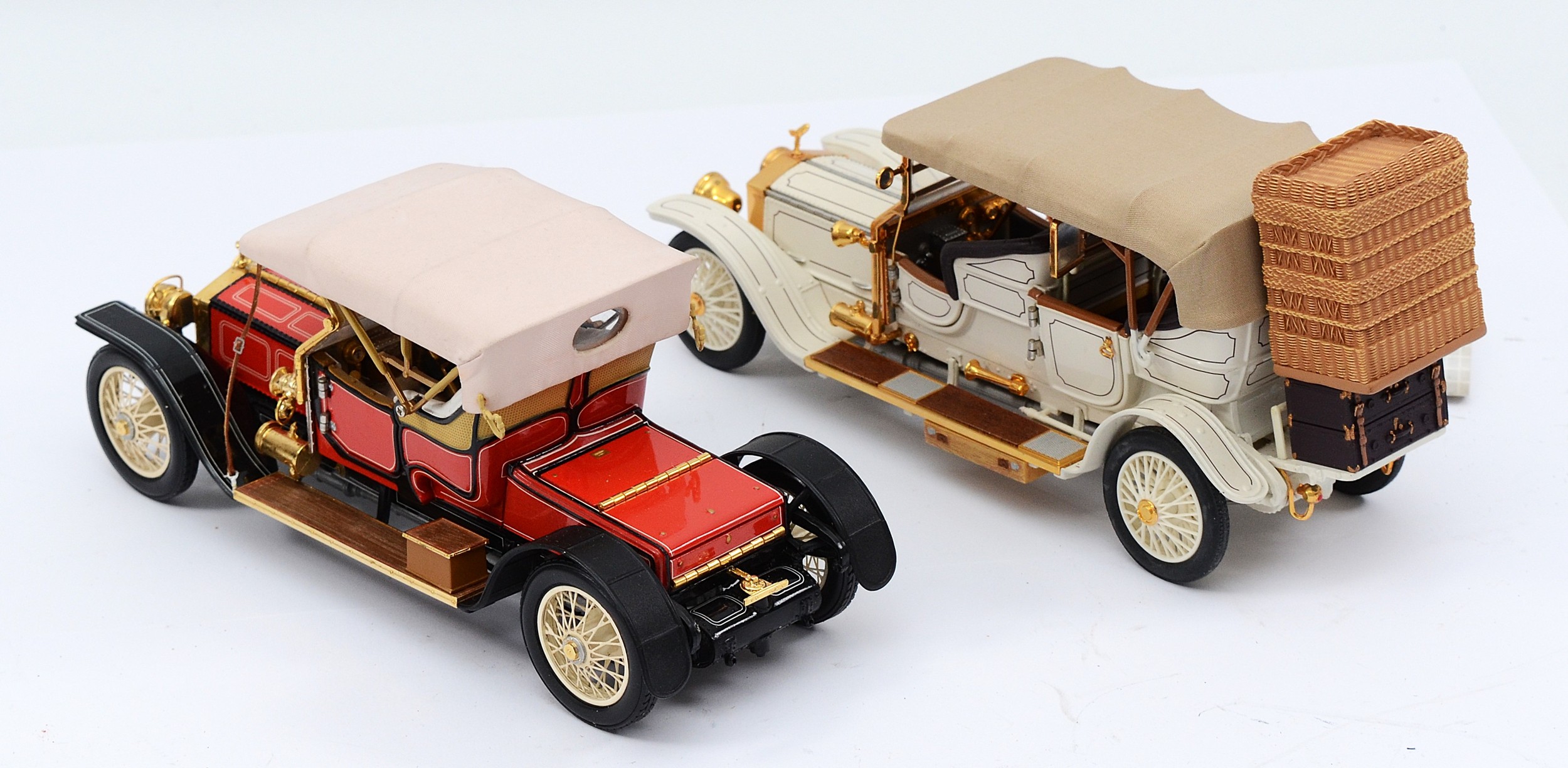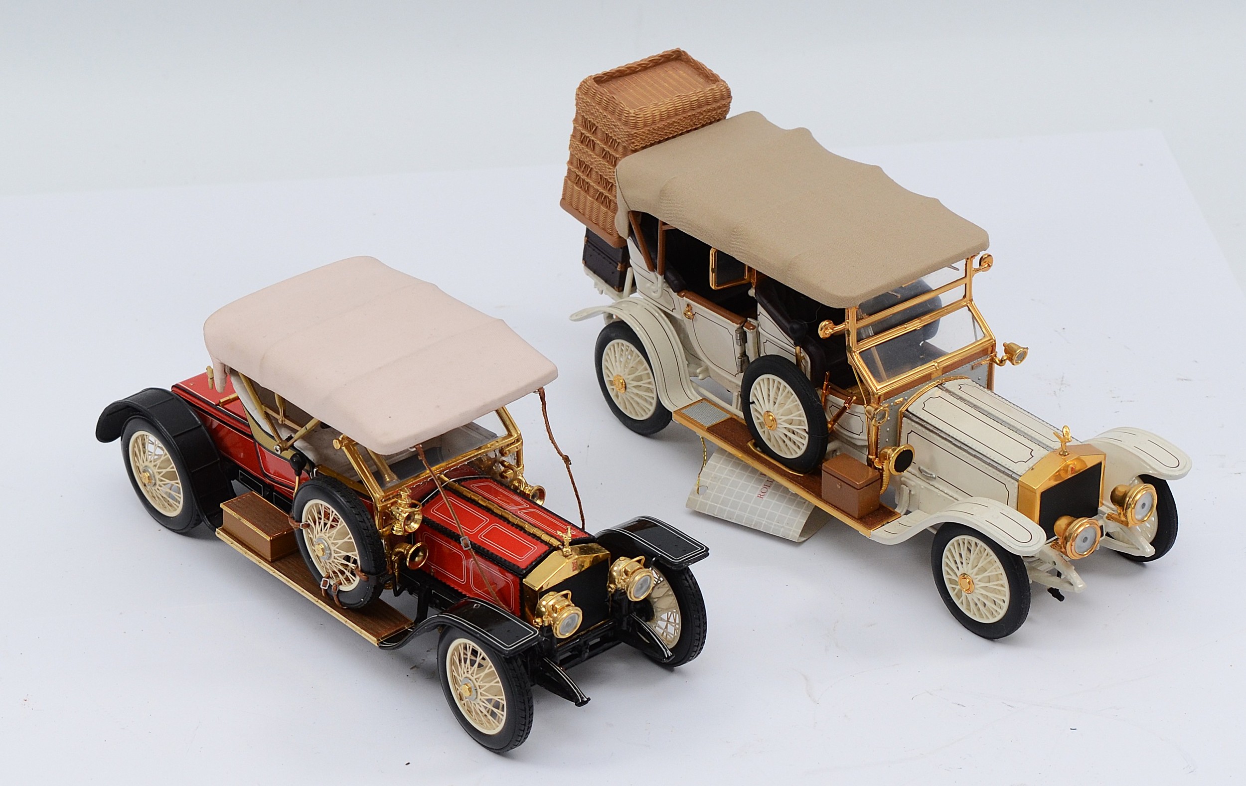 Franklin Mint model 1910 Rolls Royce Silver Ghost, in red, with picnic basket, together with a 1911 Rolls Royce Silver Ghost, in white, 1:24 scale (2).