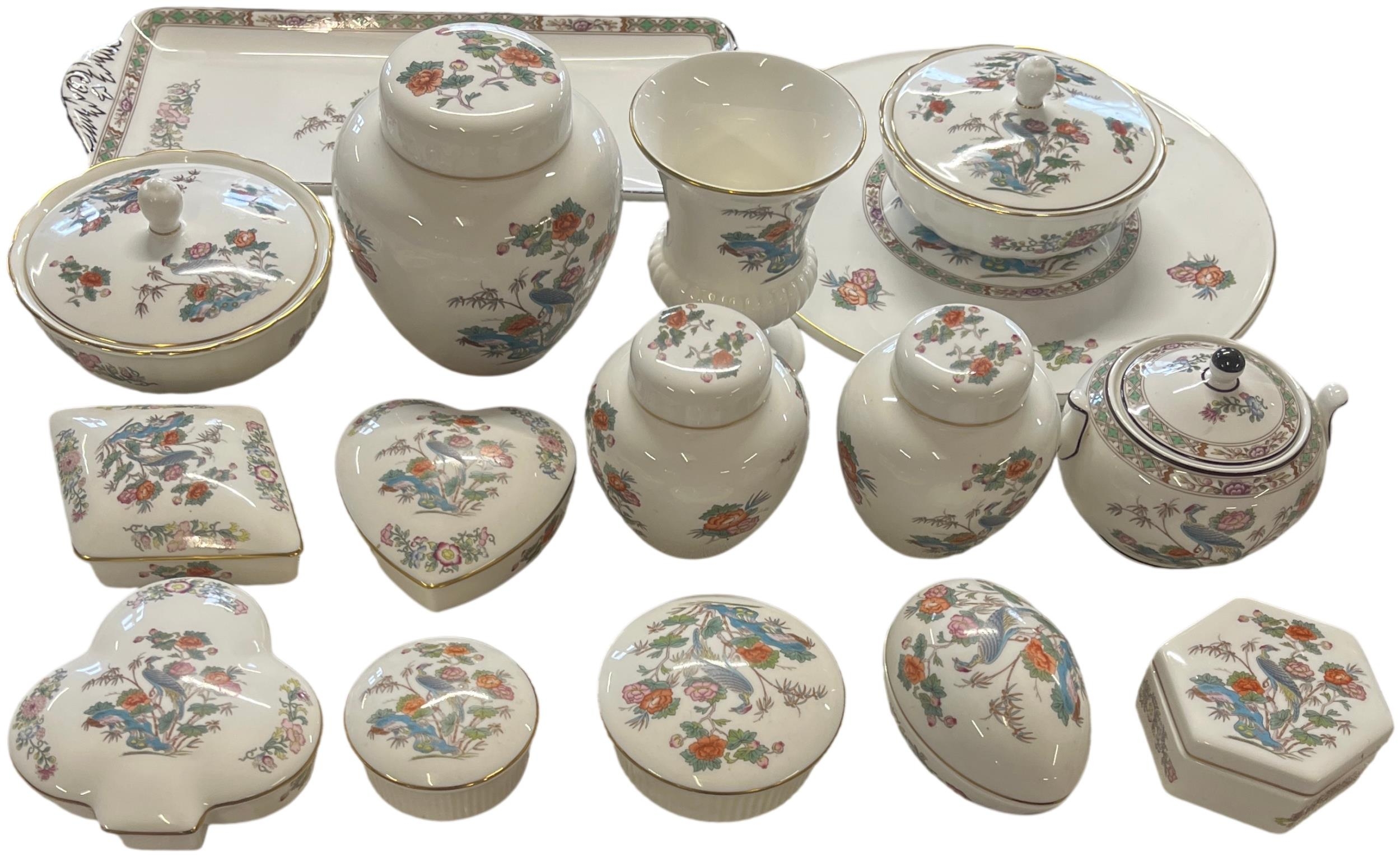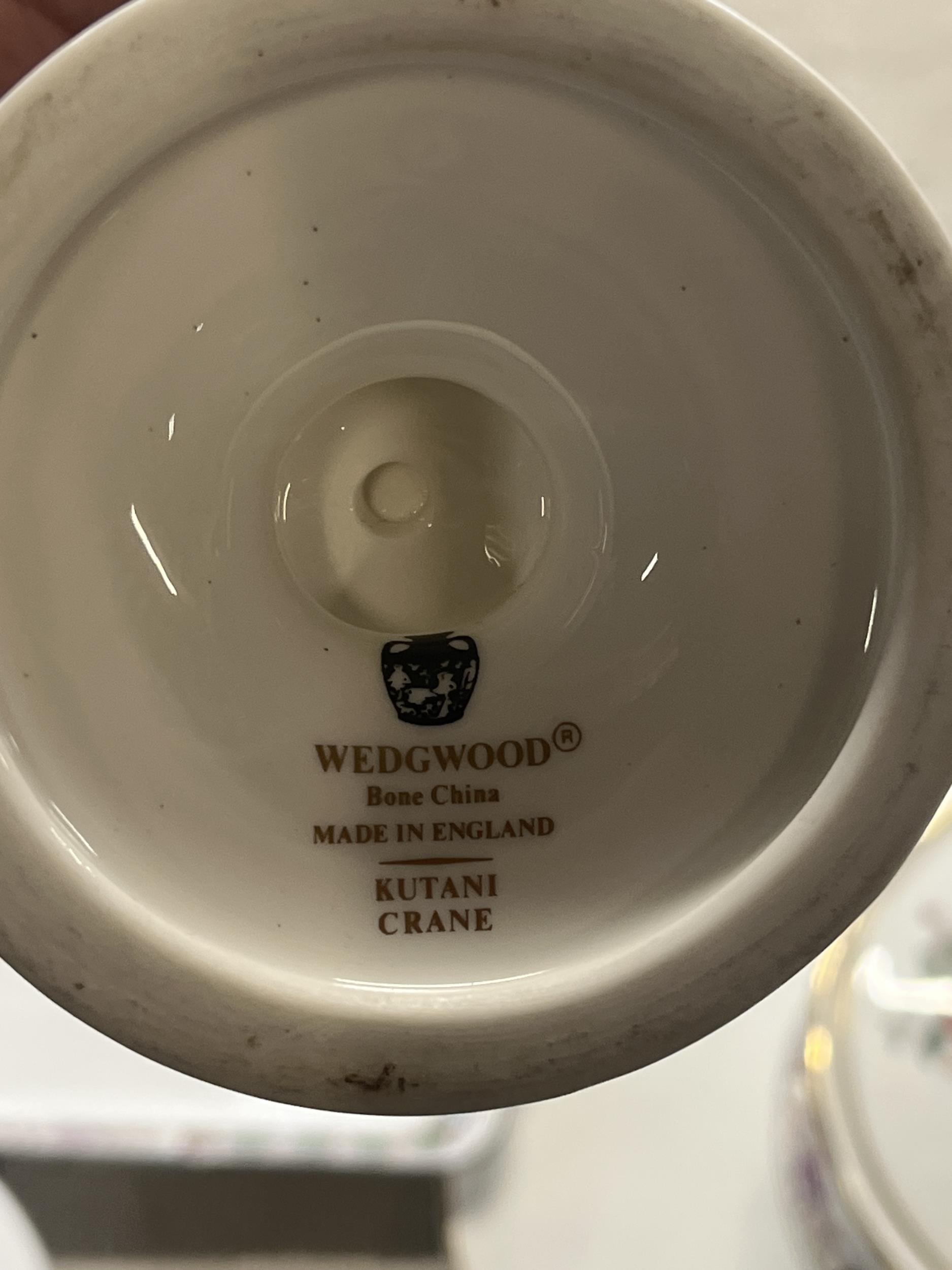 A Collection of Wedgwood Bone China in the Kutani Crane Pattern. Approx 16 pieces. No shipping.